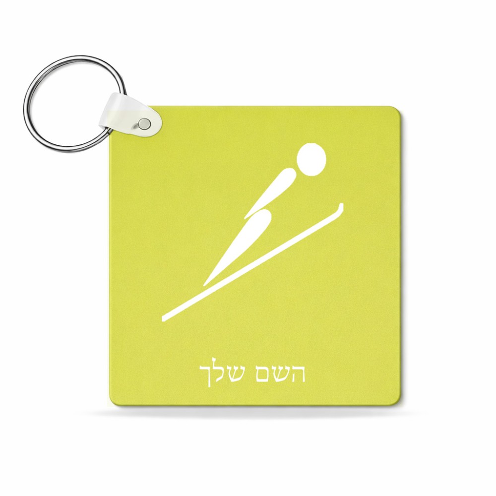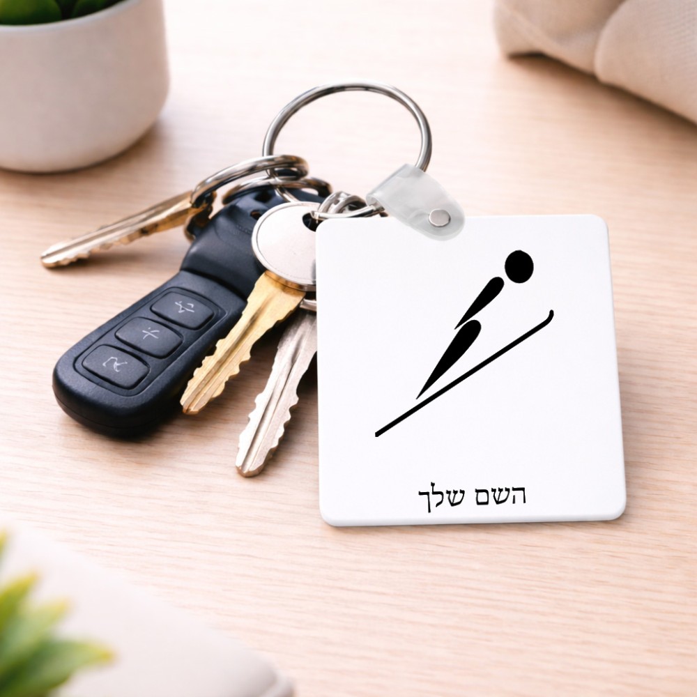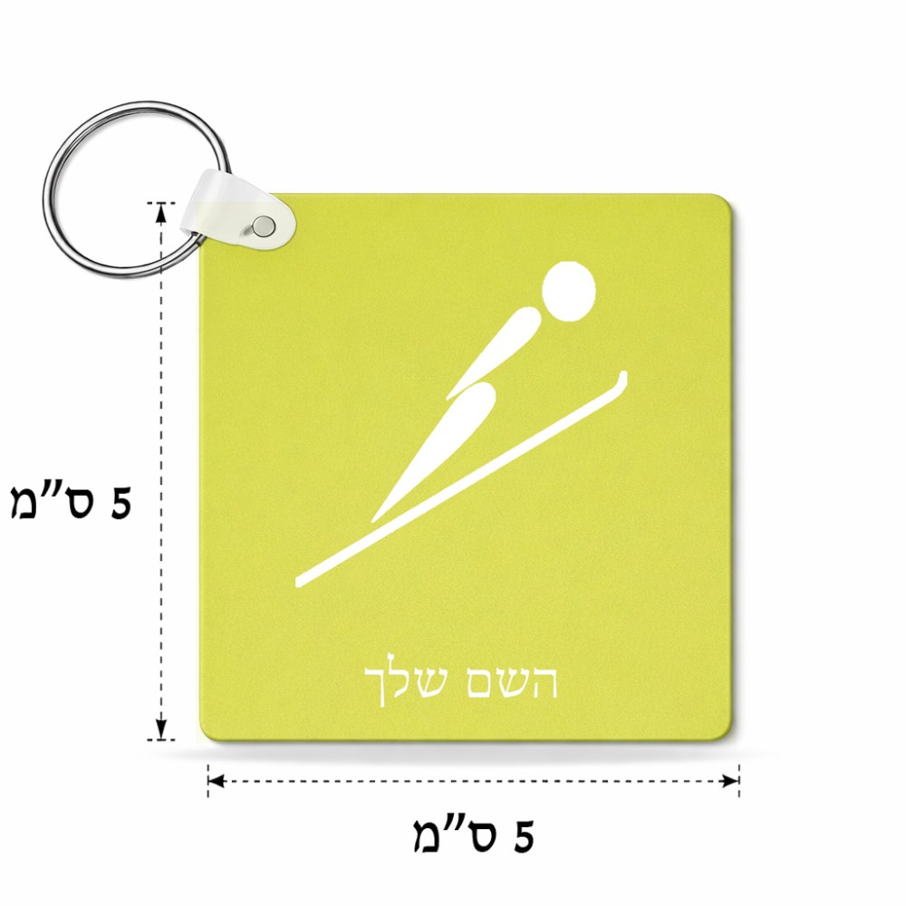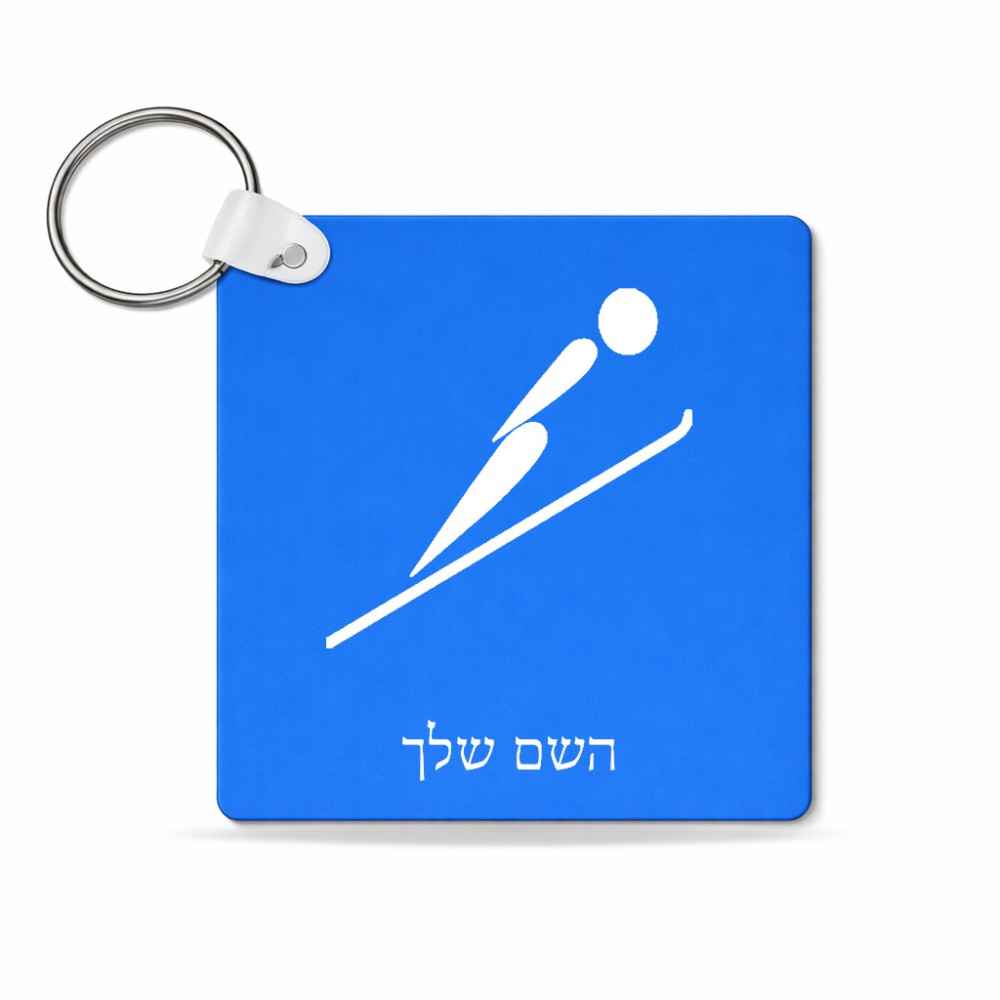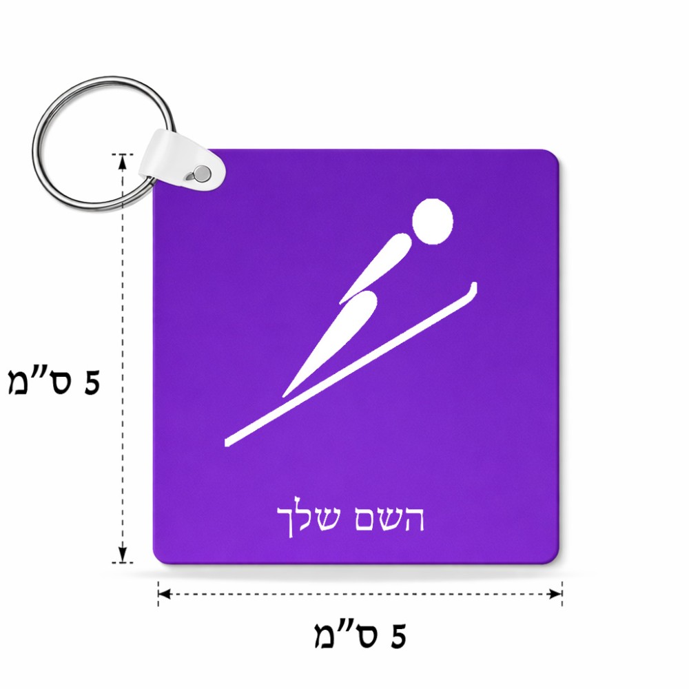 מחזיק מפתחות בצורת ריבוע בעיצוב אישי עם השם שלך בעיצוב קפיצת סקי אולימפית גודל המחזיק 5 × 5 ס"מ. את השם המבוקש ניתן לציין בהזמנה, אם לא צויין אנחנו ניצור קשר לבירור.