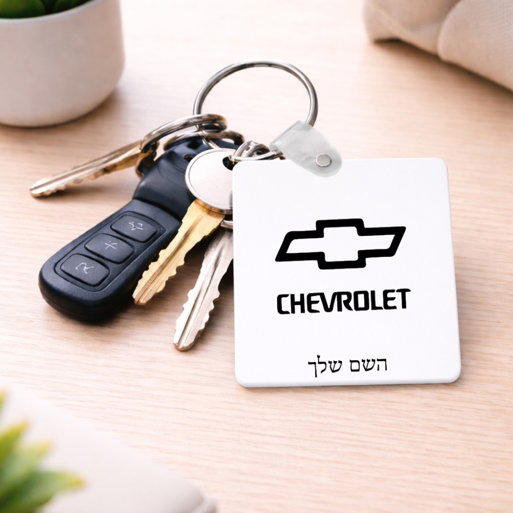 מחזיק מפתחות בצורת ריבוע בעיצוב אישי עם השם שלך בעיצוב שברולט גודל המחזיק 5 × 5 ס"מ. את השם המבוקש ניתן לציין בהזמנה, אם לא צויין אנחנו ניצור קשר לבירור.
