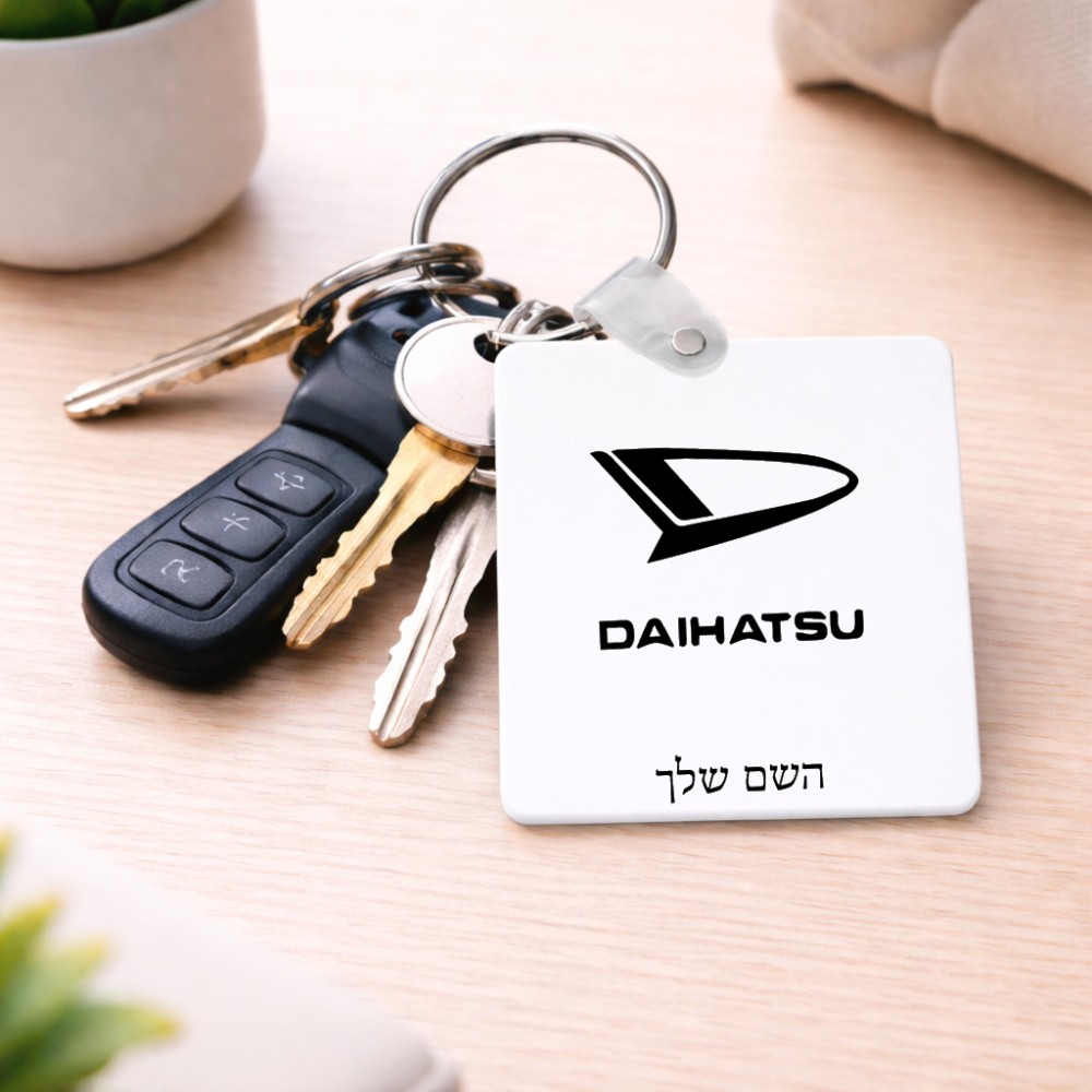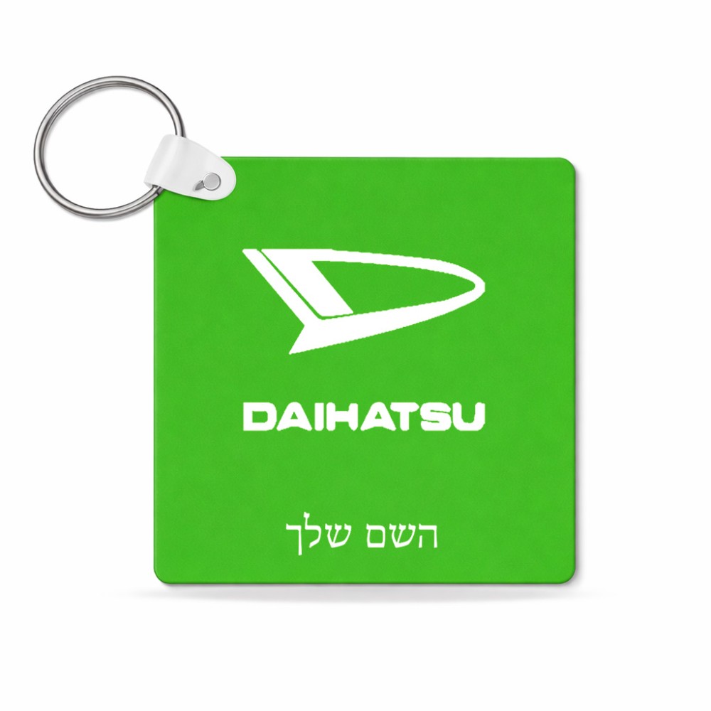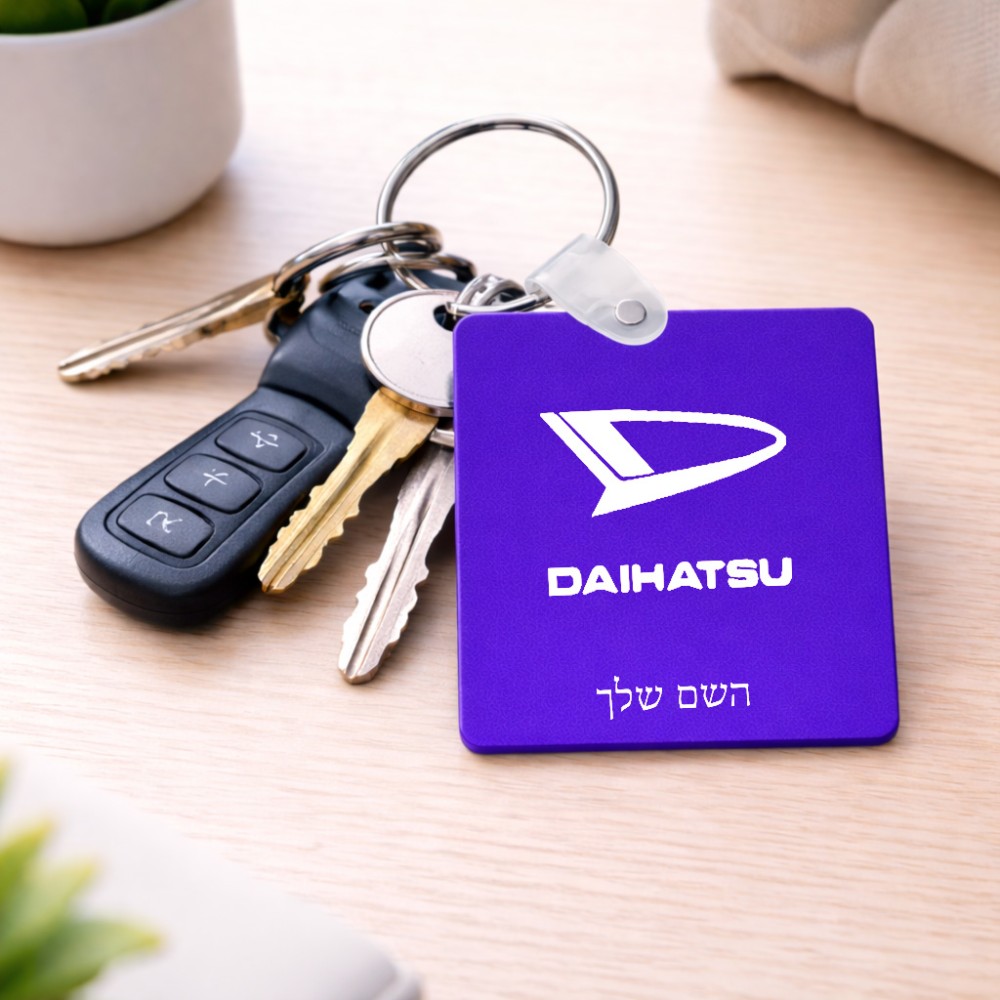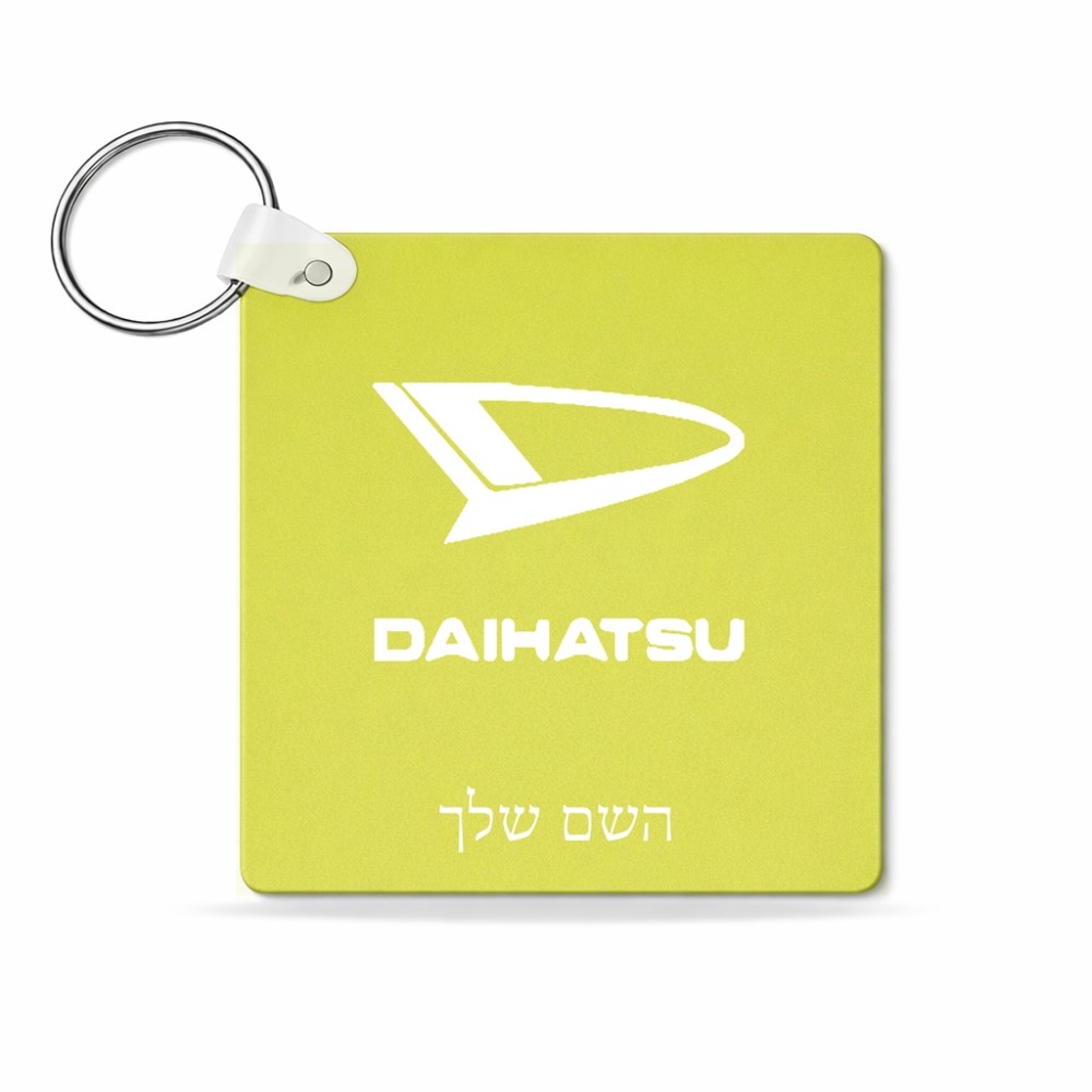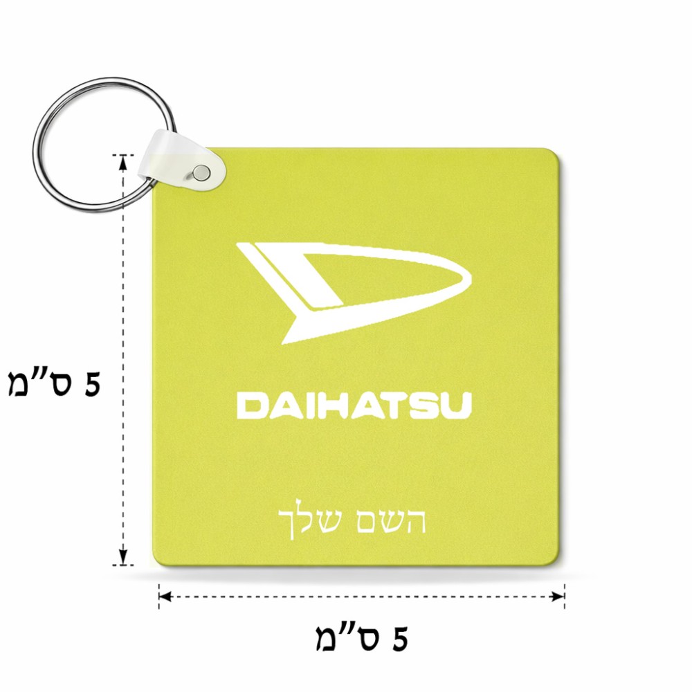מחזיק מפתחות בצורת ריבוע בעיצוב אישי עם השם שלך בעיצוב דייהטסו גודל המחזיק 5 × 5 ס"מ