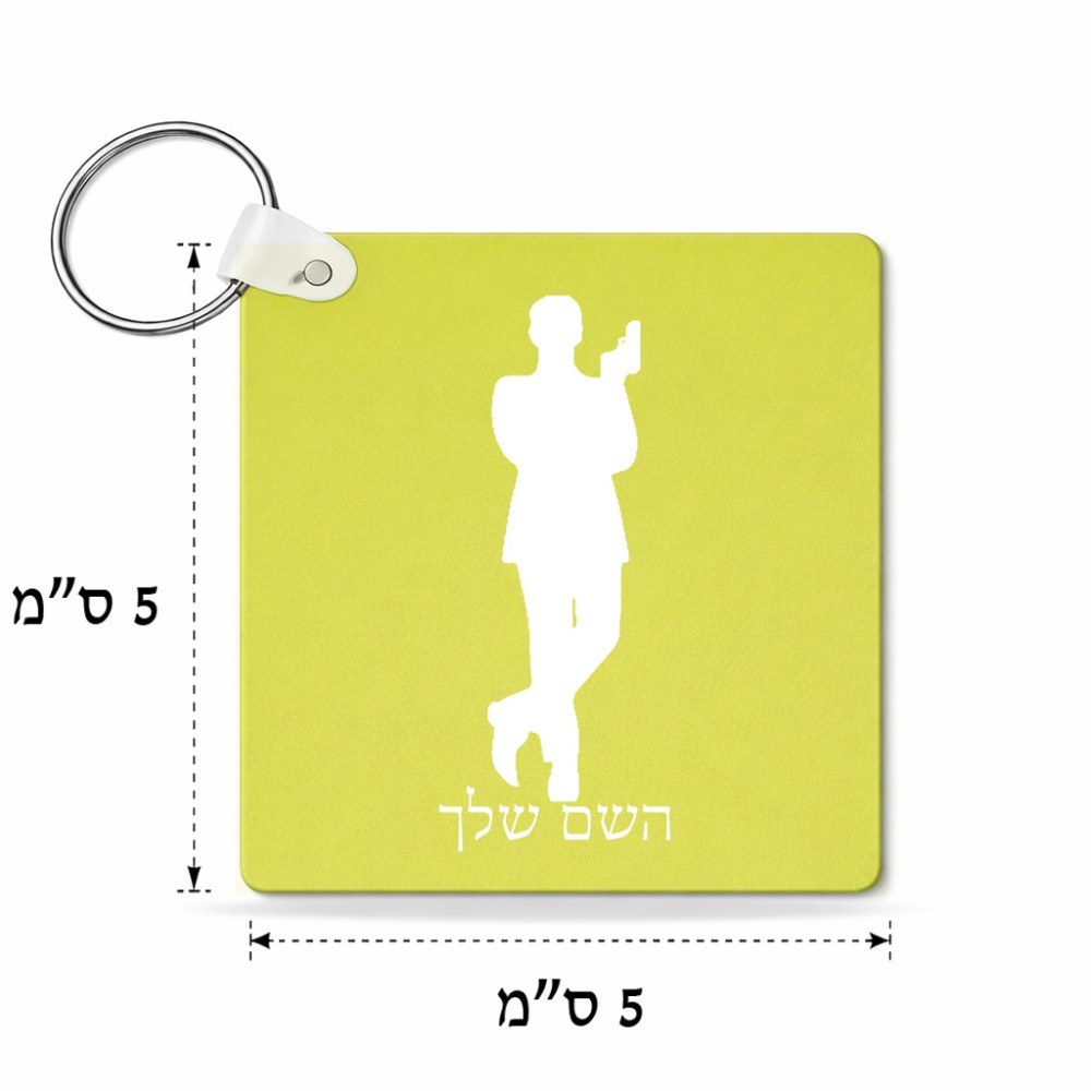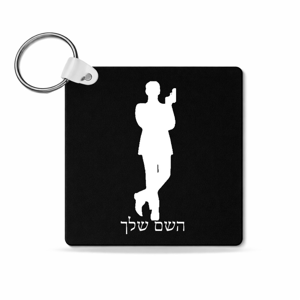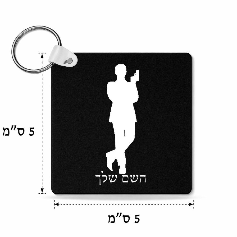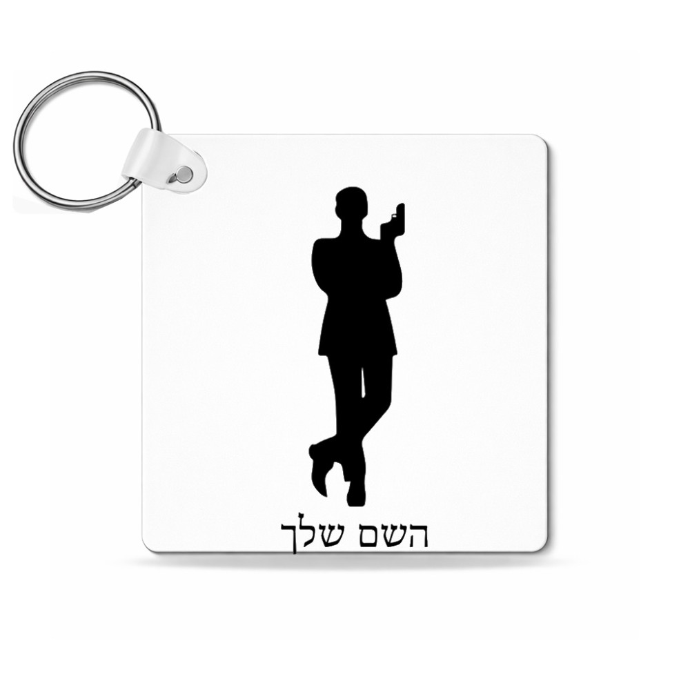מחזיק מפתחות בצורת ריבוע בעיצוב אישי עם השם שלך בעיצוב ג'יימס בונד גודל המחזיק 5 × 5 ס"מ. את השם המבוקש ניתן לציין בהזמנה, אם לא צויין אנחנו ניצור קשר לבירור.