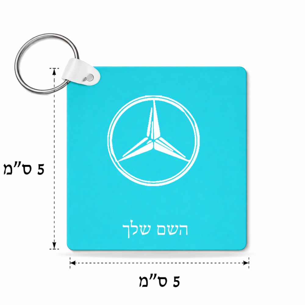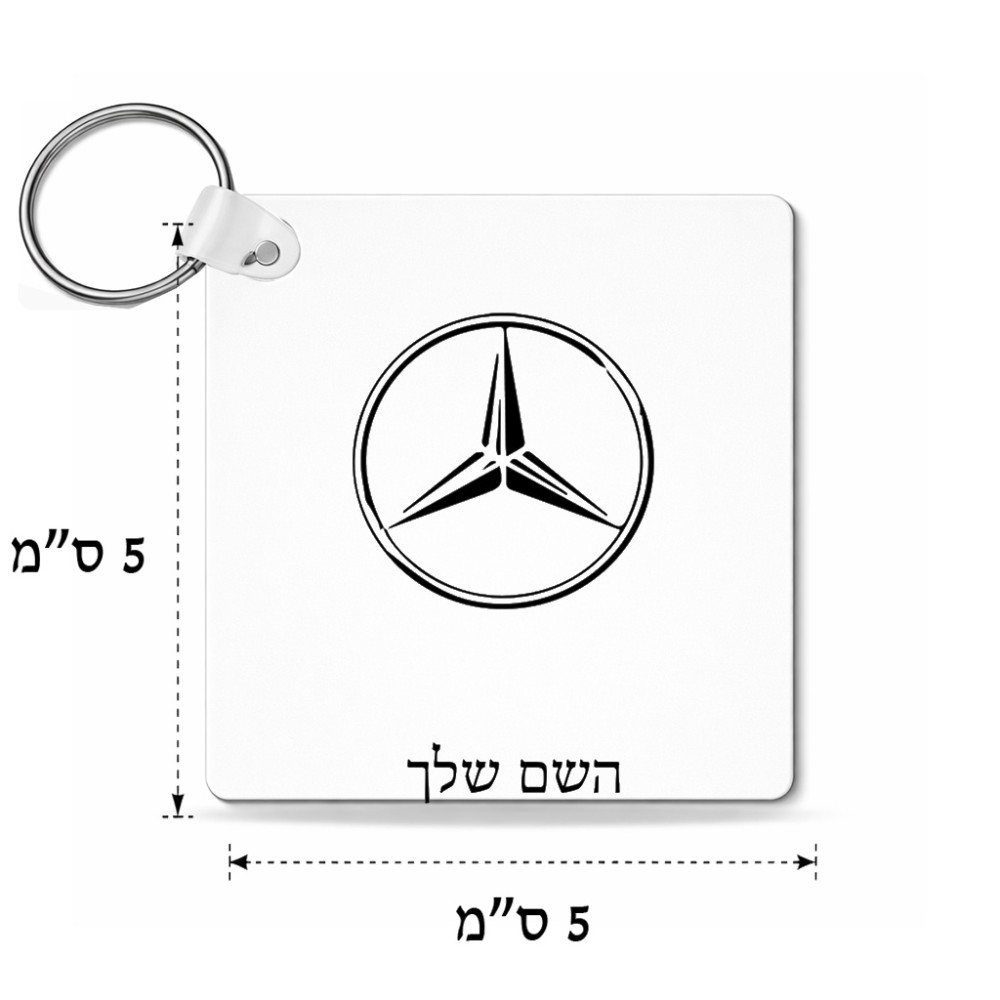 מחזיק מפתחות בצורת ריבוע בעיצוב אישי עם השם שלך בעיצוב מרצדס-בנץ גודל המחזיק 5 × 5 ס"מ. את השם המבוקש ניתן לציין בהזמנה, אם לא צויין אנחנו ניצור קשר לבירור.