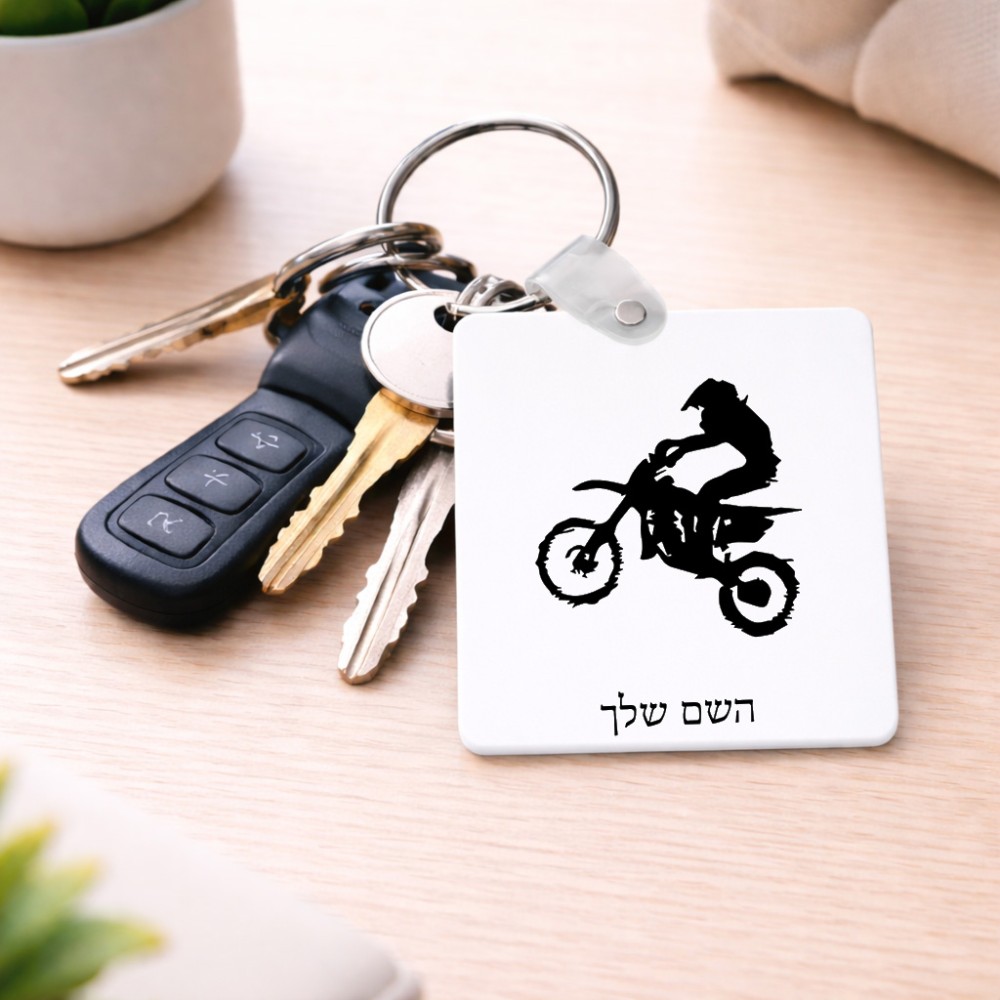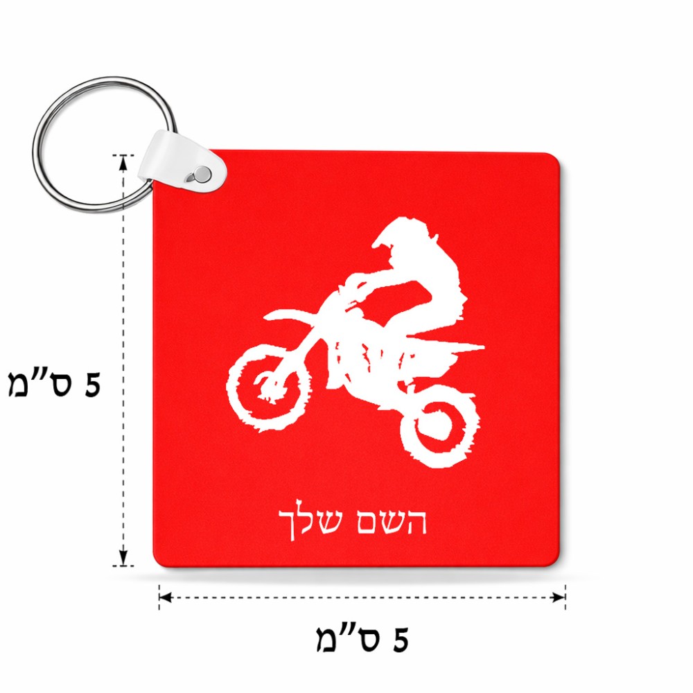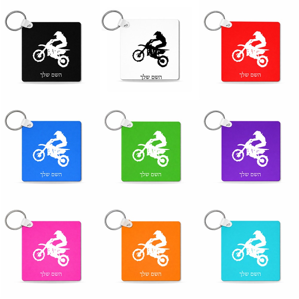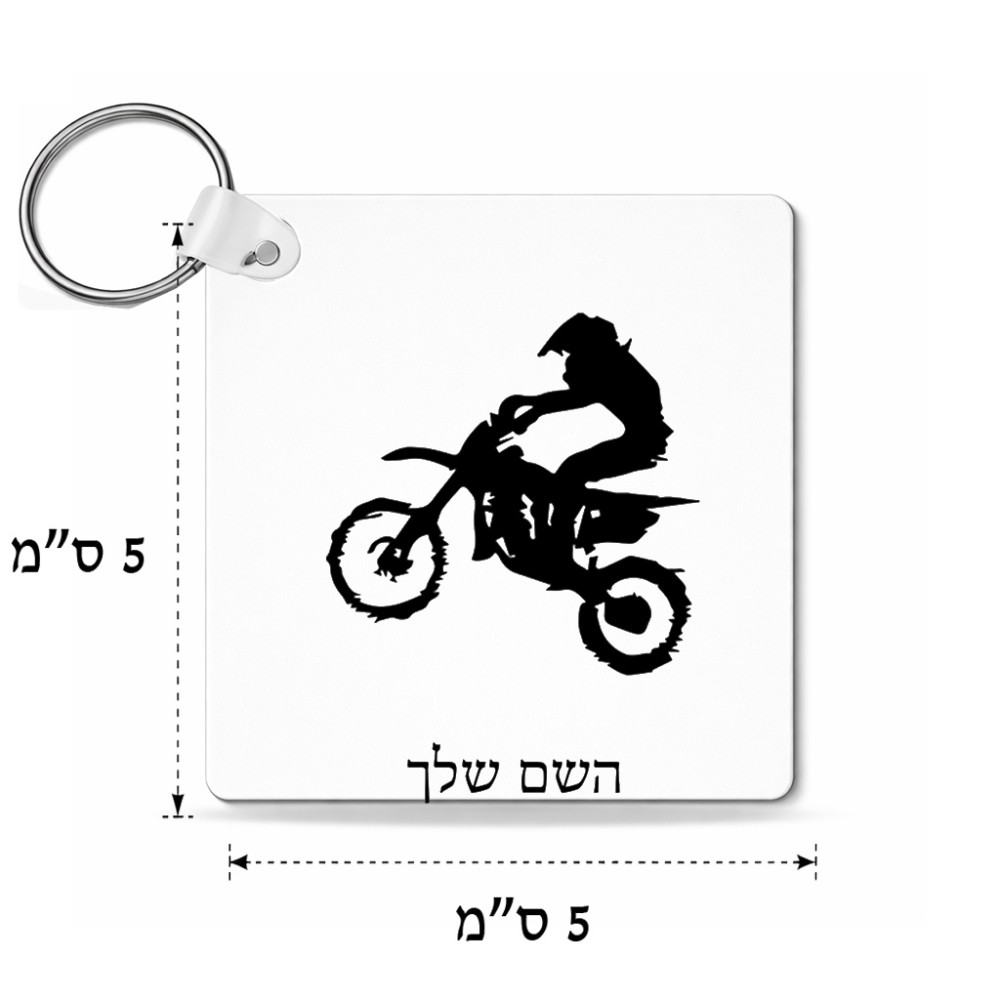 מחזיק מפתחות בצורת ריבוע בעיצוב אישי עם השם שלך בעיצוב מוטוקרוס גודל המחזיק 5 × 5 ס"מ. את השם המבוקש ניתן לציין בהזמנה, אם לא צויין אנחנו ניצור קשר לבירור.