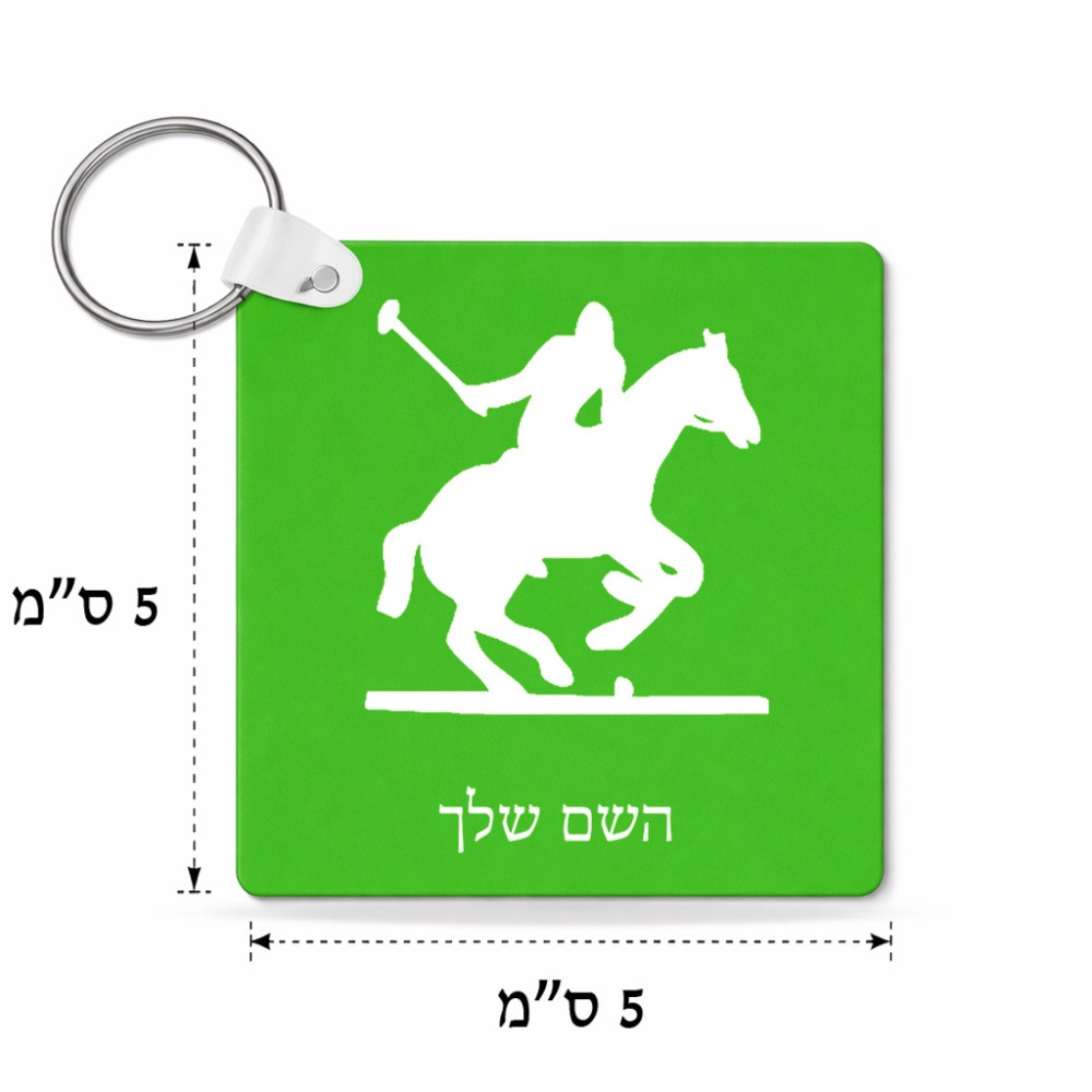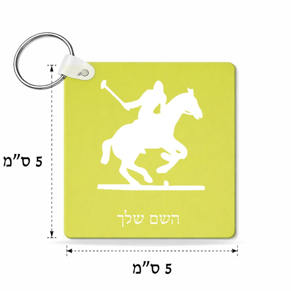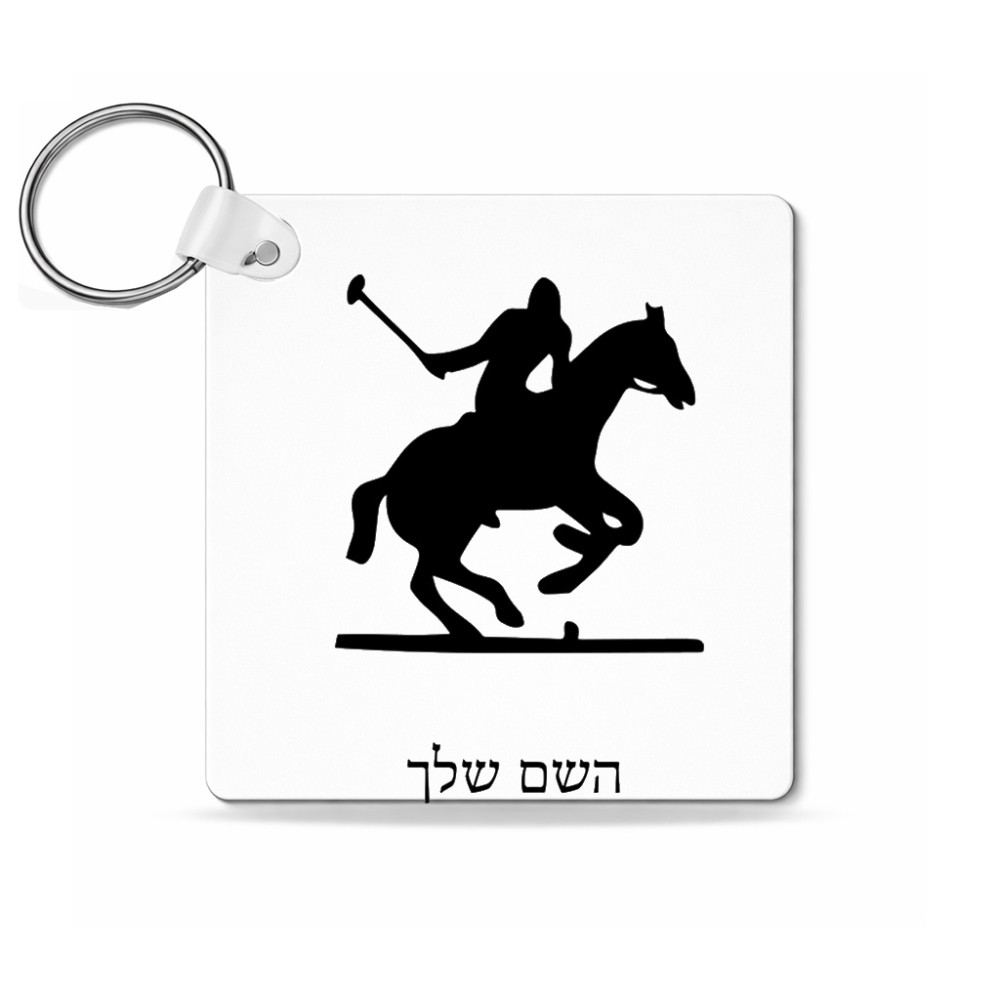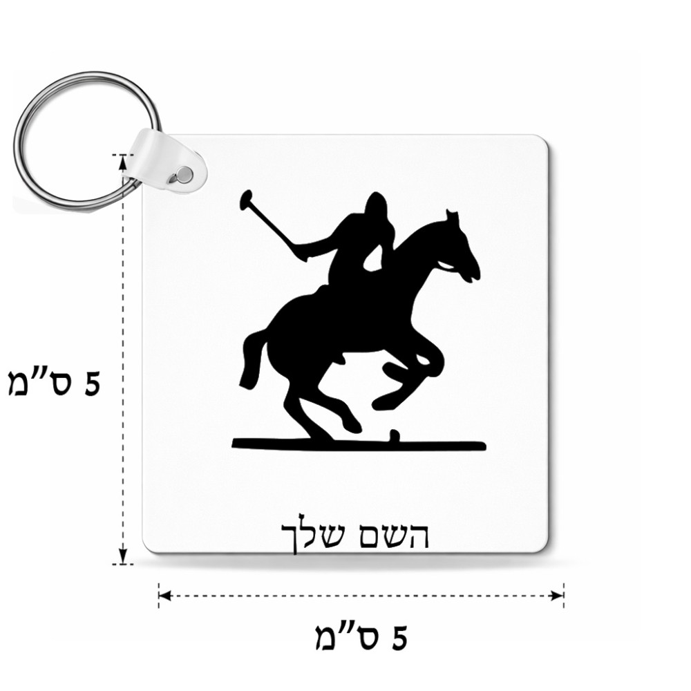 מחזיק מפתחות בצורת ריבוע בעיצוב אישי עם השם שלך בעיצוב שחקן פולו - סוס גודל המחזיק 5 × 5 ס"מ. את השם המבוקש ניתן לציין בהזמנה, אם לא צויין אנחנו ניצור קשר לבירור.