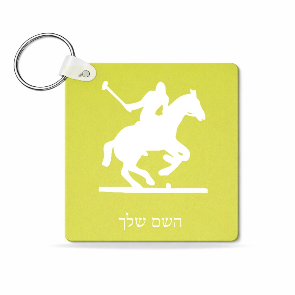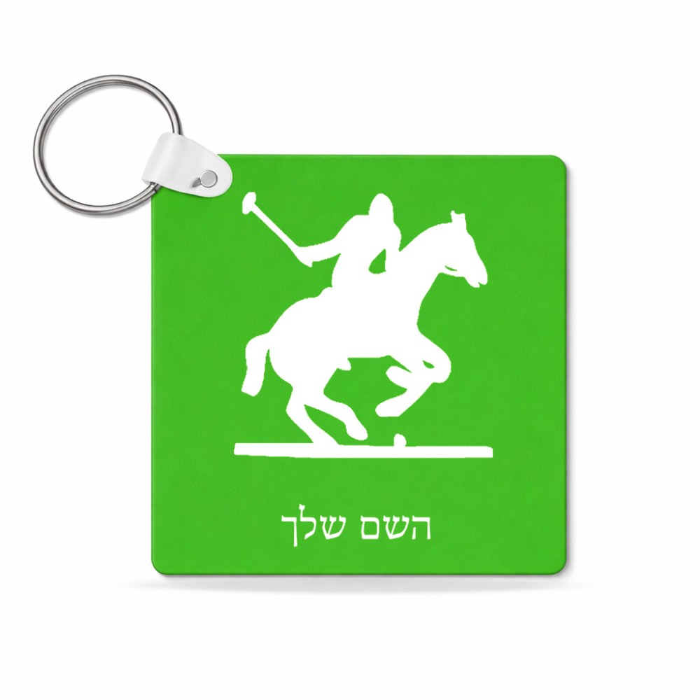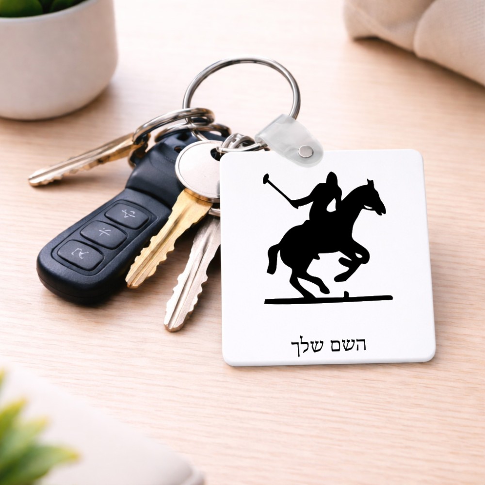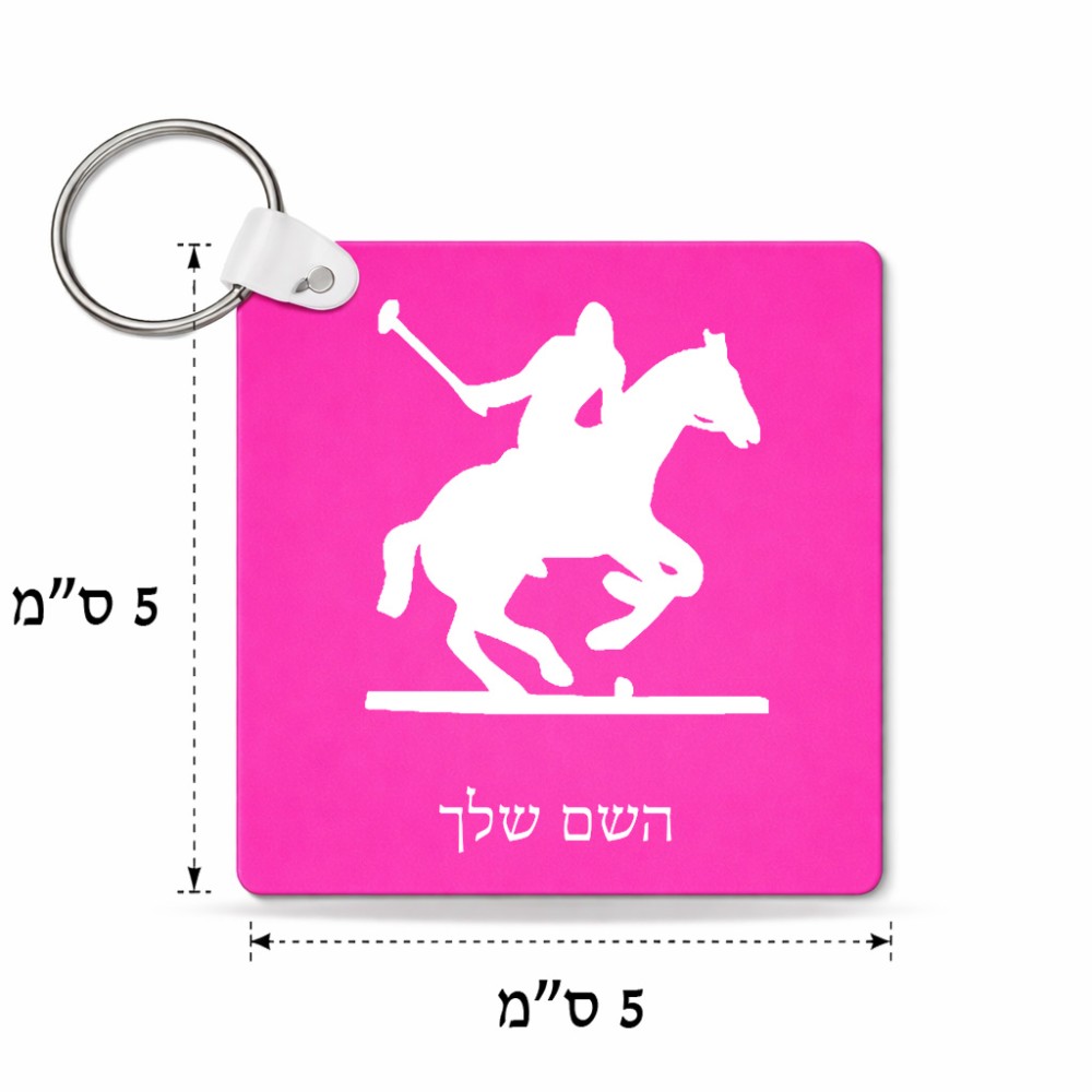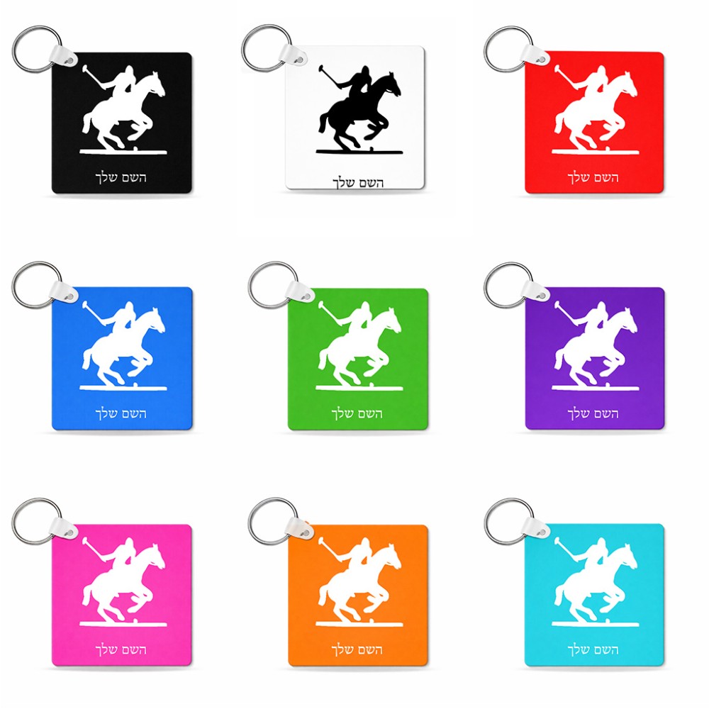 מחזיק מפתחות בצורת ריבוע בעיצוב אישי עם השם שלך בעיצוב שחקן פולו - סוס גודל המחזיק 5 × 5 ס"מ. את השם המבוקש ניתן לציין בהזמנה, אם לא צויין אנחנו ניצור קשר לבירור.