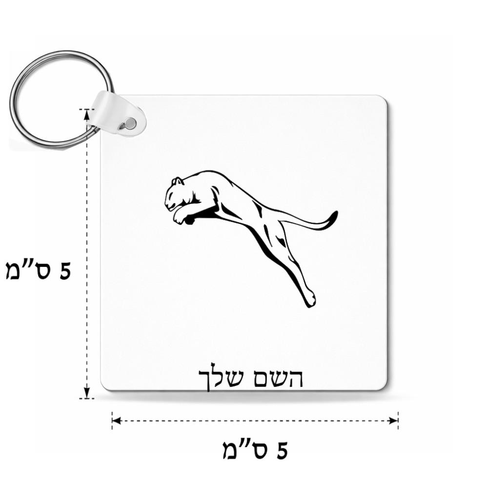 מחזיק מפתחות בצורת ריבוע בעיצוב אישי עם השם שלך בעיצוב פומה גודל המחזיק 5 × 5 ס"מ. את השם המבוקש ניתן לציין בהזמנה, אם לא צויין אנחנו ניצור קשר לבירור.