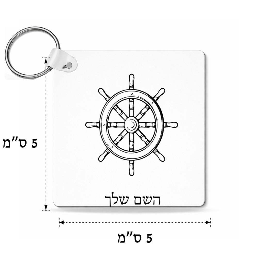 מחזיק מפתחות בצורת ריבוע בעיצוב אישי עם השם שלך בעיצוב הגה - קפטן - ים גודל המחזיק 5 × 5 ס"מ. את השם המבוקש ניתן לציין בהזמנה, אם לא צויין אנחנו ניצור קשר לבירור.