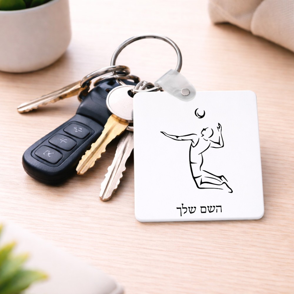 מחזיק מפתחות בצורת ריבוע בעיצוב אישי עם השם שלך בעיצוב שחקן כדורעף גודל המחזיק 5 × 5 ס"מ. את השם המבוקש ניתן לציין בהזמנה, אם לא צויין אנחנו ניצור קשר לבירור.