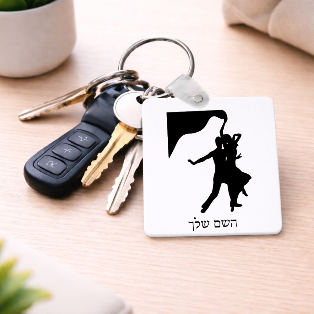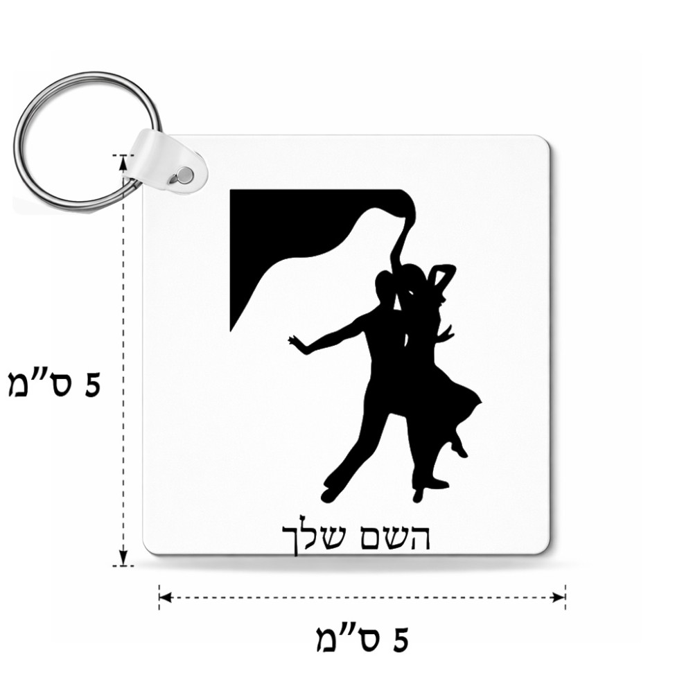 מחזיק מפתחות בצורת ריבוע בעיצוב אישי עם השם שלך בעיצוב אישה רוקדת עם גבר גודל המחזיק 5 × 5 ס"מ. את השם המבוקש ניתן לציין בהזמנה, אם לא צויין אנחנו ניצור קשר לבירור.