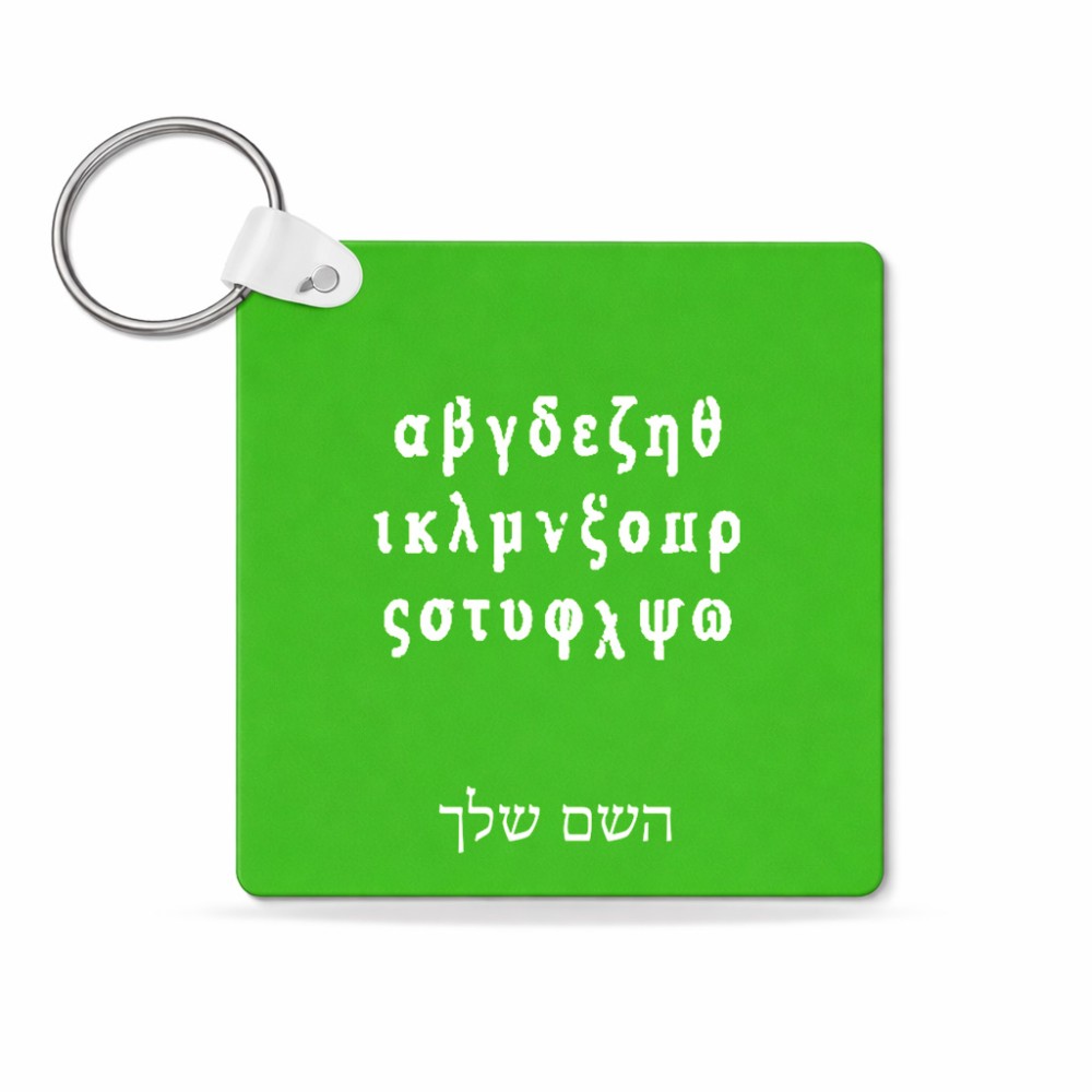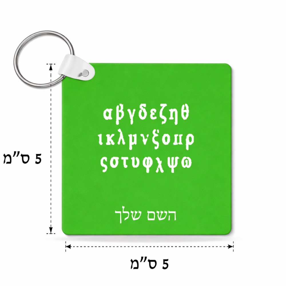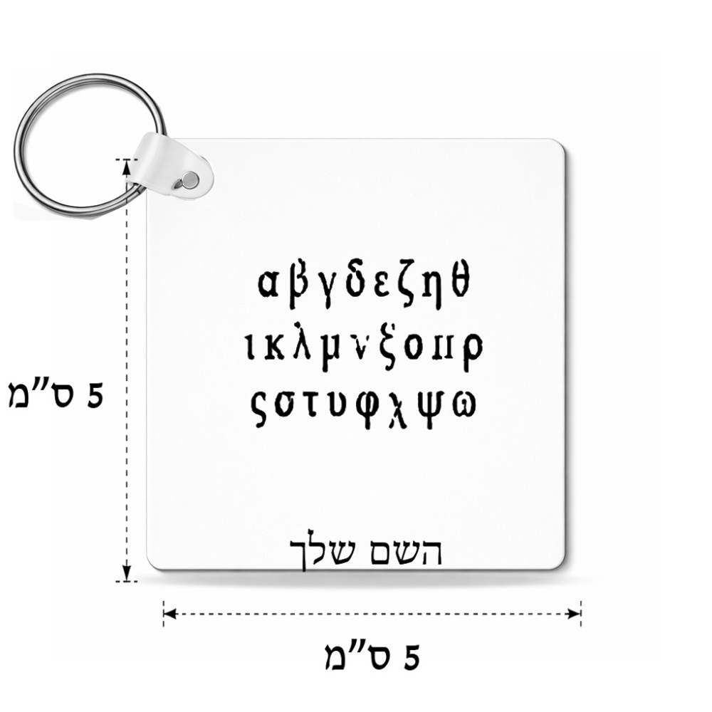 מחזיק מפתחות בצורת ריבוע בעיצוב אישי עם השם שלך בעיצוב האלפבית היווני גודל המחזיק 5 × 5 ס"מ. את השם המבוקש ניתן לציין בהזמנה, אם לא צויין אנחנו ניצור קשר לבירור.