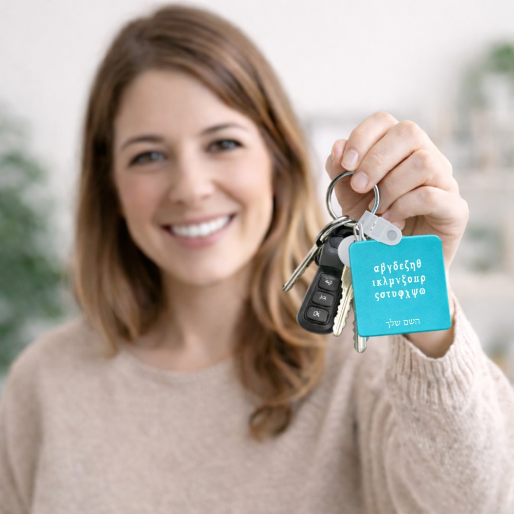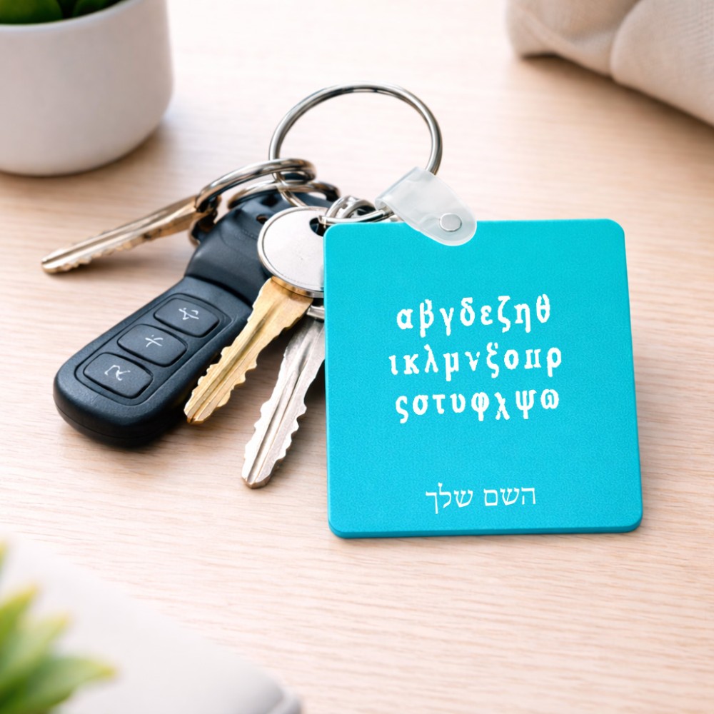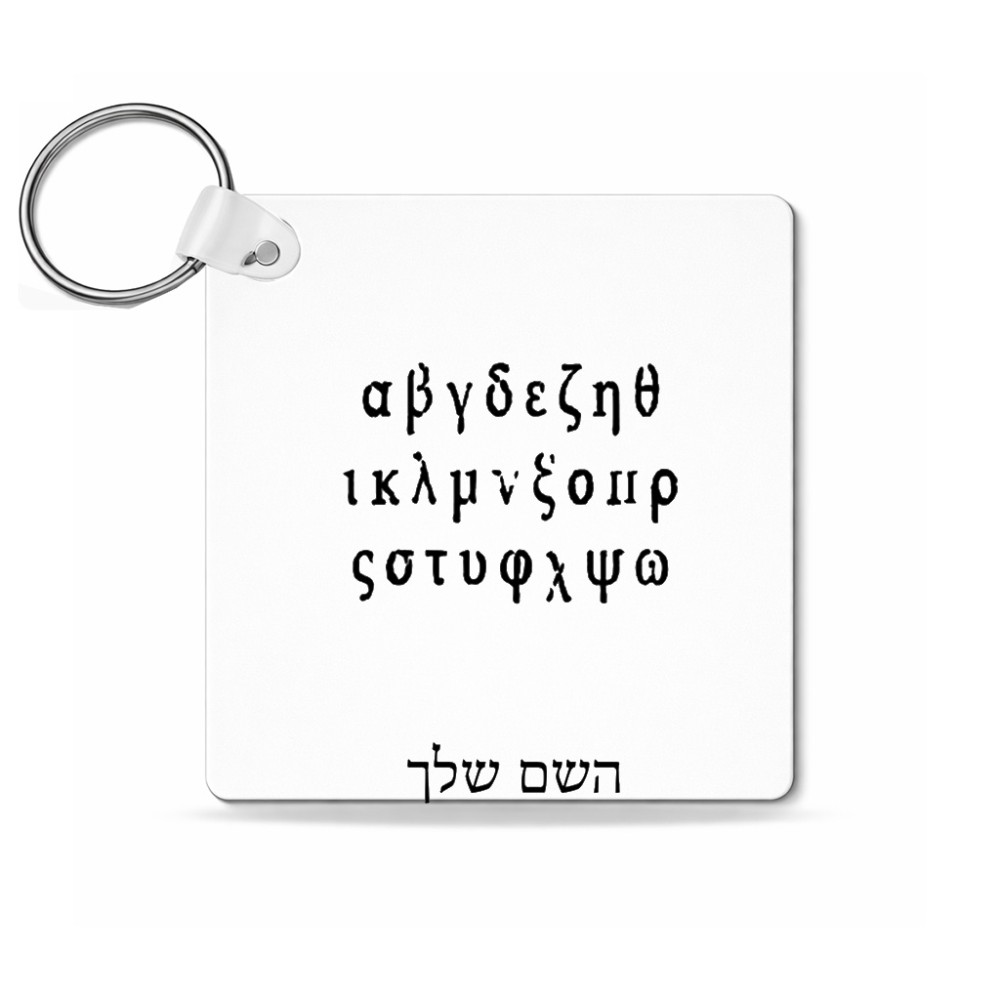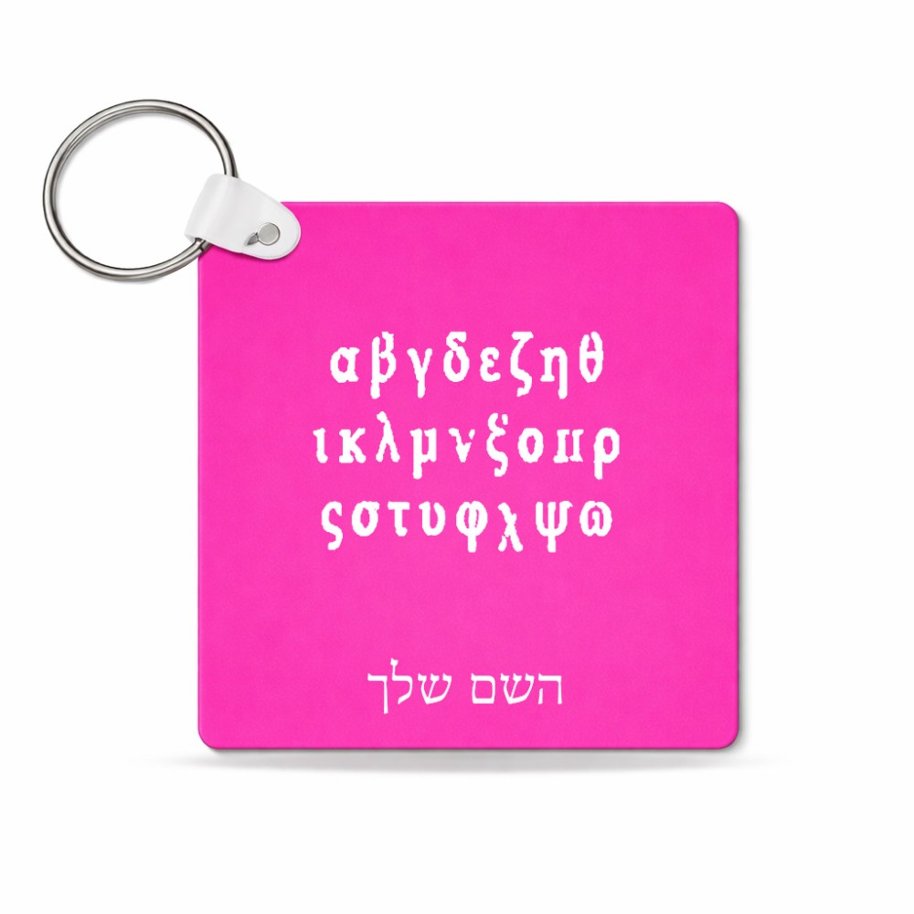 מחזיק מפתחות בצורת ריבוע בעיצוב אישי עם השם שלך בעיצוב האלפבית היווני גודל המחזיק 5 × 5 ס"מ. את השם המבוקש ניתן לציין בהזמנה, אם לא צויין אנחנו ניצור קשר לבירור.