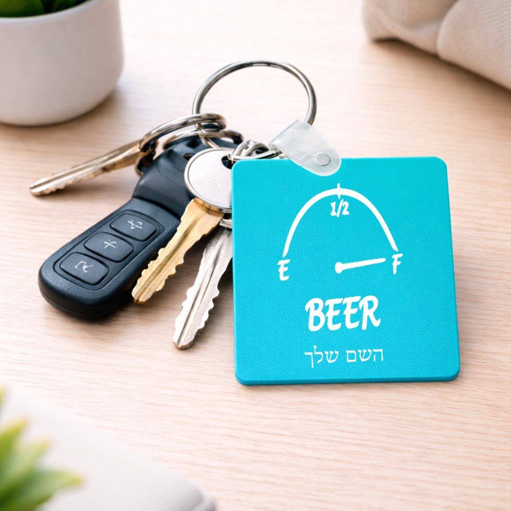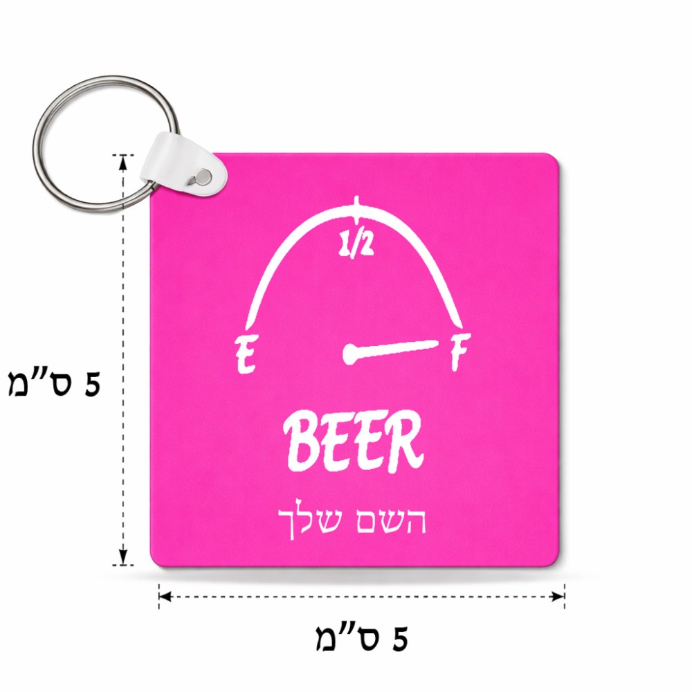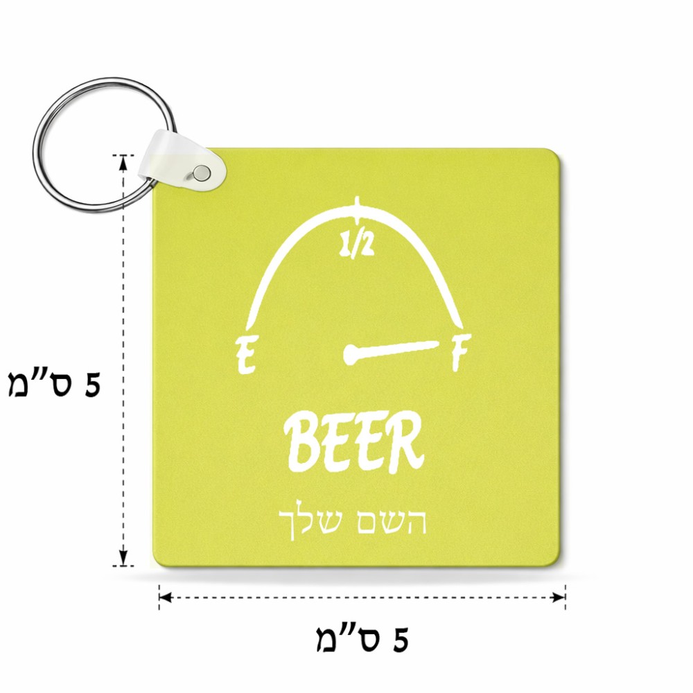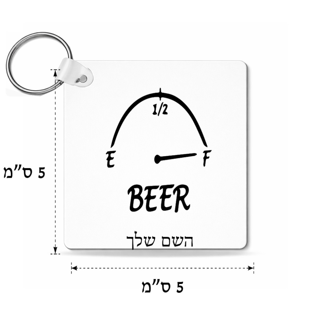 מחזיק מפתחות בצורת ריבוע בעיצוב אישי עם השם שלך בעיצוב מיכל של בירה גודל המחזיק 5 × 5 ס"מ. את השם המבוקש ניתן לציין בהזמנה, אם לא צויין אנחנו ניצור קשר לבירור.