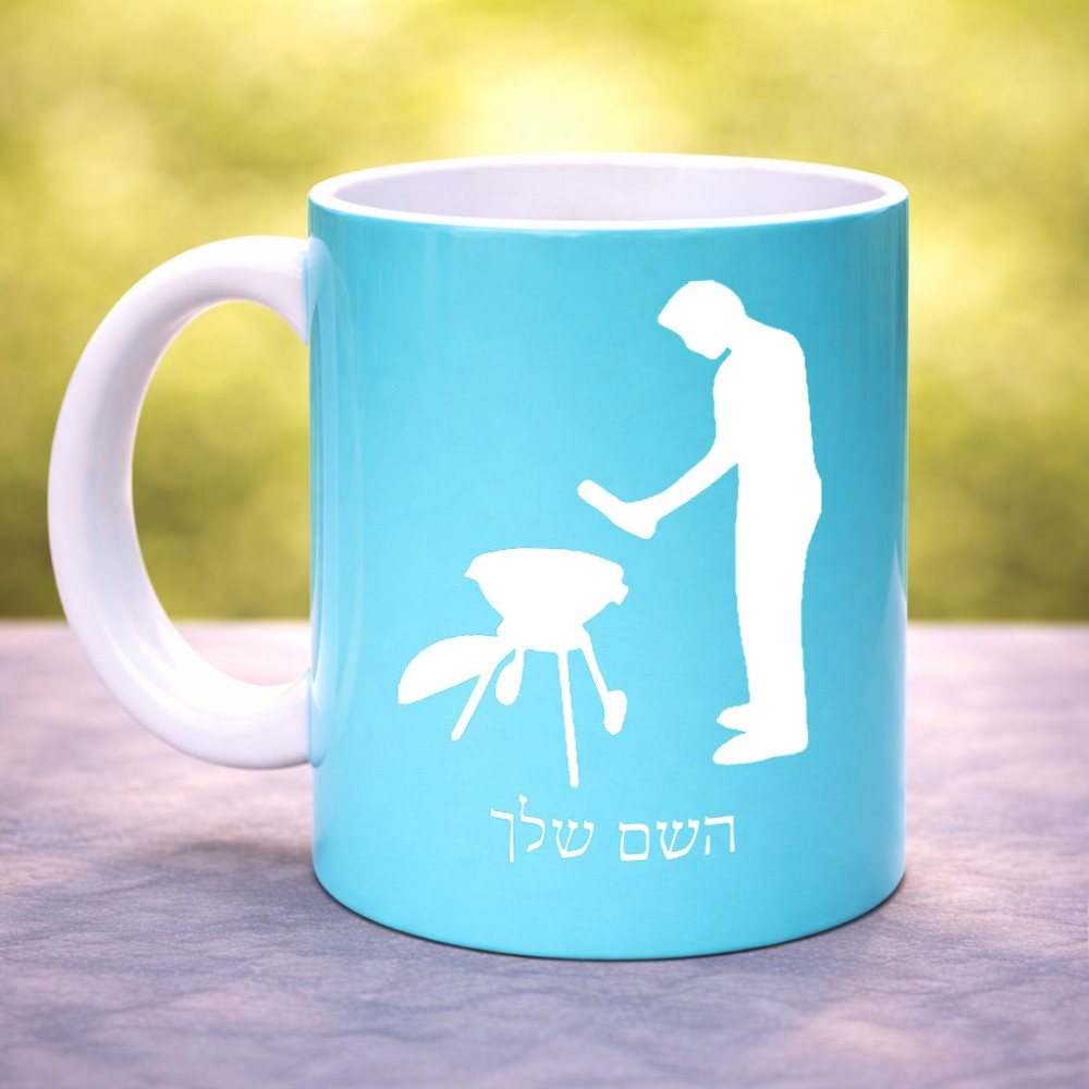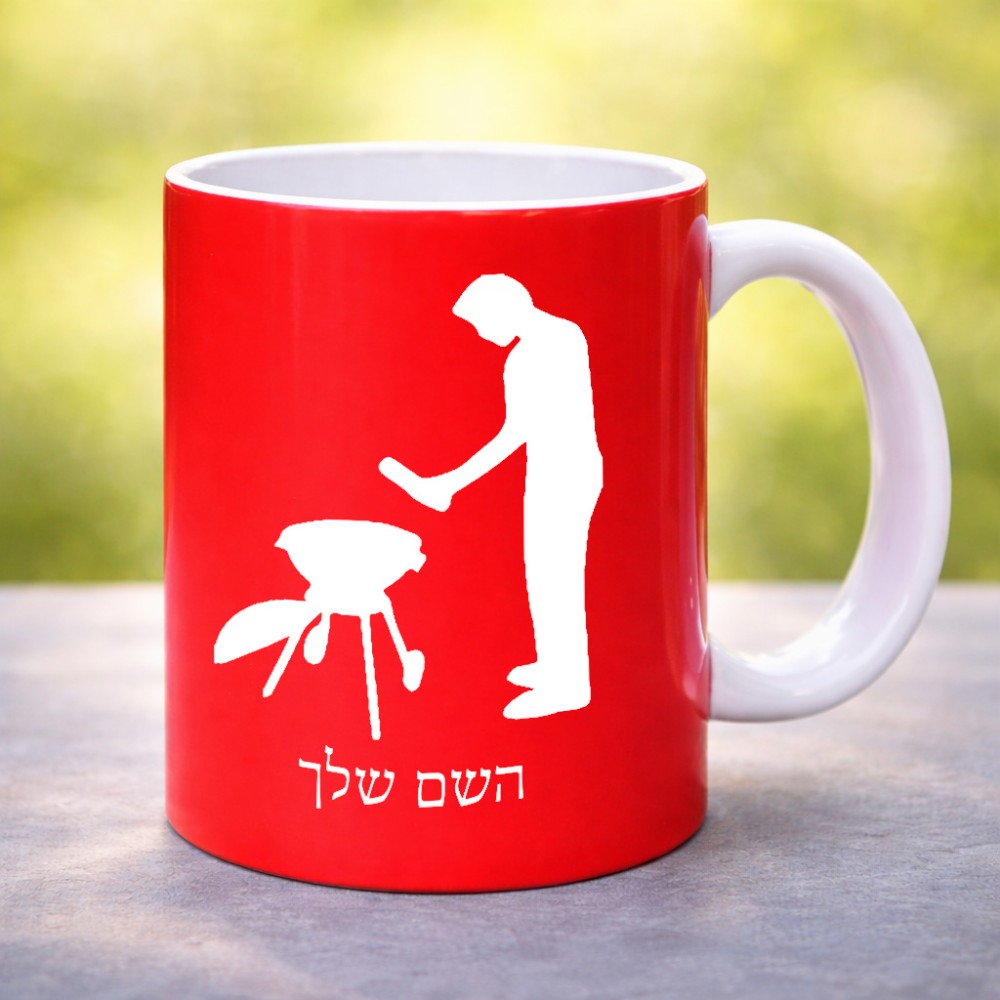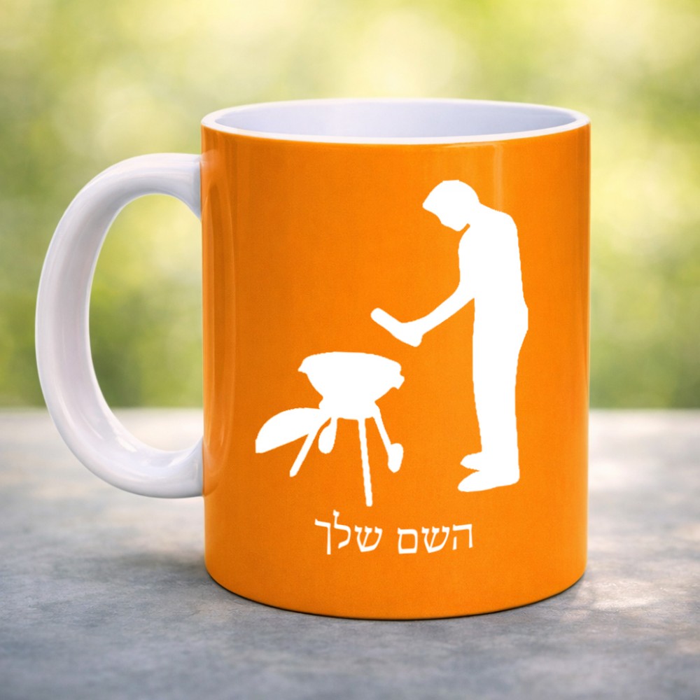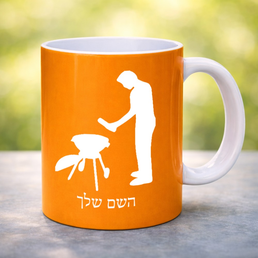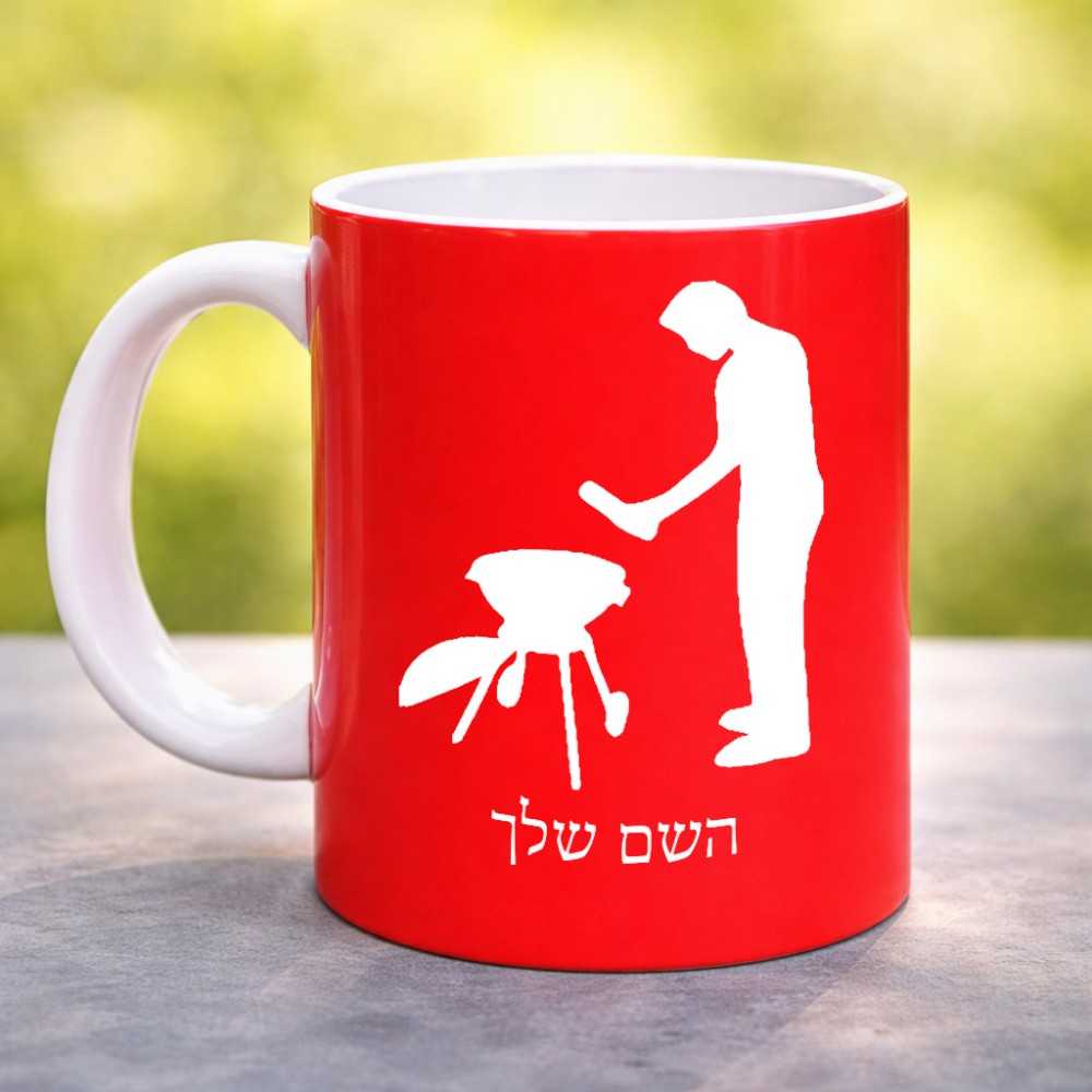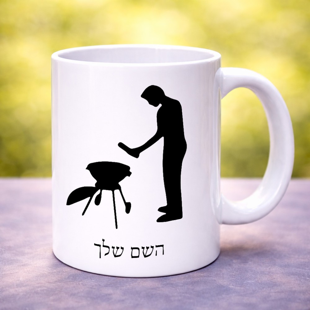 ספל תה \ קפה בעיצוב אישי עם השם שלך בעיצוב גריל ברביקיו גדול הספל 325 מ"ל, הספל בעלת ידית לאחיזה יציבה. את השם המבוקש ניתן לציין בהזמנה, אם לא צויין אנחנו ניצור קשר לבירור.