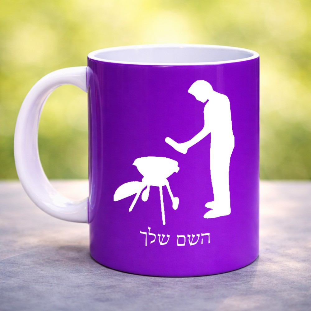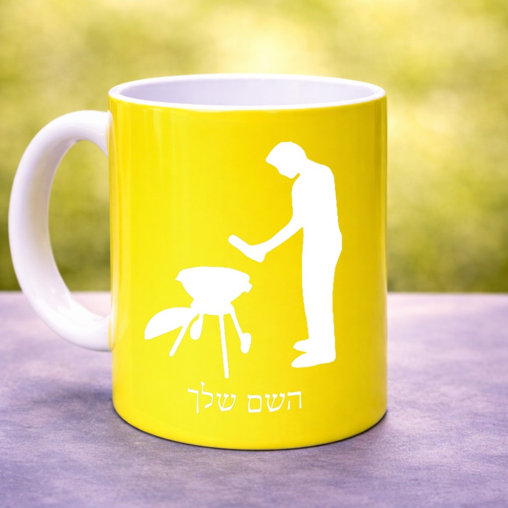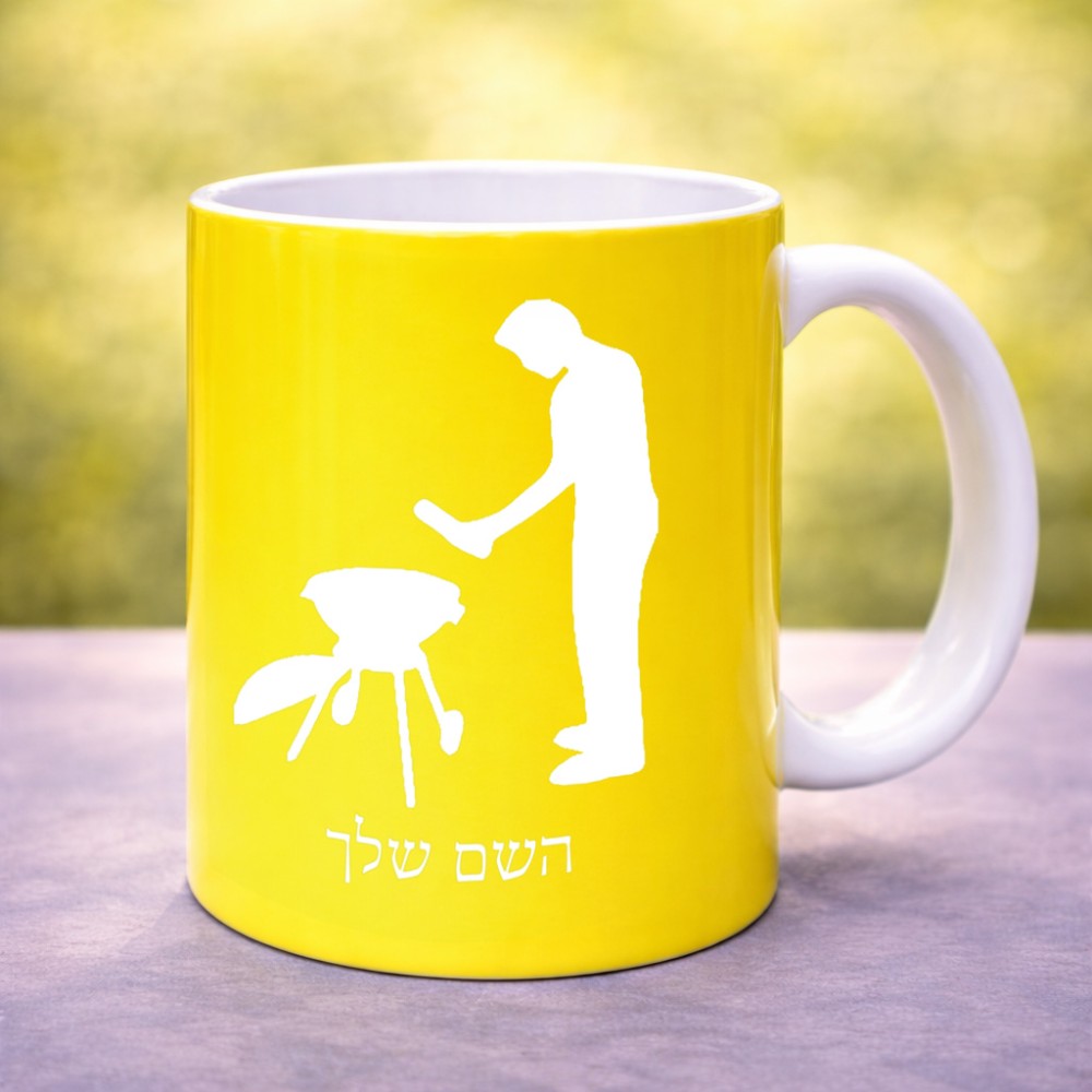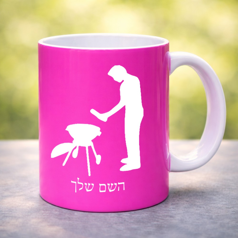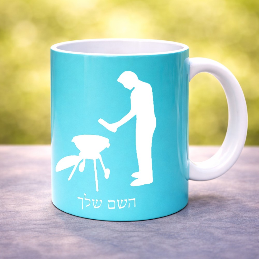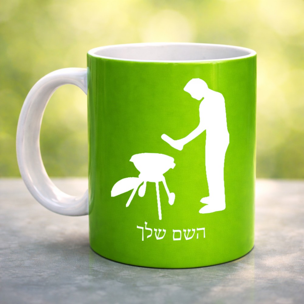 ספל תה \ קפה בעיצוב אישי עם השם שלך בעיצוב גריל ברביקיו גדול הספל 325 מ"ל, הספל בעלת ידית לאחיזה יציבה. את השם המבוקש ניתן לציין בהזמנה, אם לא צויין אנחנו ניצור קשר לבירור.
