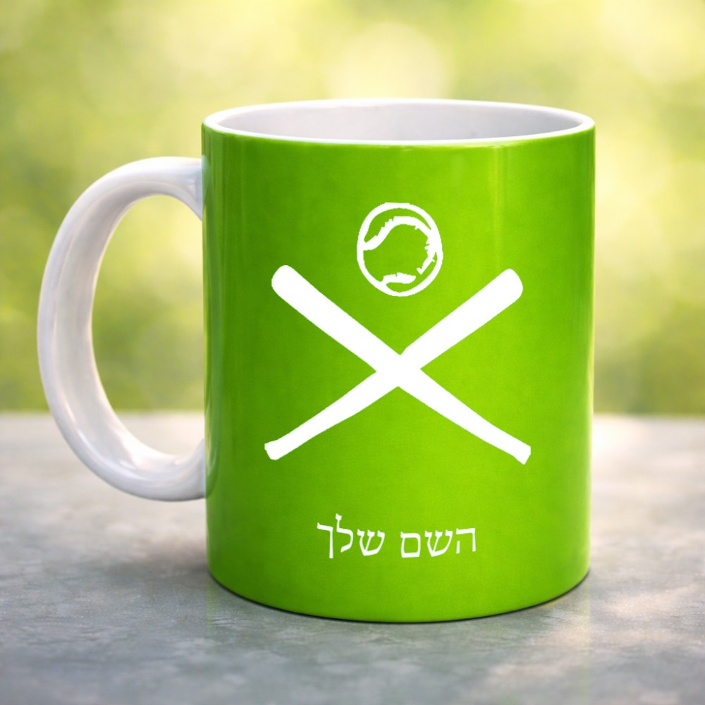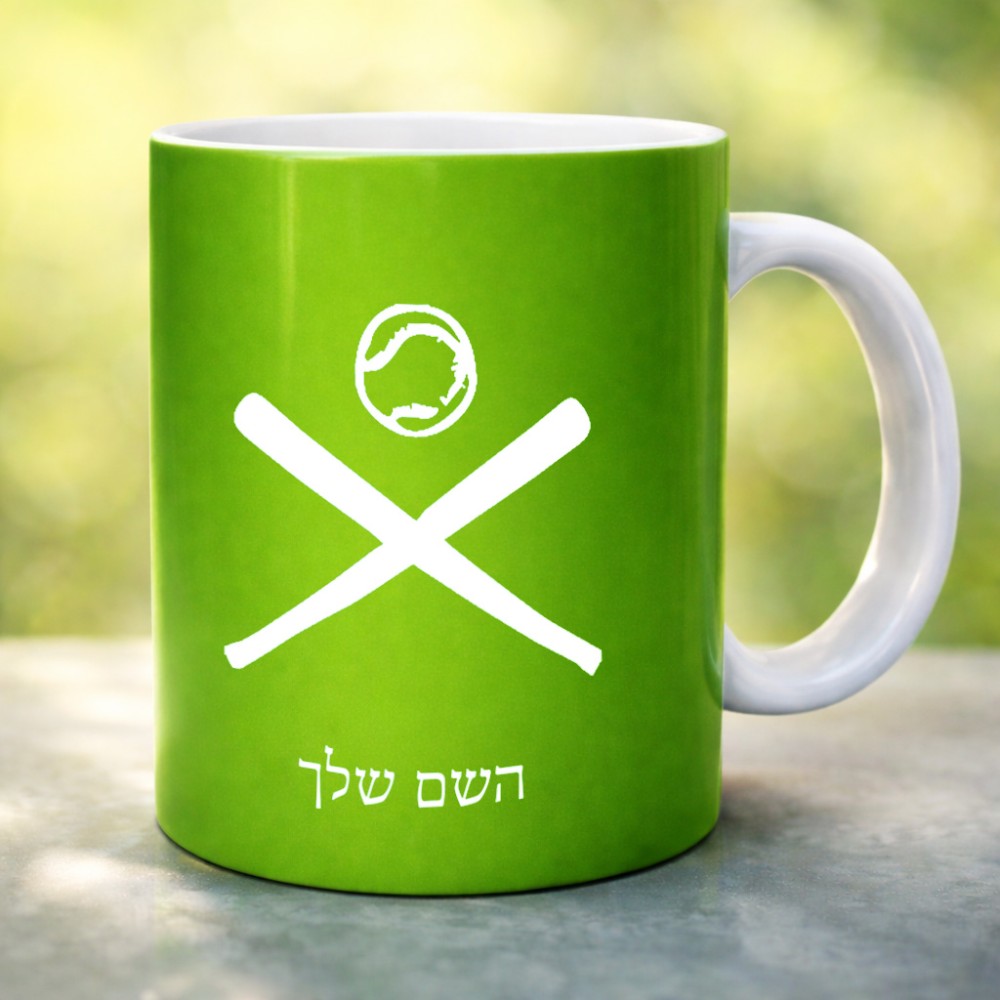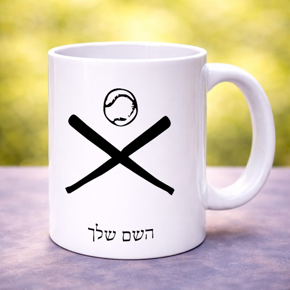 ספל תה \ קפה בעיצוב אישי עם השם שלך בעיצוב כדור בסיס גדול הספל 325 מ"ל, הספל בעלת ידית לאחיזה יציבה. את השם המבוקש ניתן לציין בהזמנה, אם לא צויין אנחנו ניצור קשר לבירור.