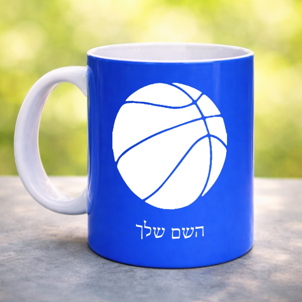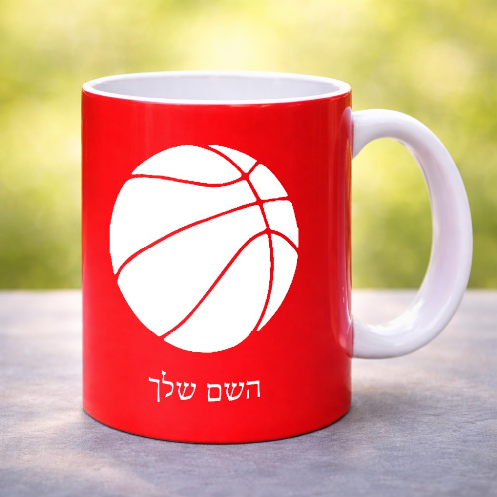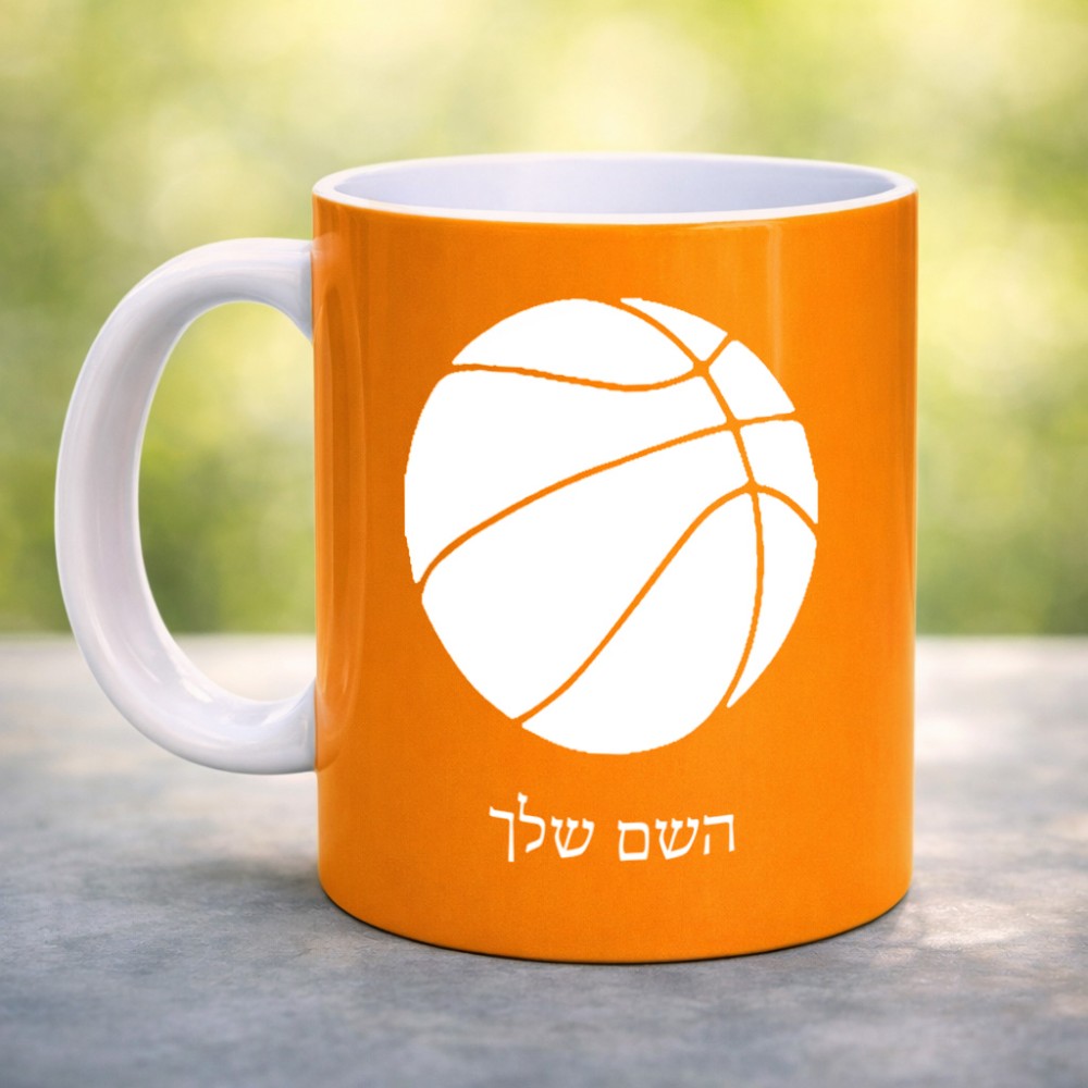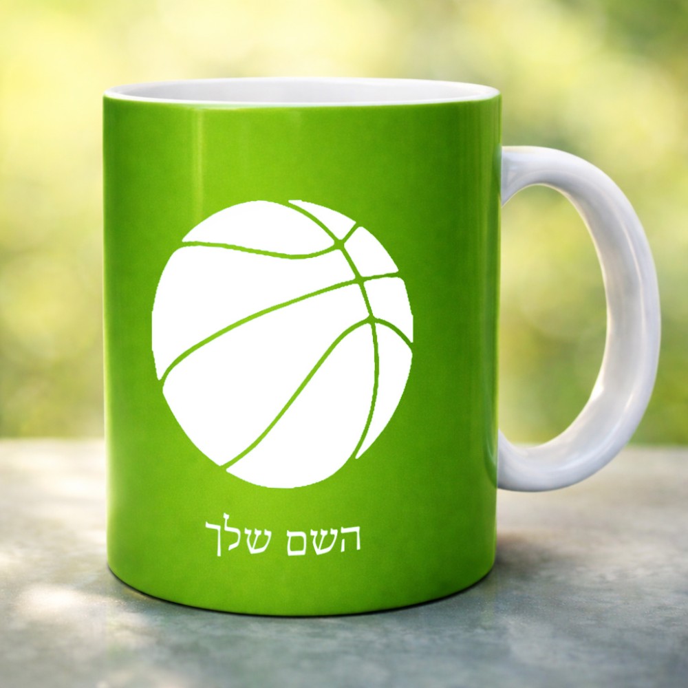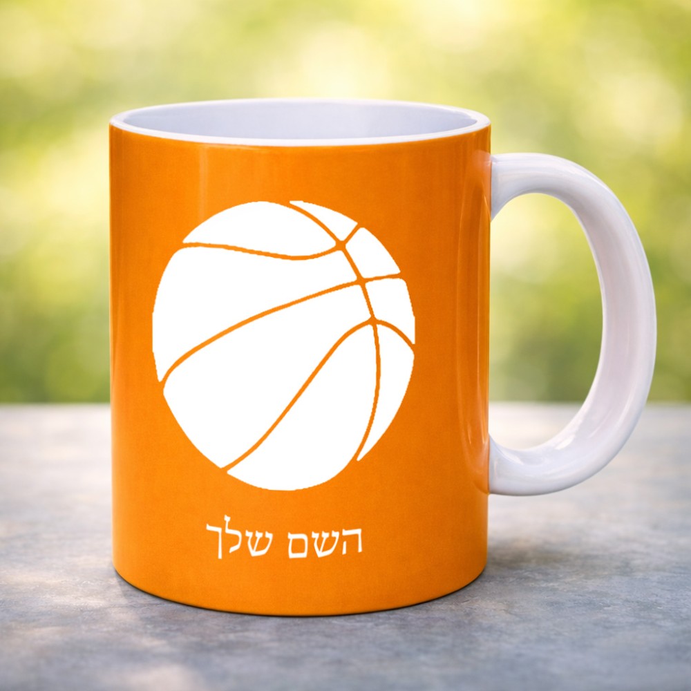 ספל תה \ קפה בעיצוב אישי עם השם שלך בעיצוב כדורסל גדול הספל 325 מ"ל, הספל בעלת ידית לאחיזה יציבה. את השם המבוקש ניתן לציין בהזמנה, אם לא צויין אנחנו ניצור קשר לבירור.