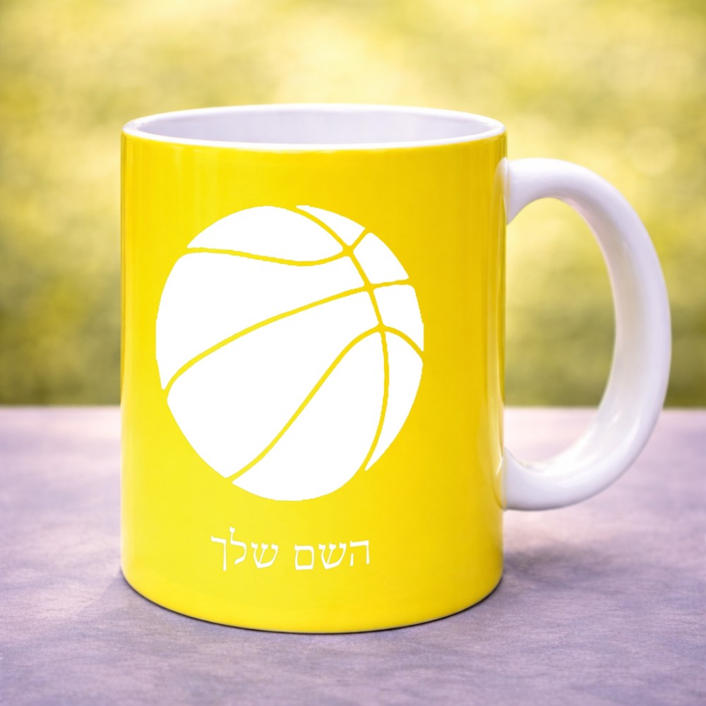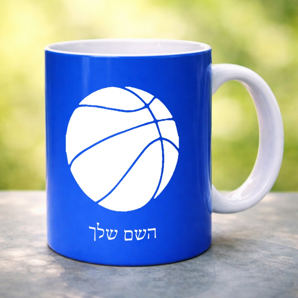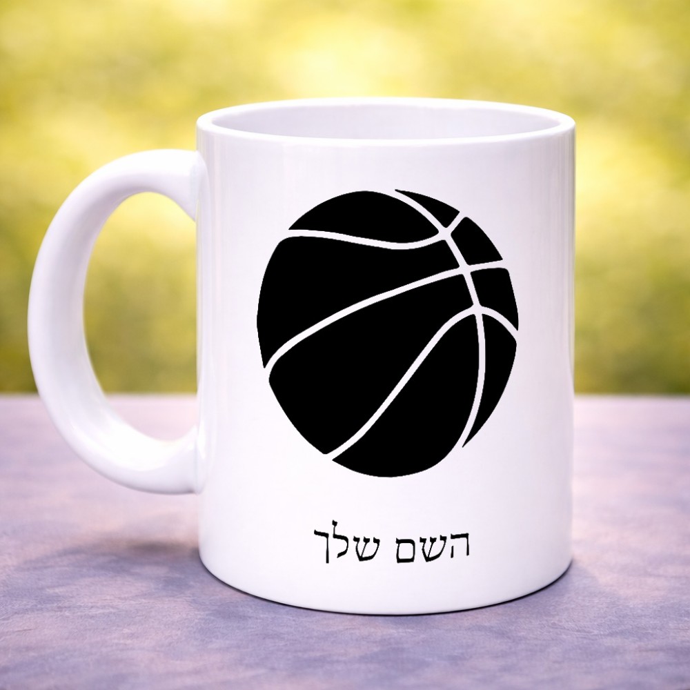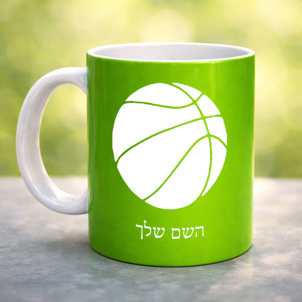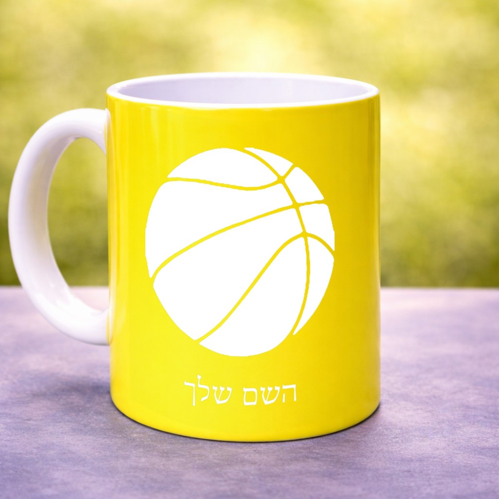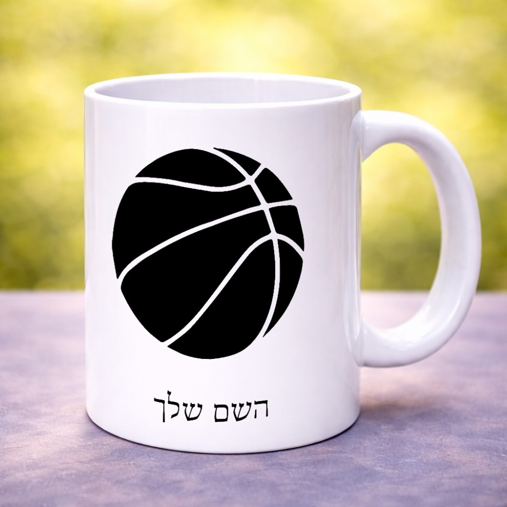 ספל תה \ קפה בעיצוב אישי עם השם שלך בעיצוב כדורסל גדול הספל 325 מ"ל, הספל בעלת ידית לאחיזה יציבה. את השם המבוקש ניתן לציין בהזמנה, אם לא צויין אנחנו ניצור קשר לבירור.