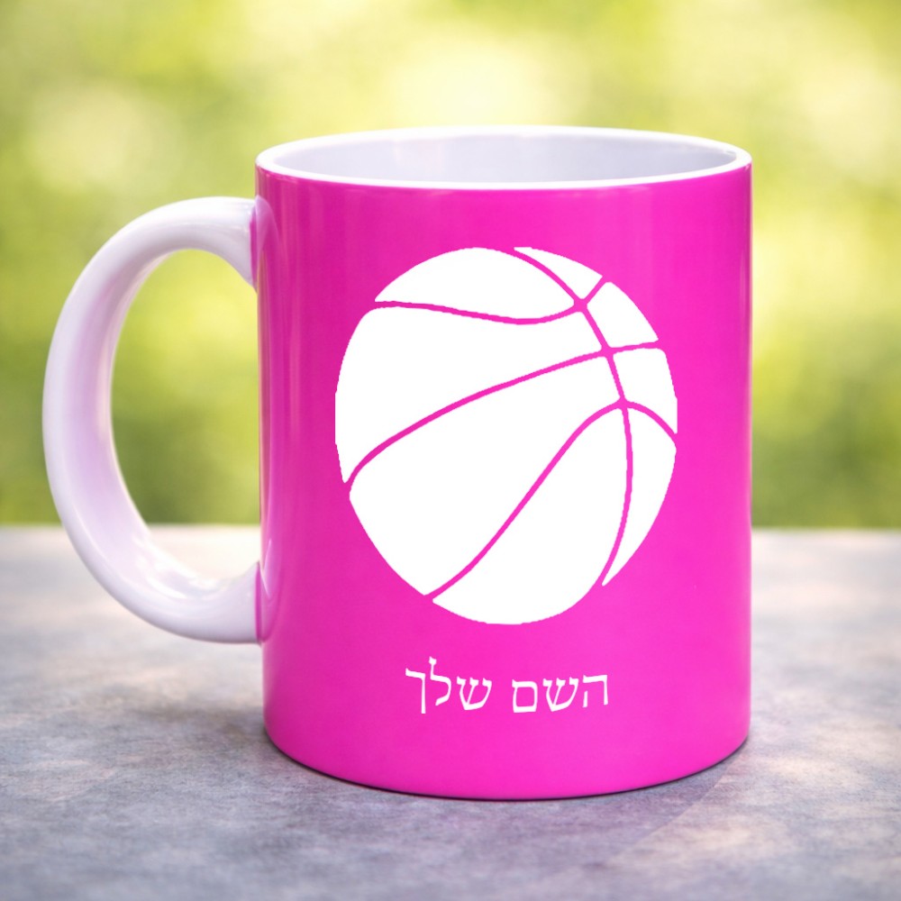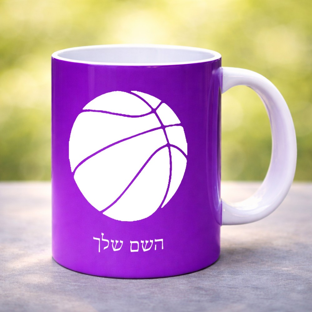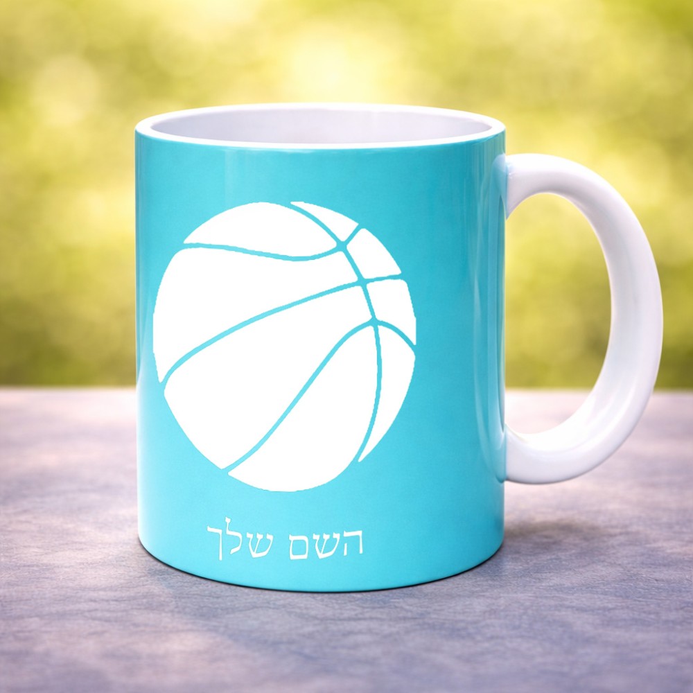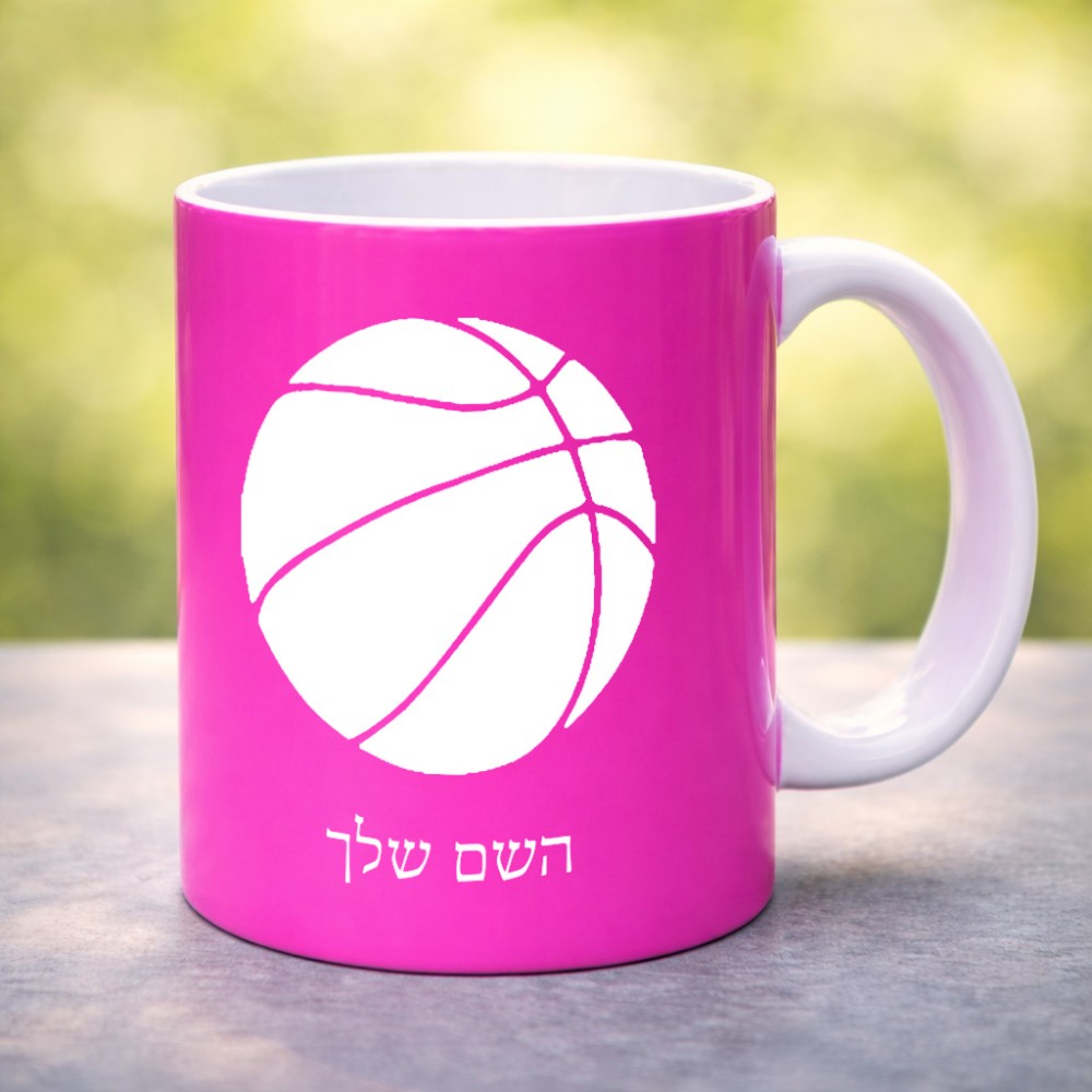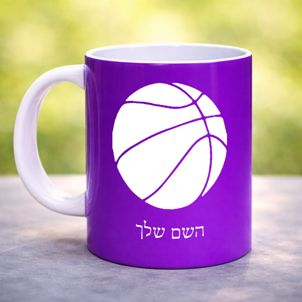 ספל תה \ קפה בעיצוב אישי עם השם שלך בעיצוב כדורסל גדול הספל 325 מ"ל, הספל בעלת ידית לאחיזה יציבה. את השם המבוקש ניתן לציין בהזמנה, אם לא צויין אנחנו ניצור קשר לבירור.