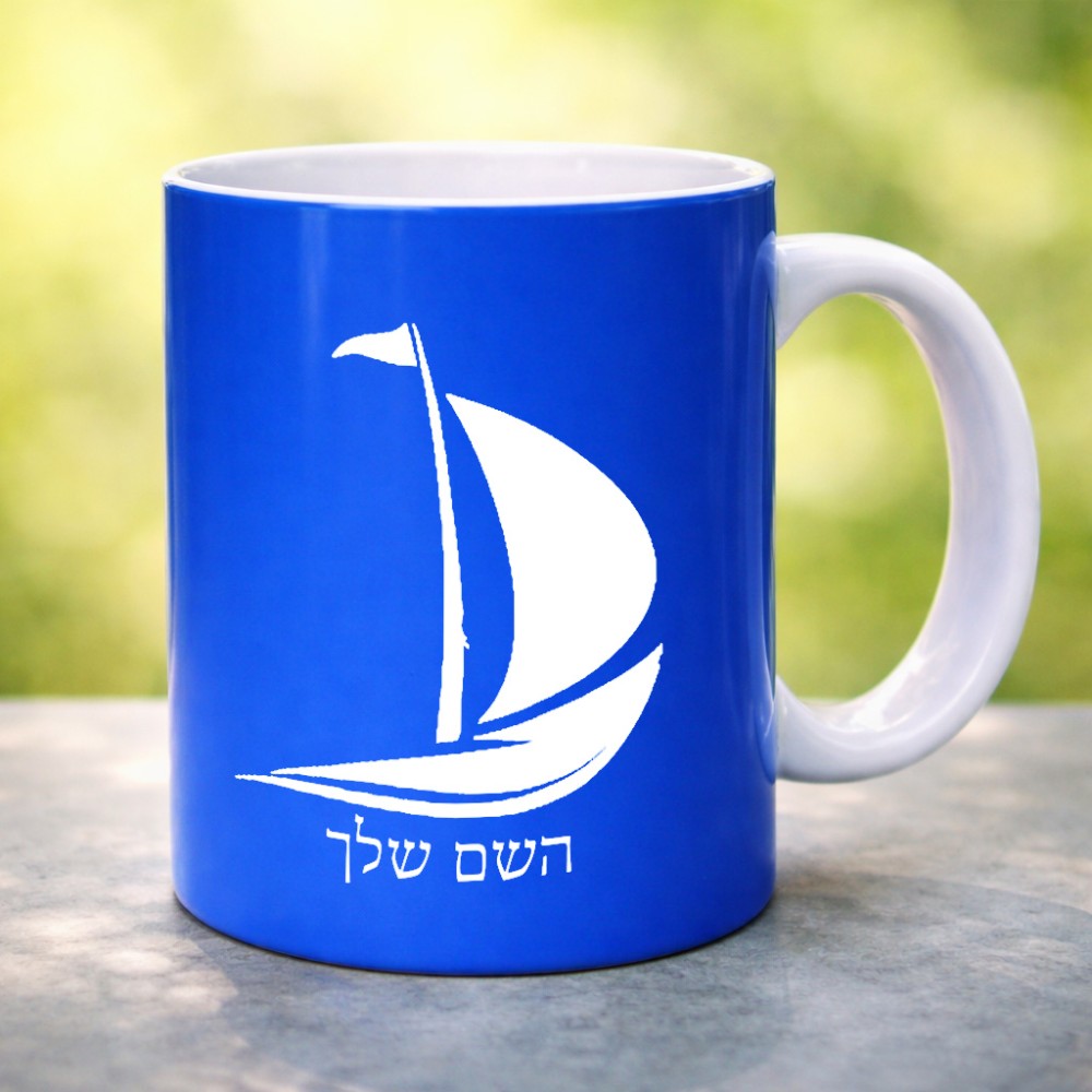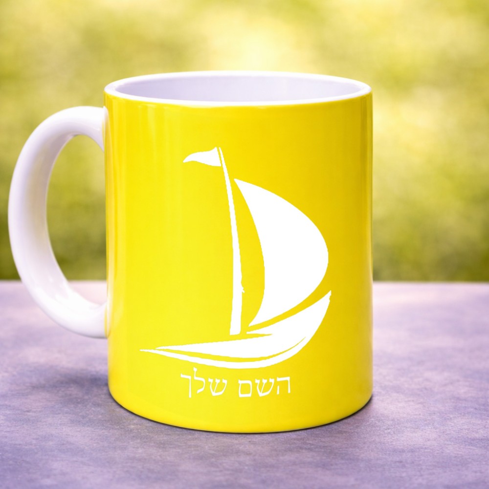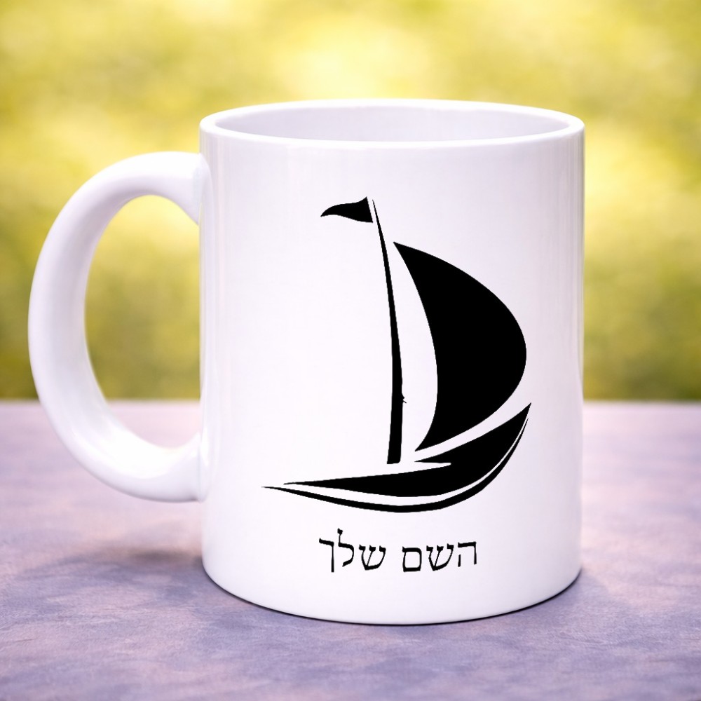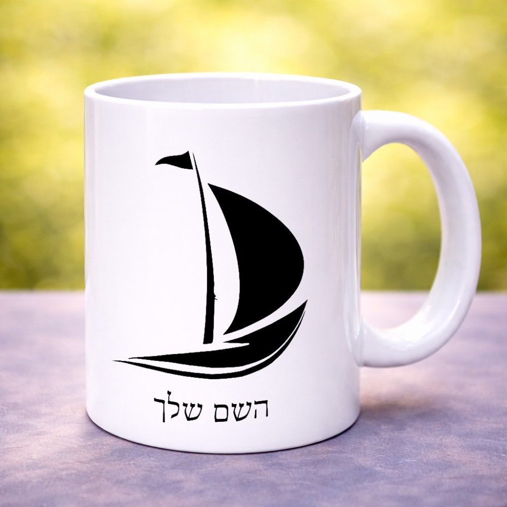 ספל תה \ קפה בעיצוב אישי עם השם שלך בעיצוב סירה גדול הספל 325 מ"ל, הספל בעלת ידית לאחיזה יציבה. את השם המבוקש ניתן לציין בהזמנה, אם לא צויין אנחנו ניצור קשר לבירור.