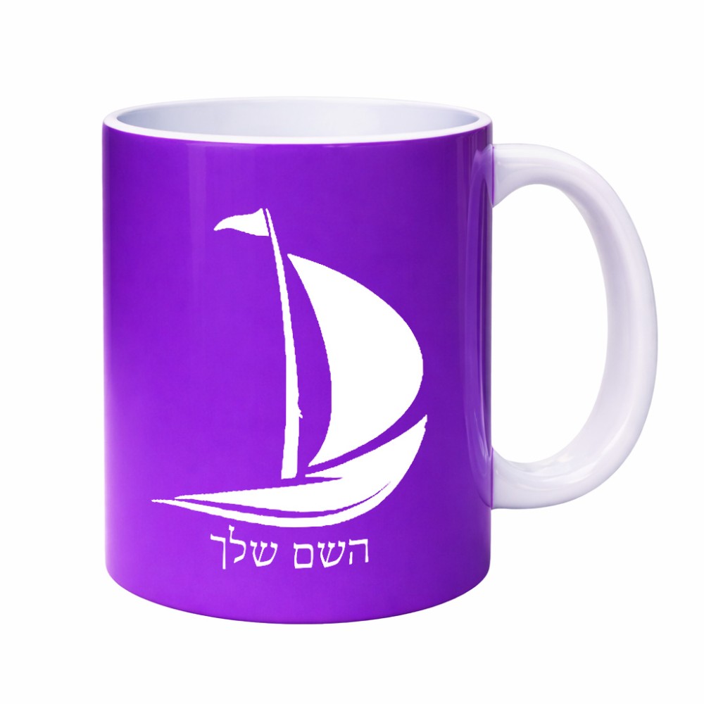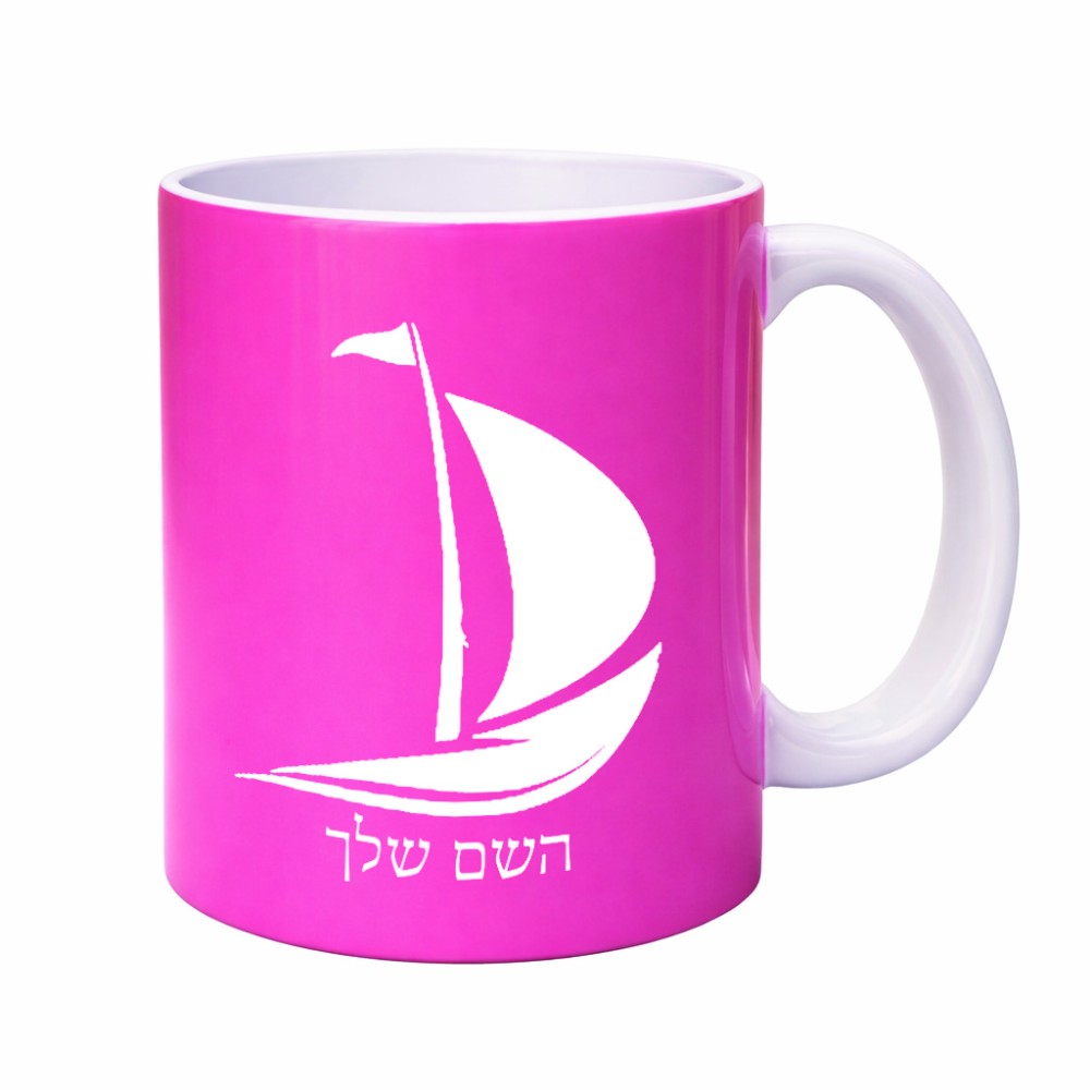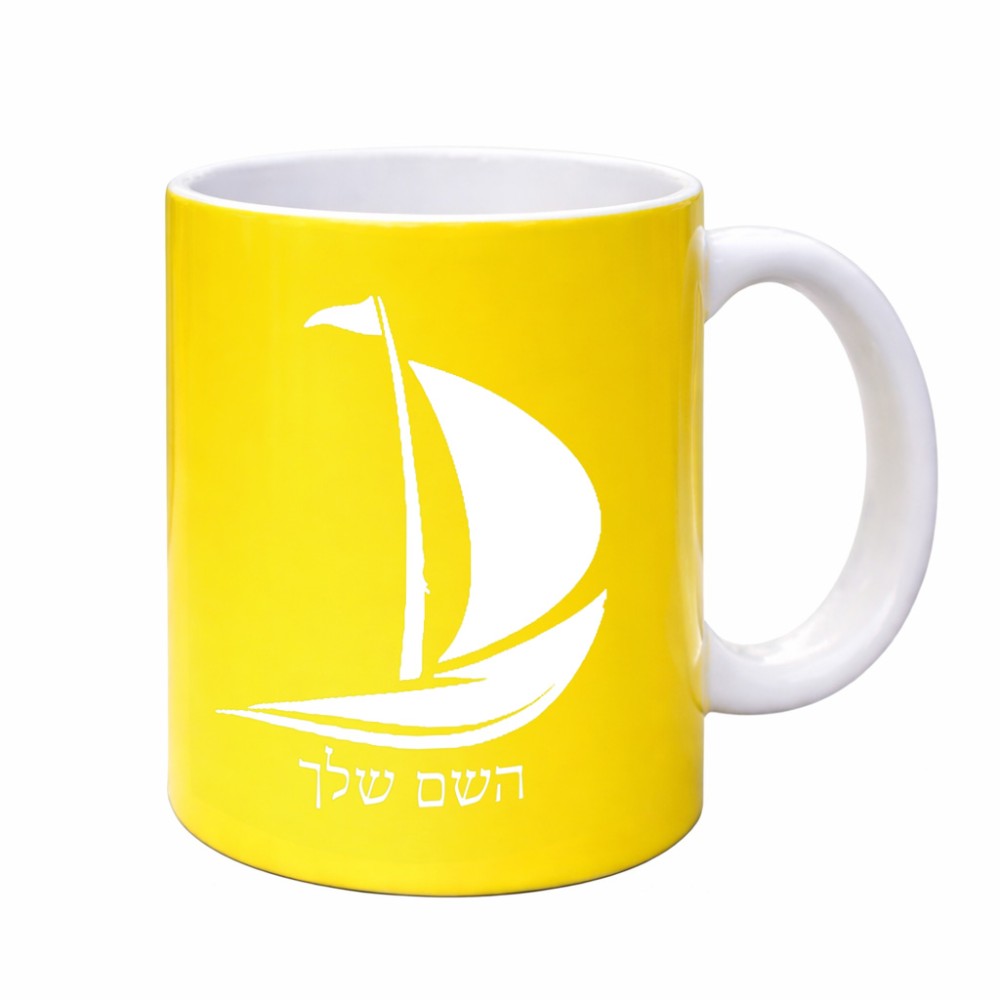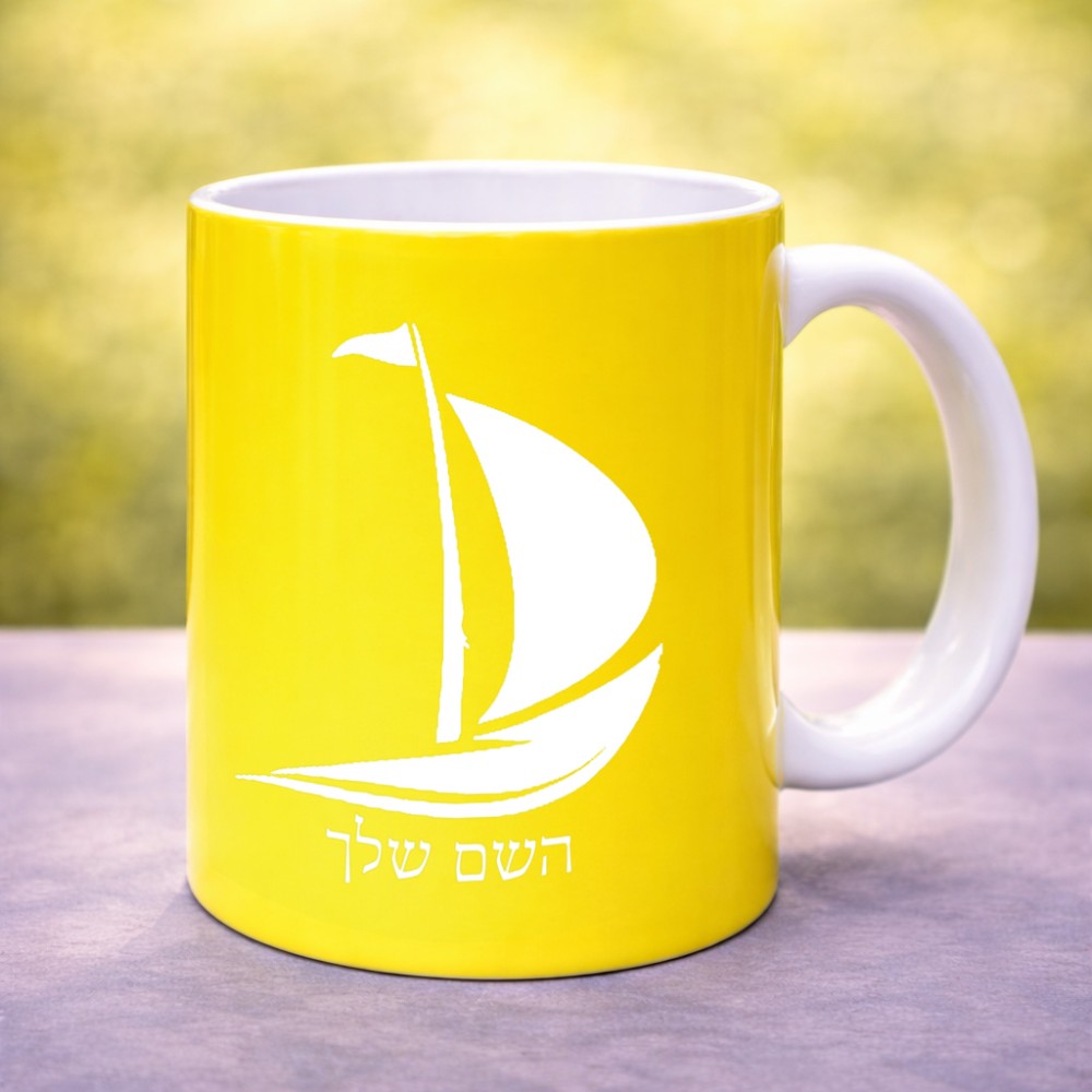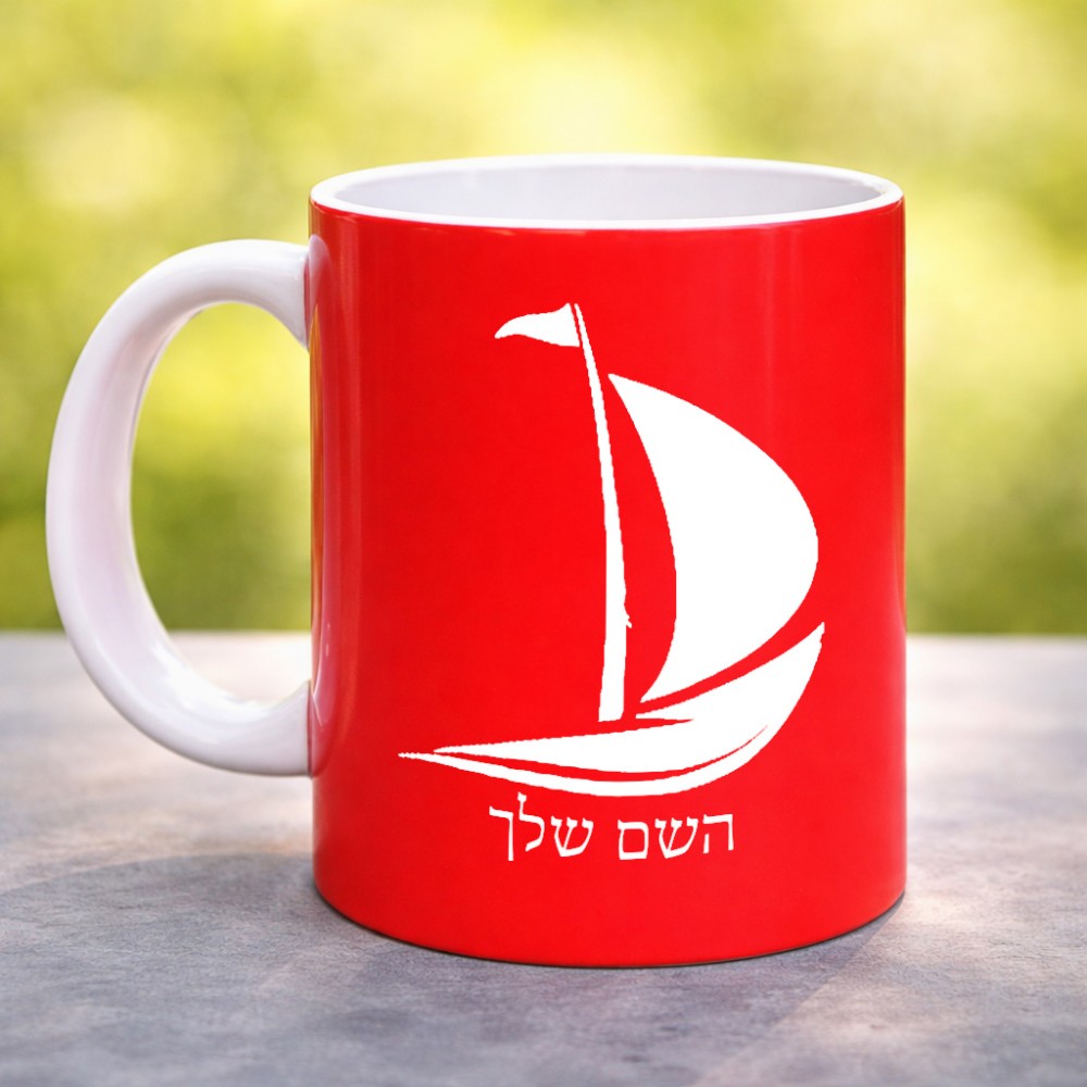 ספל תה \ קפה בעיצוב אישי עם השם שלך בעיצוב סירה גדול הספל 325 מ"ל, הספל בעלת ידית לאחיזה יציבה. את השם המבוקש ניתן לציין בהזמנה, אם לא צויין אנחנו ניצור קשר לבירור.