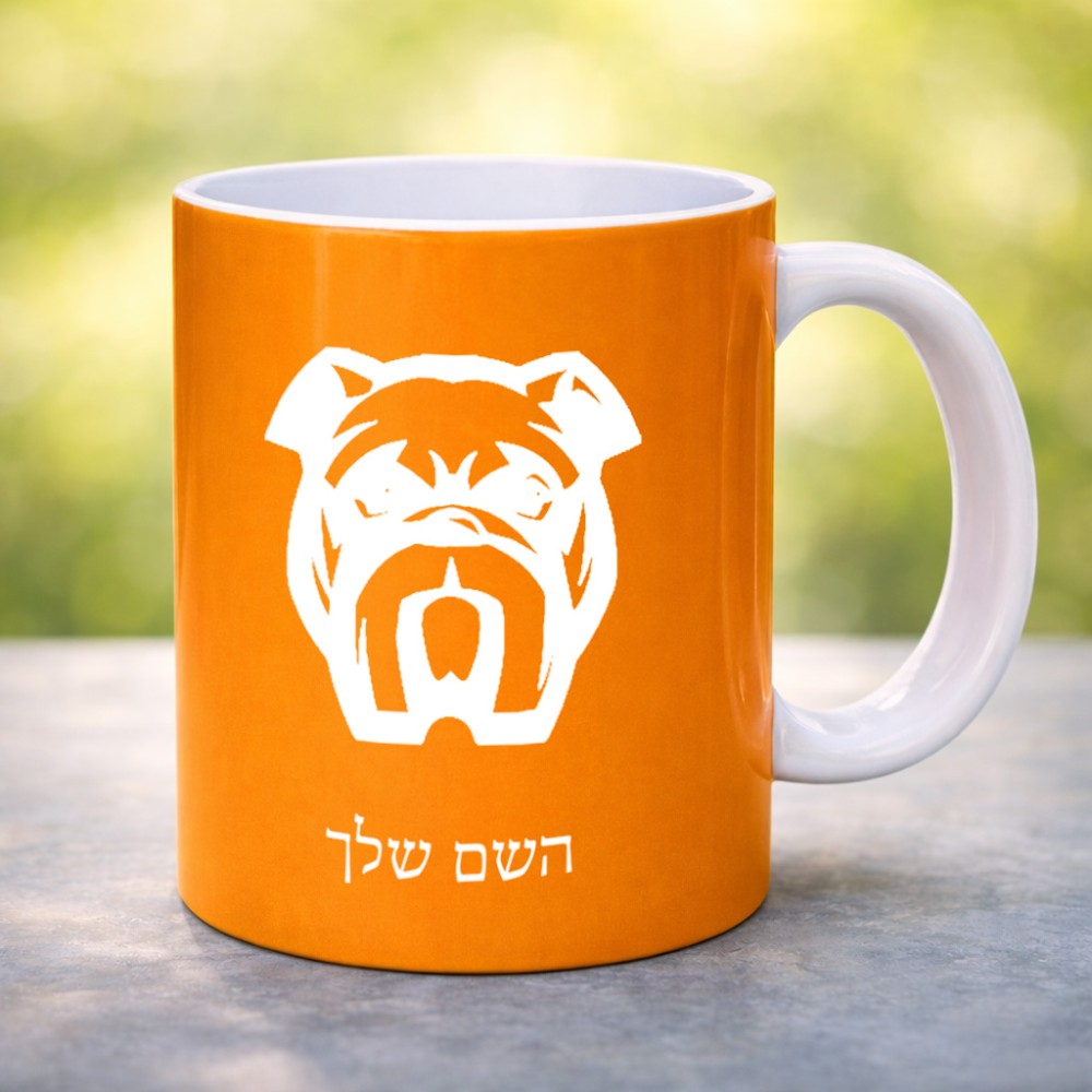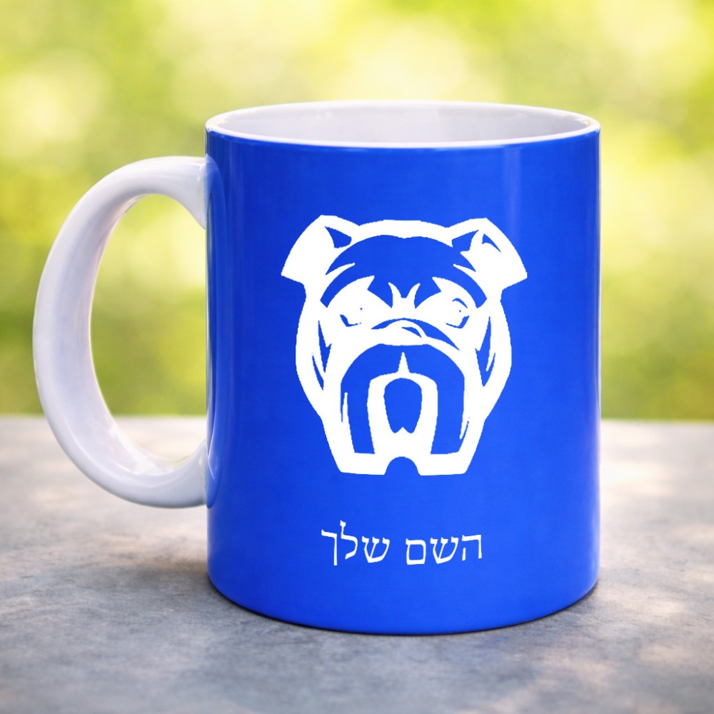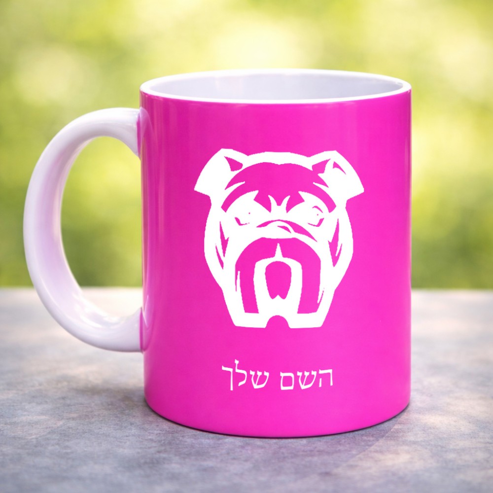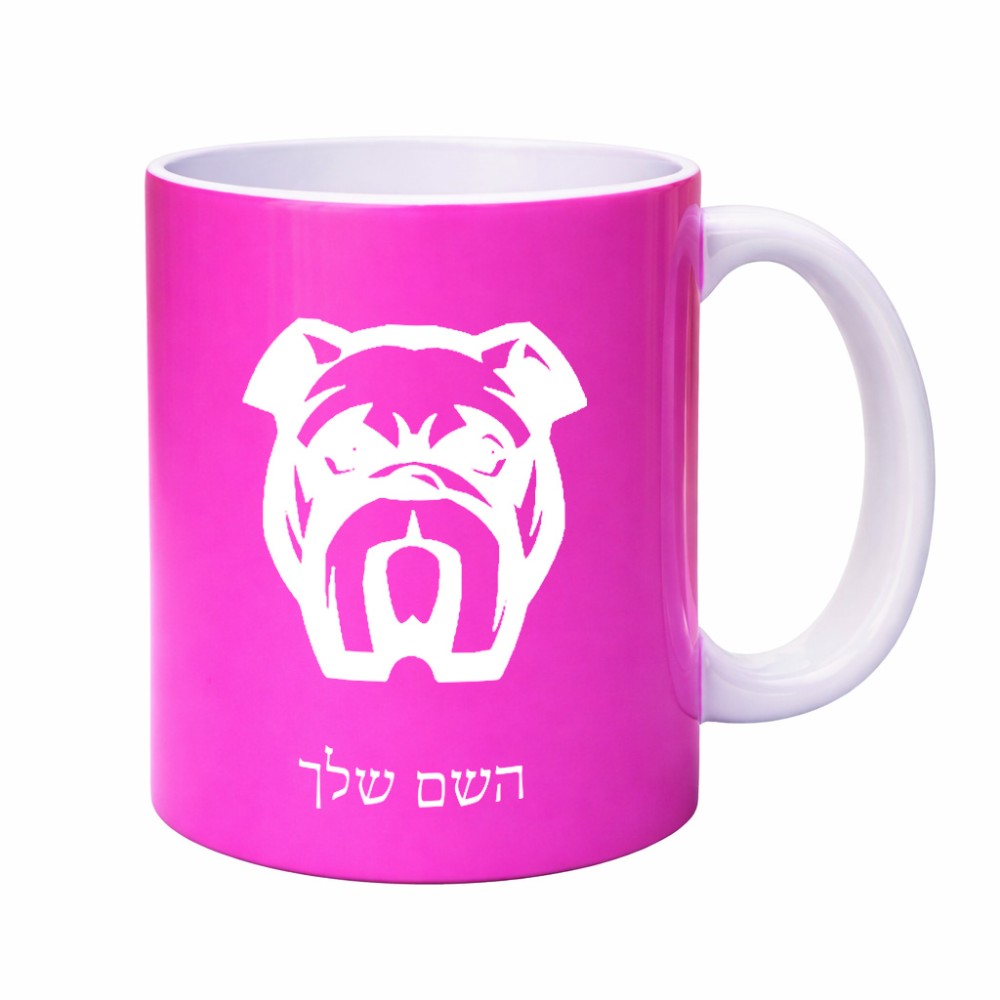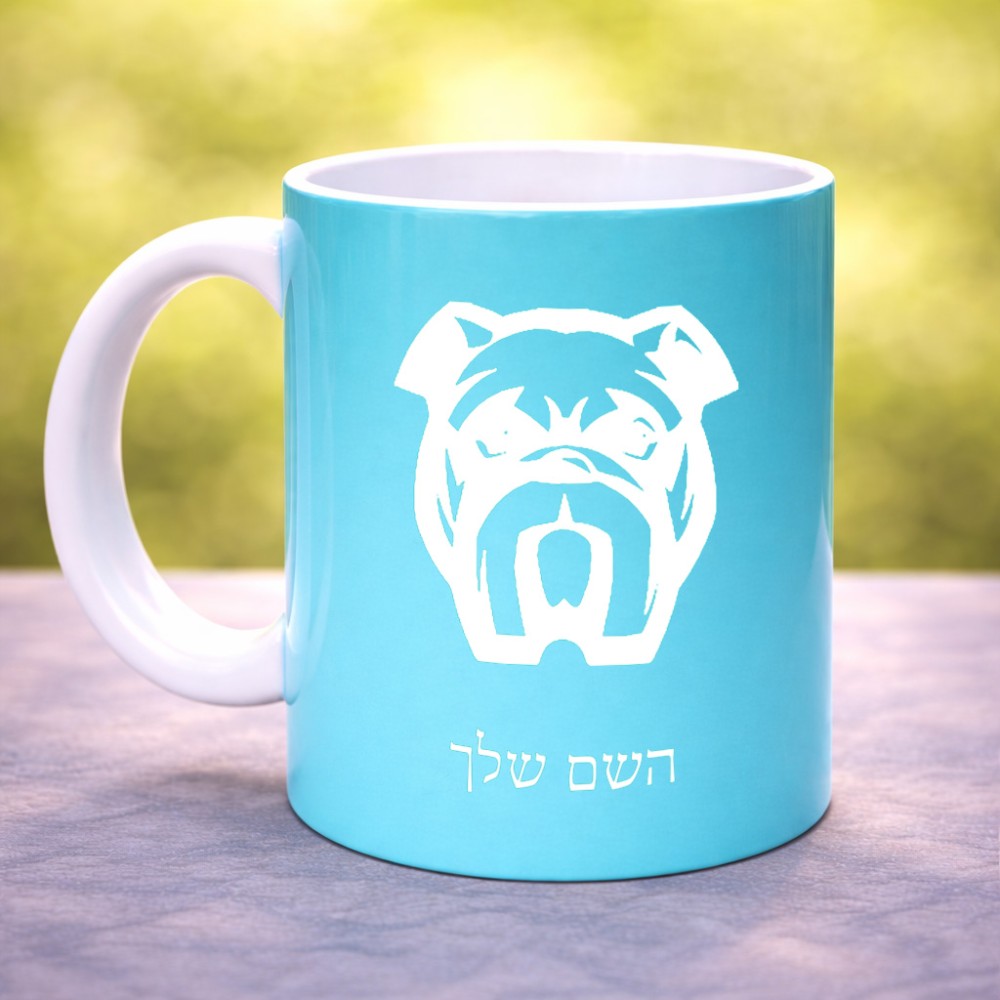 ספל תה \ קפה בעיצוב אישי עם השם שלך בעיצוב פרצוף בולדוג גדול הספל 325 מ"ל, הספל בעלת ידית לאחיזה יציבה. את השם המבוקש ניתן לציין בהזמנה, אם לא צויין אנחנו ניצור קשר לבירור.