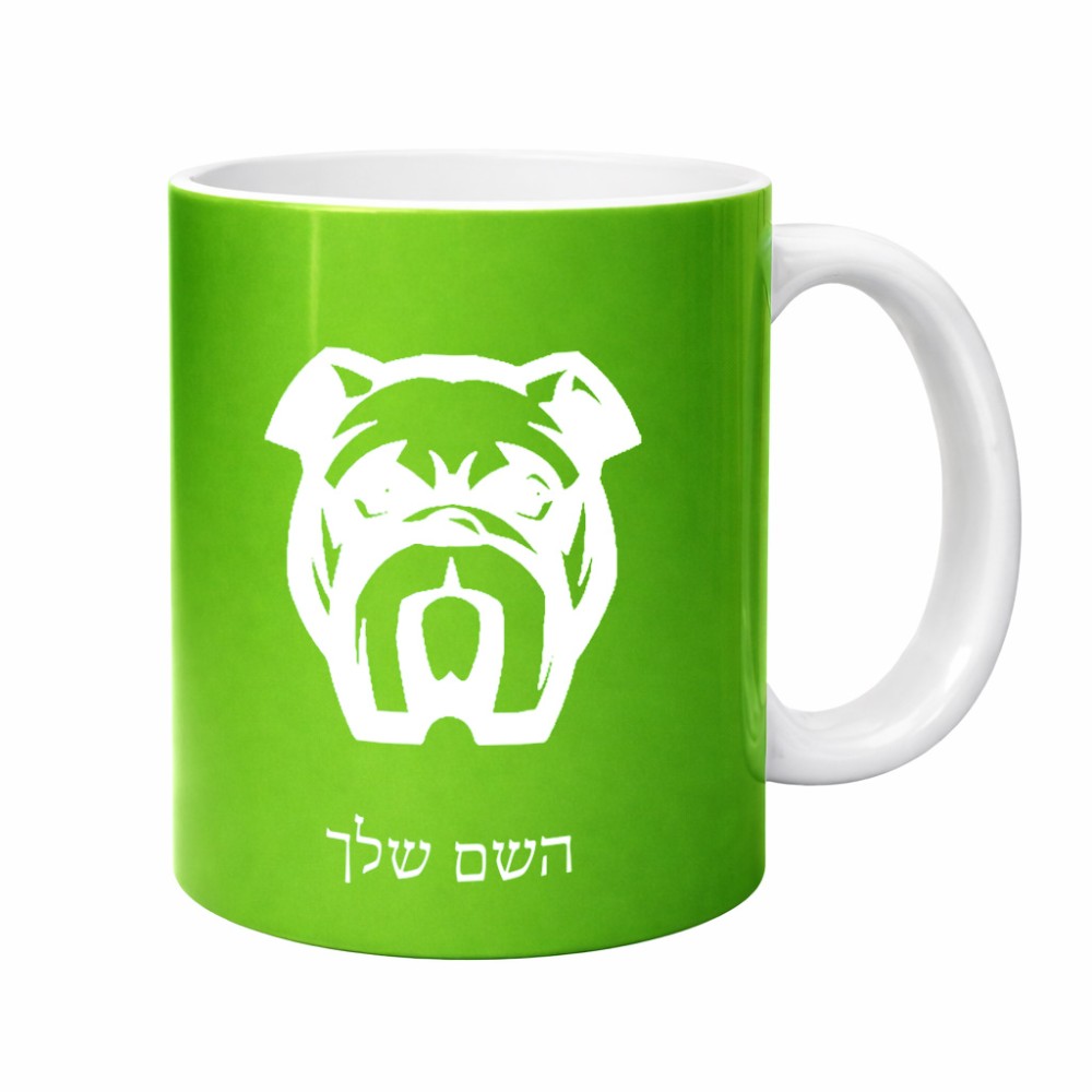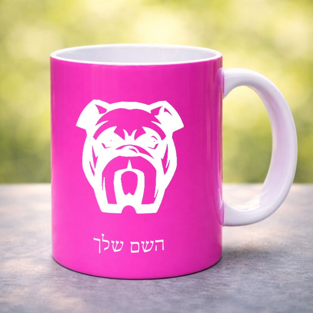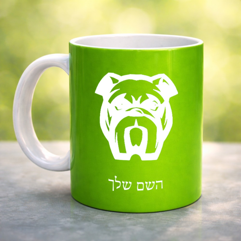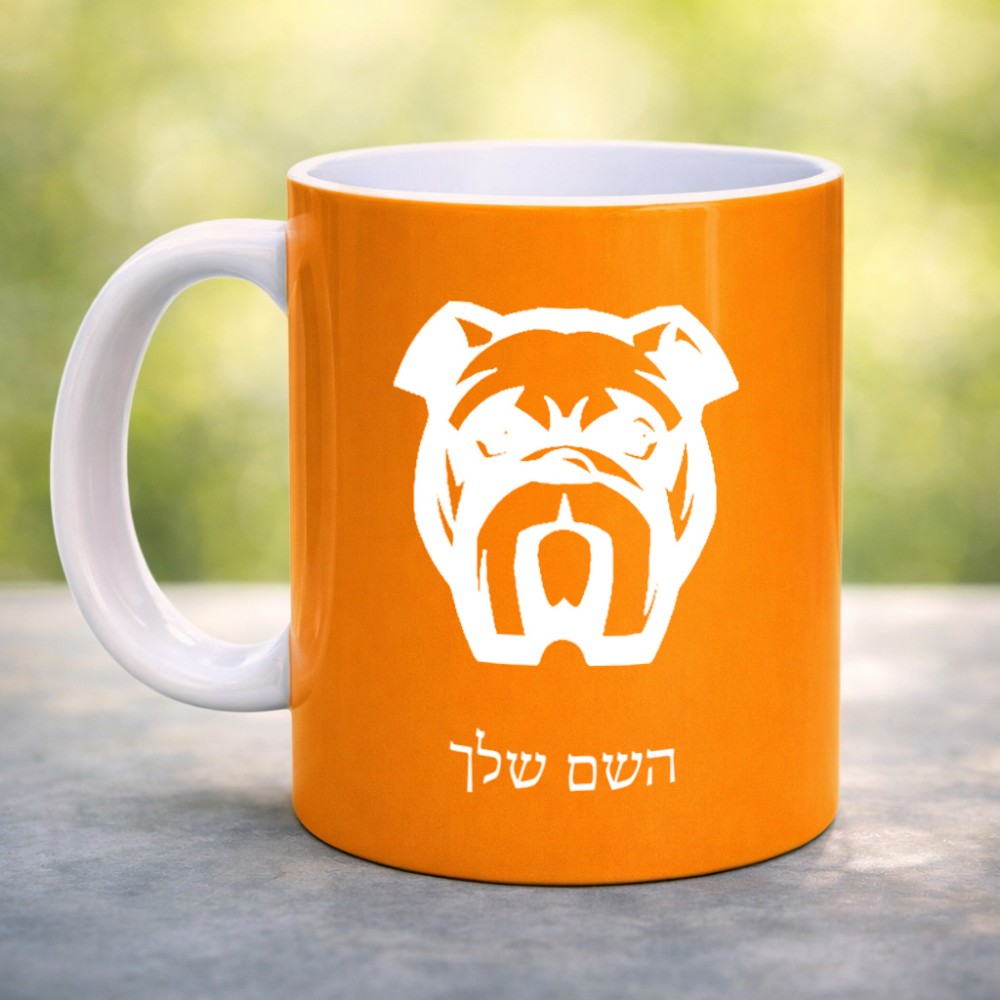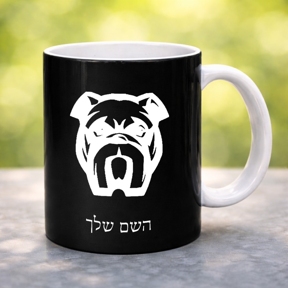 ספל תה \ קפה בעיצוב אישי עם השם שלך בעיצוב פרצוף בולדוג גדול הספל 325 מ"ל, הספל בעלת ידית לאחיזה יציבה. את השם המבוקש ניתן לציין בהזמנה, אם לא צויין אנחנו ניצור קשר לבירור.