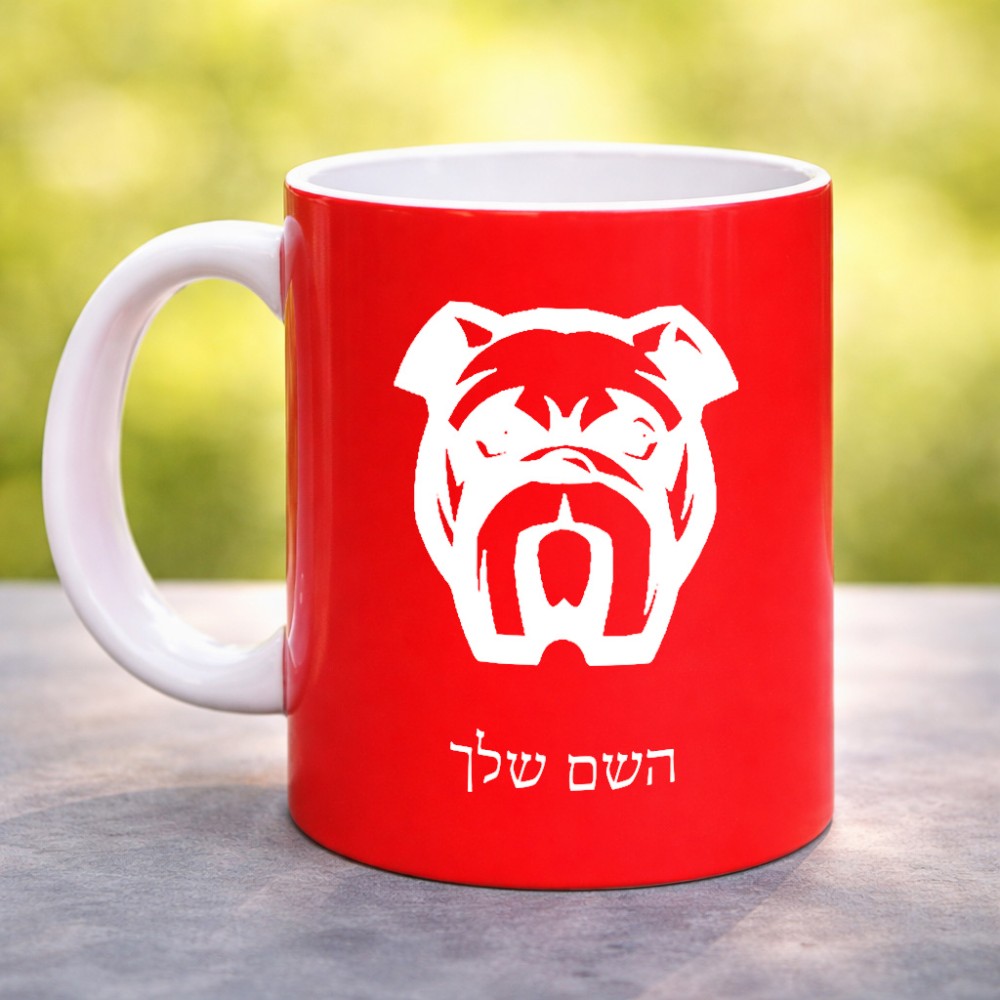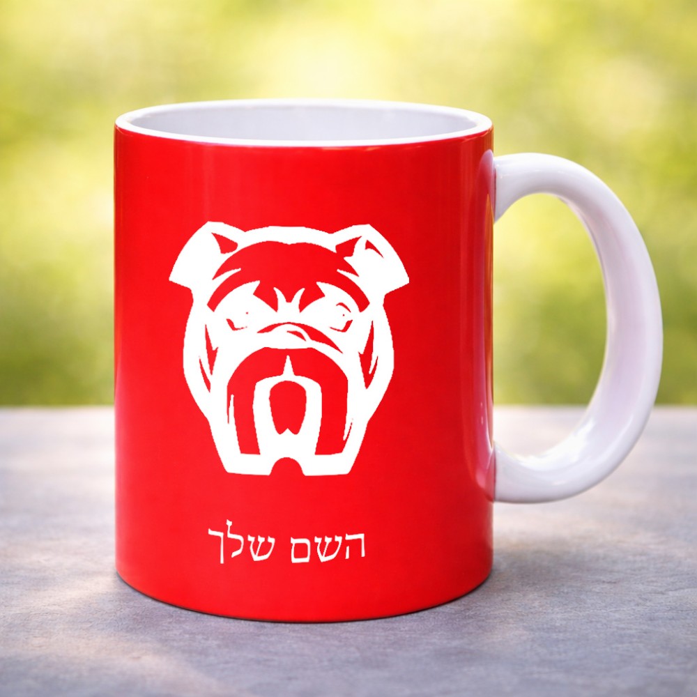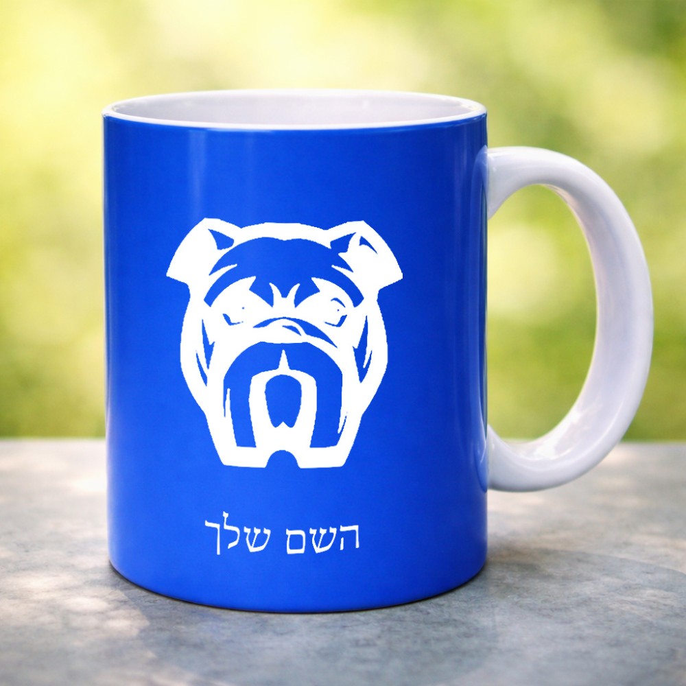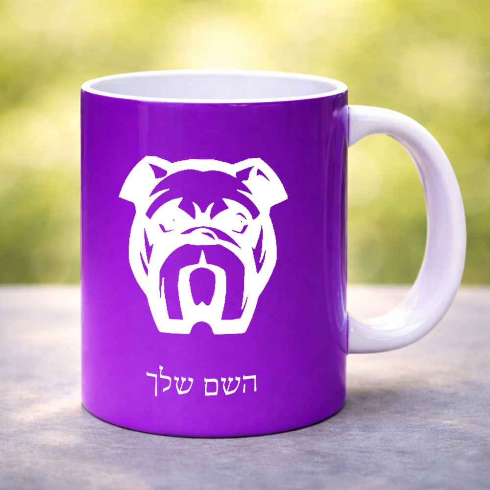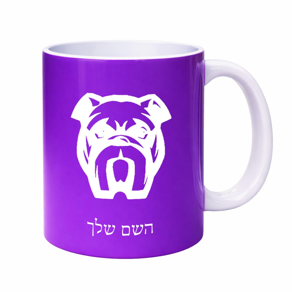 ספל תה \ קפה בעיצוב אישי עם השם שלך בעיצוב פרצוף בולדוג גדול הספל 325 מ"ל, הספל בעלת ידית לאחיזה יציבה. את השם המבוקש ניתן לציין בהזמנה, אם לא צויין אנחנו ניצור קשר לבירור.