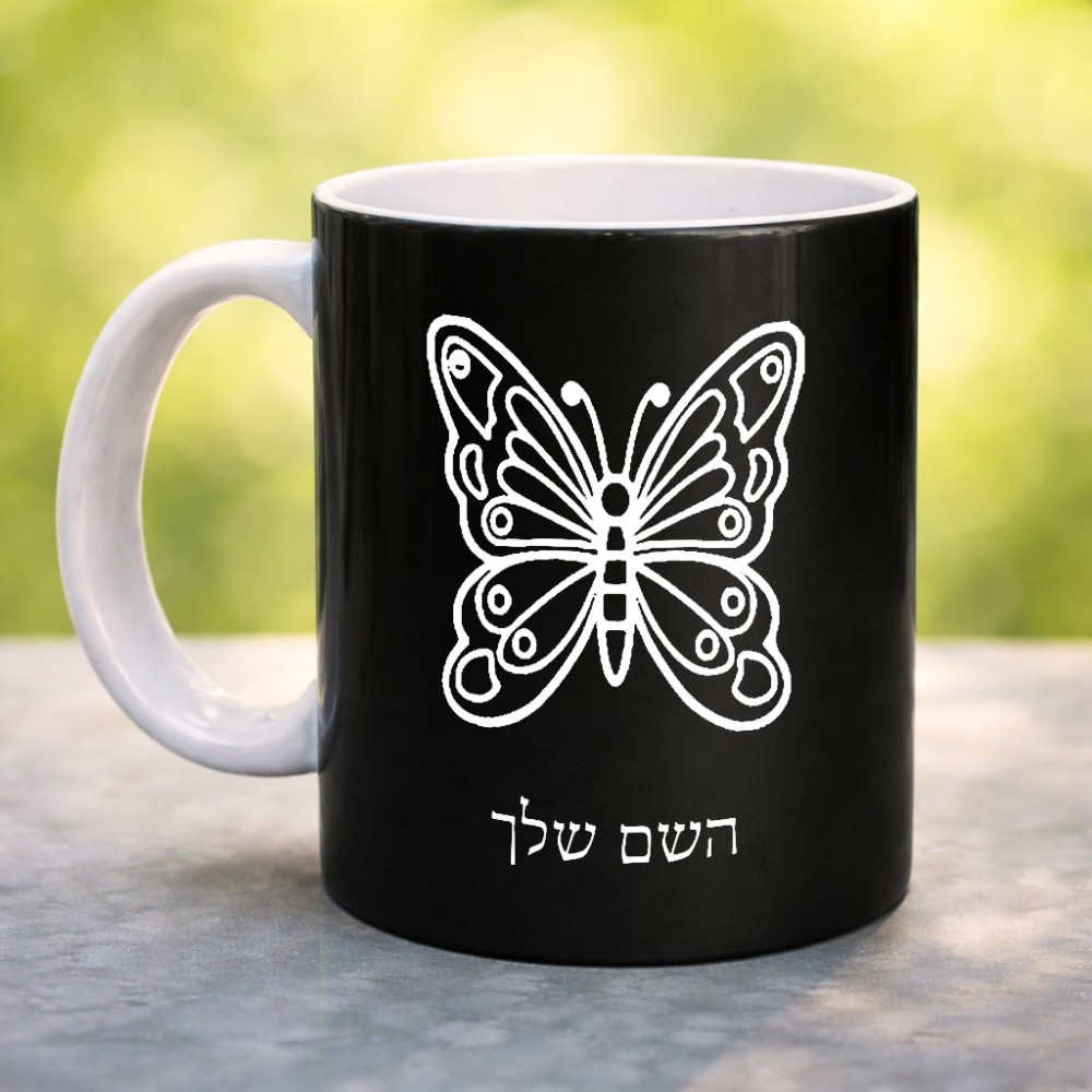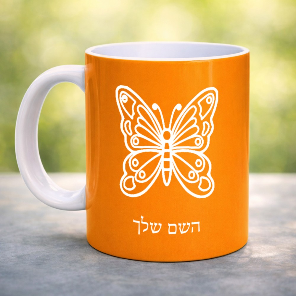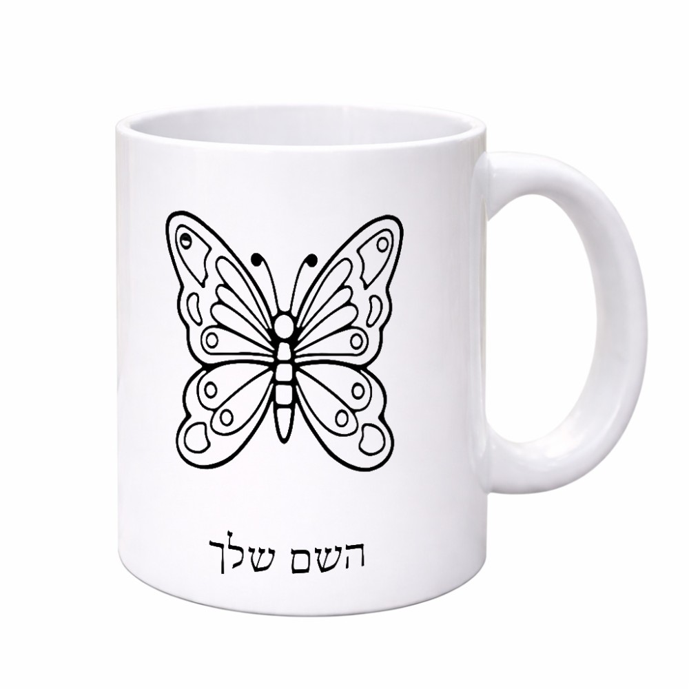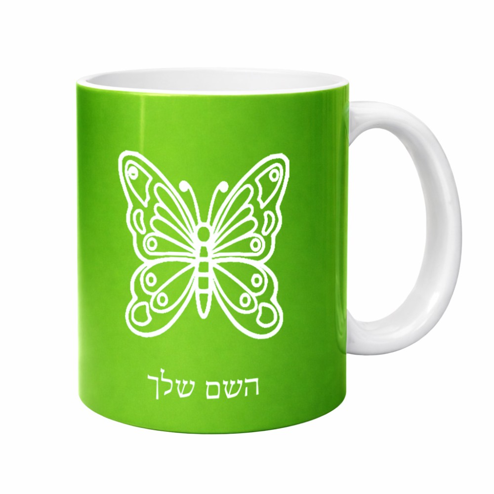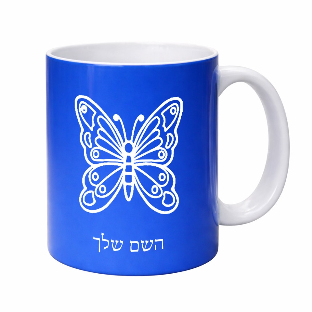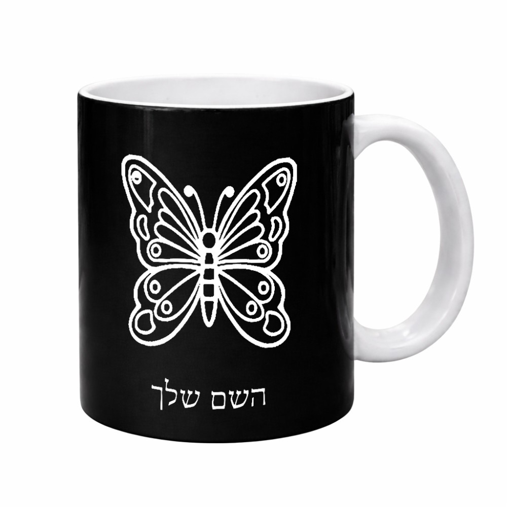 ספל תה \ קפה בעיצוב אישי עם השם שלך בעיצוב פרפר גדול הספל 325 מ"ל, הספל בעלת ידית לאחיזה יציבה. את השם המבוקש ניתן לציין בהזמנה, אם לא צויין אנחנו ניצור קשר לבירור.