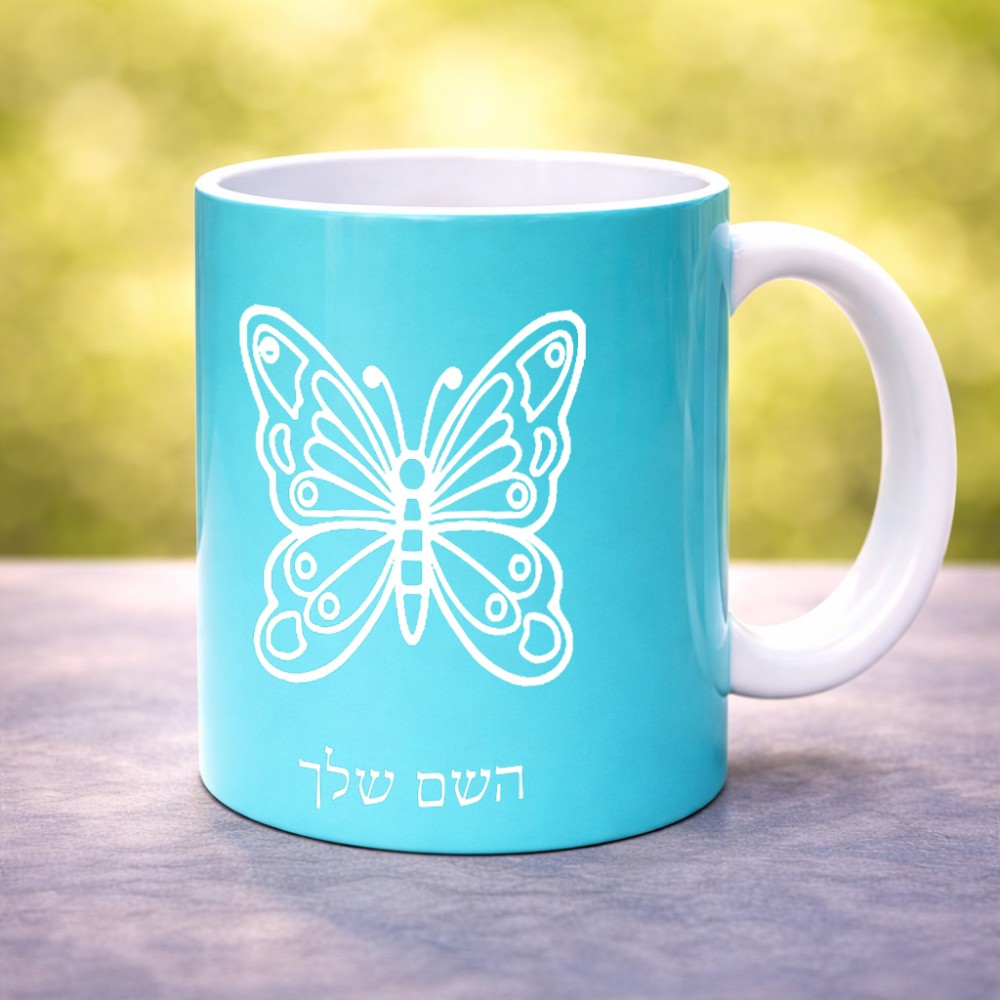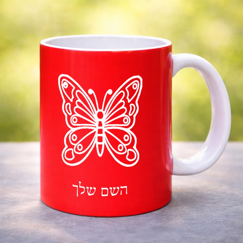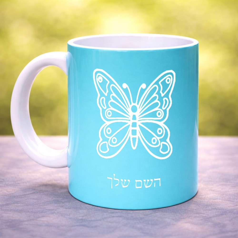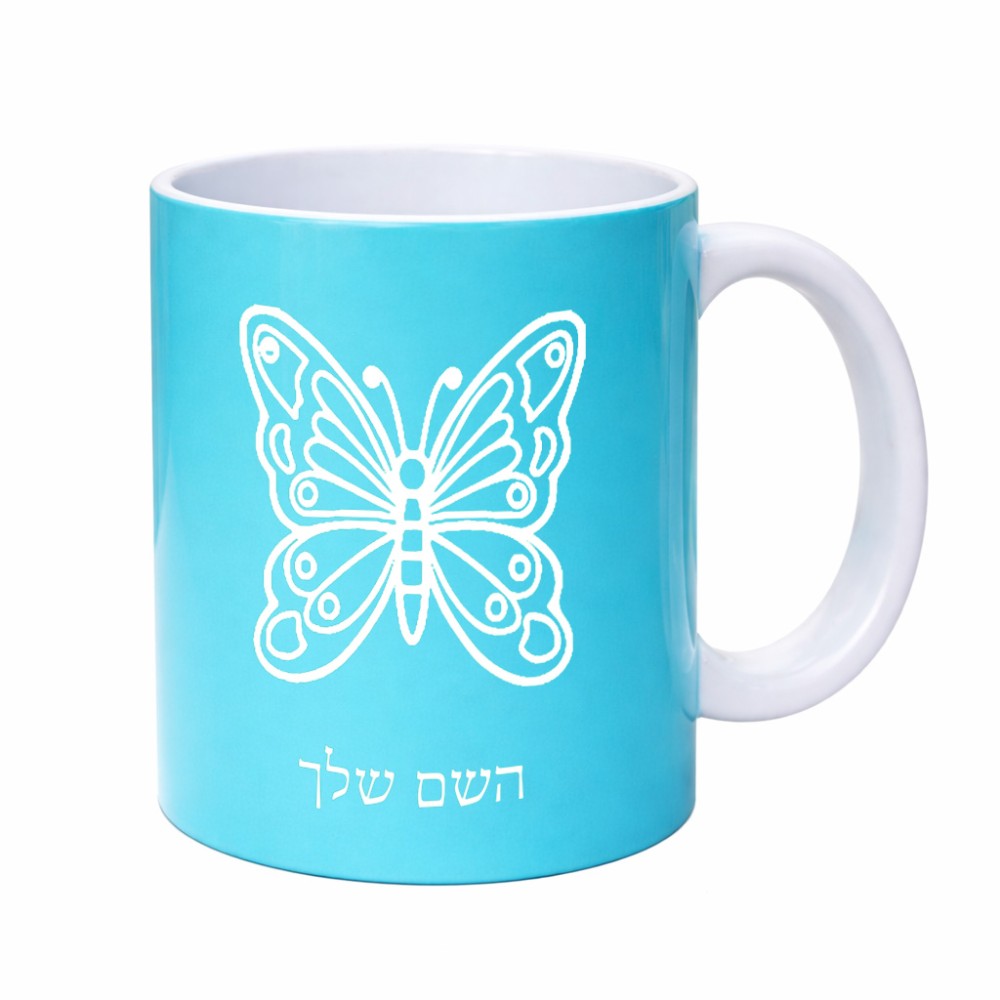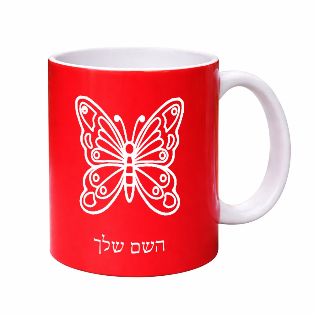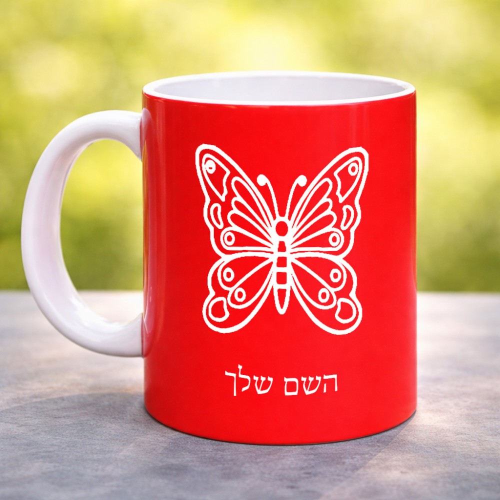 ספל תה \ קפה בעיצוב אישי עם השם שלך בעיצוב פרפר גדול הספל 325 מ"ל, הספל בעלת ידית לאחיזה יציבה. את השם המבוקש ניתן לציין בהזמנה, אם לא צויין אנחנו ניצור קשר לבירור.