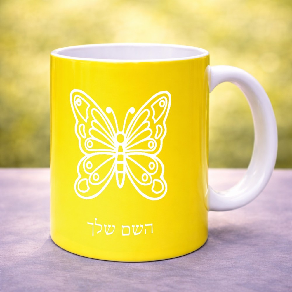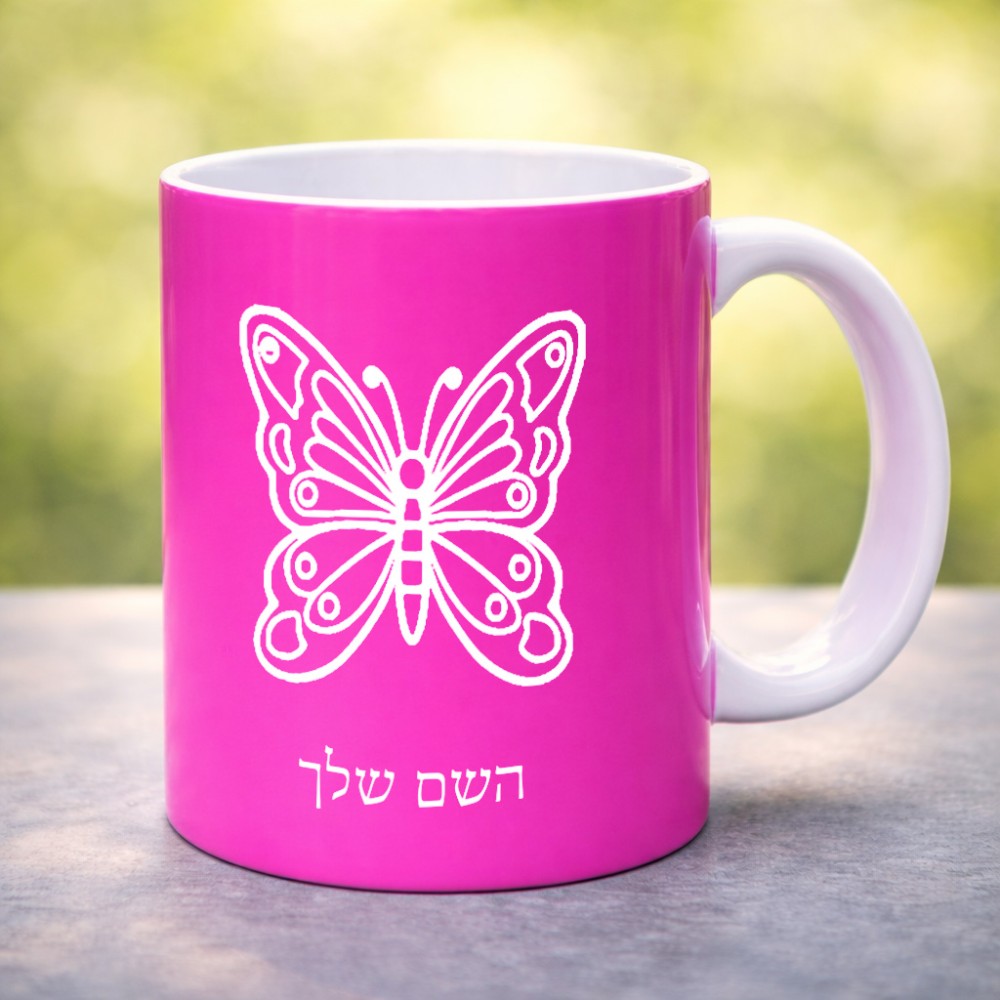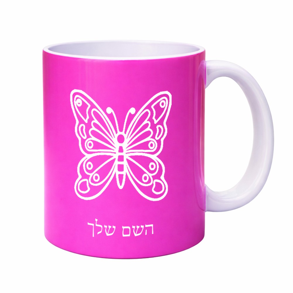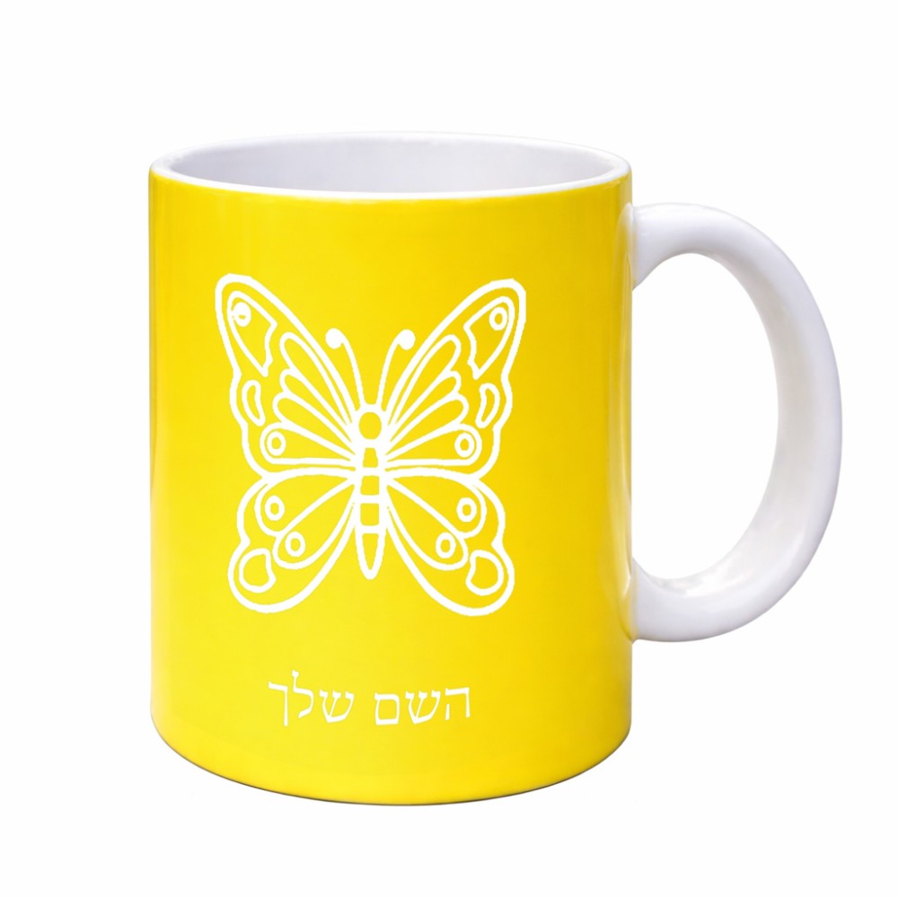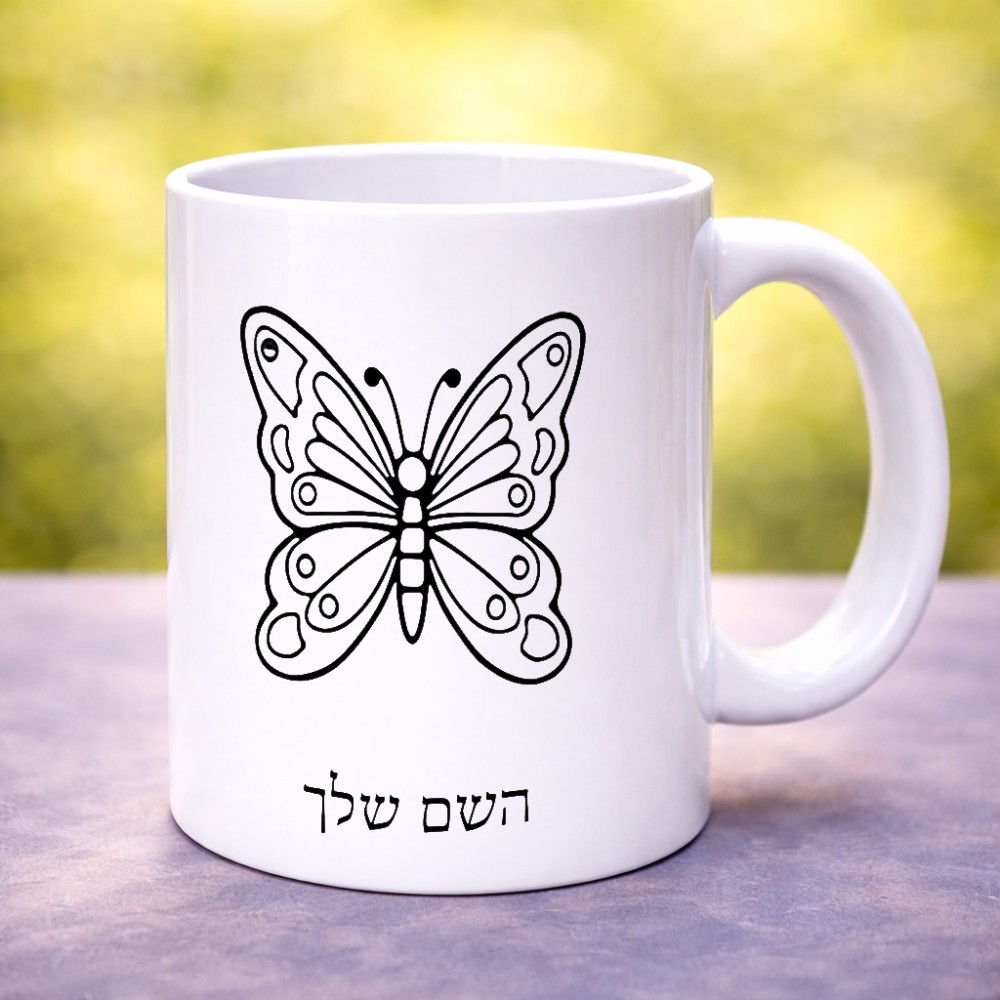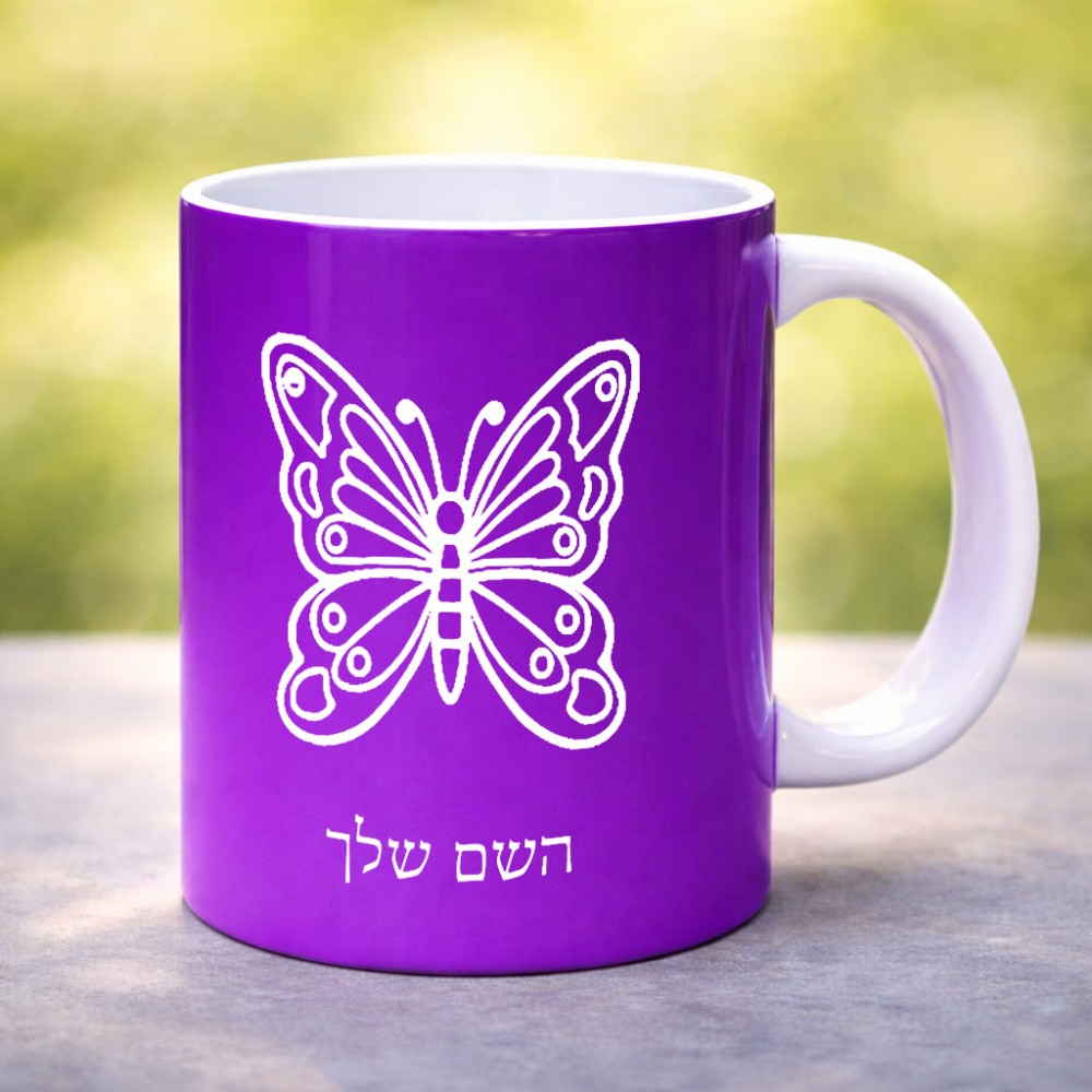 ספל תה \ קפה בעיצוב אישי עם השם שלך בעיצוב פרפר גדול הספל 325 מ"ל, הספל בעלת ידית לאחיזה יציבה. את השם המבוקש ניתן לציין בהזמנה, אם לא צויין אנחנו ניצור קשר לבירור.