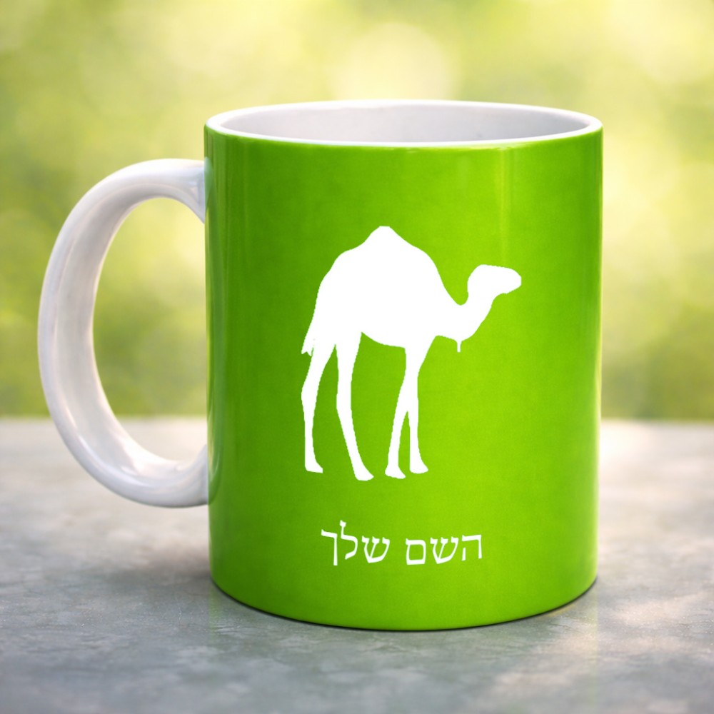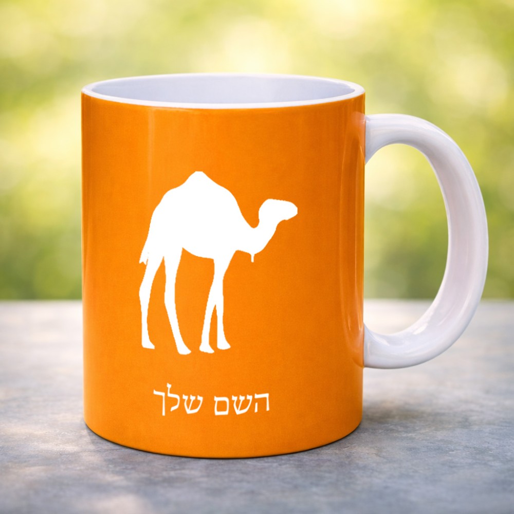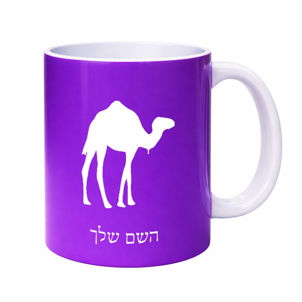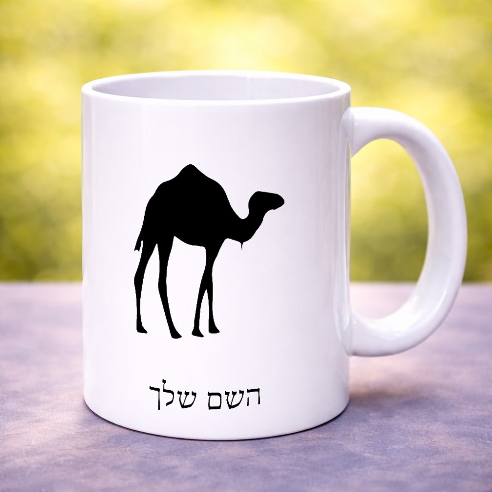 ספל תה \ קפה בעיצוב אישי עם השם שלך בעיצוב גמל גדול הספל 325 מ"ל, הספל בעלת ידית לאחיזה יציבה. את השם המבוקש ניתן לציין בהזמנה, אם לא צויין אנחנו ניצור קשר לבירור.