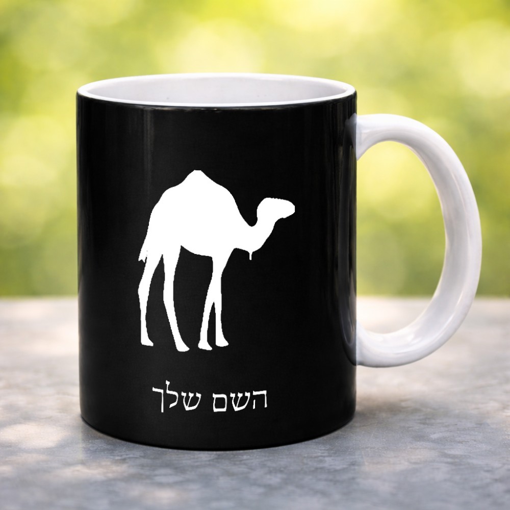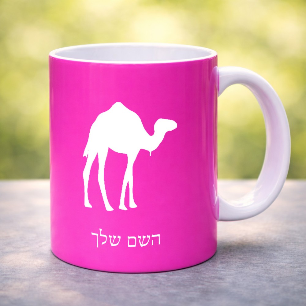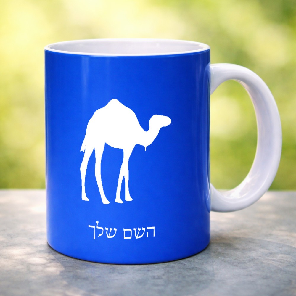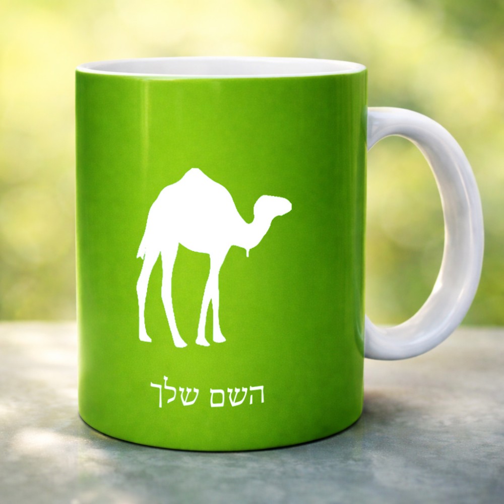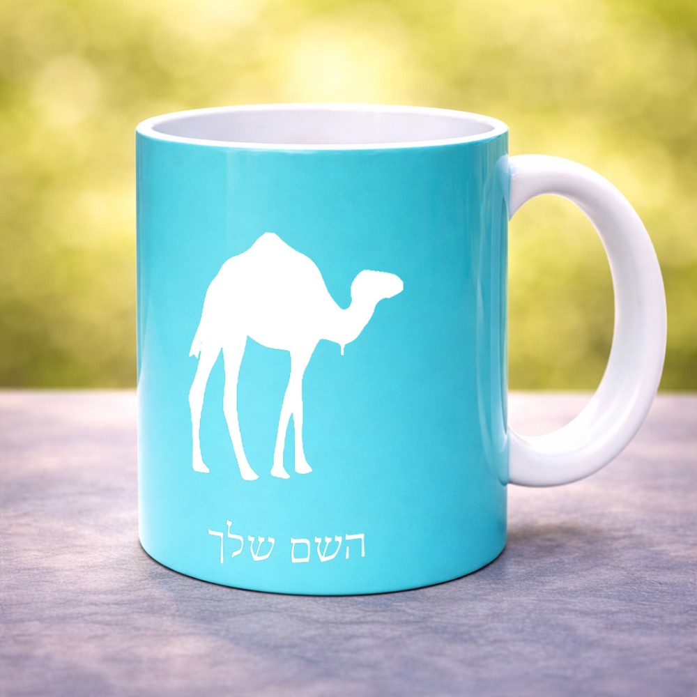 ספל תה \ קפה בעיצוב אישי עם השם שלך בעיצוב גמל גדול הספל 325 מ"ל, הספל בעלת ידית לאחיזה יציבה. את השם המבוקש ניתן לציין בהזמנה, אם לא צויין אנחנו ניצור קשר לבירור.