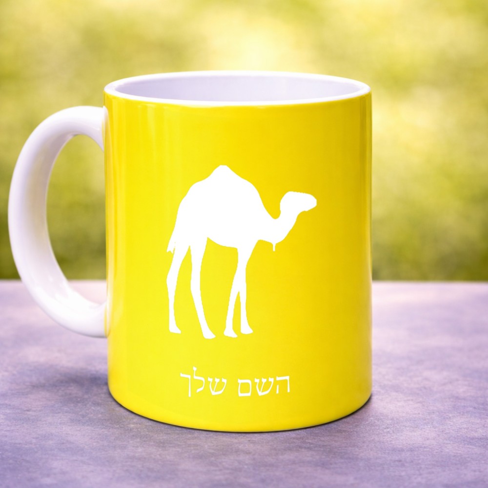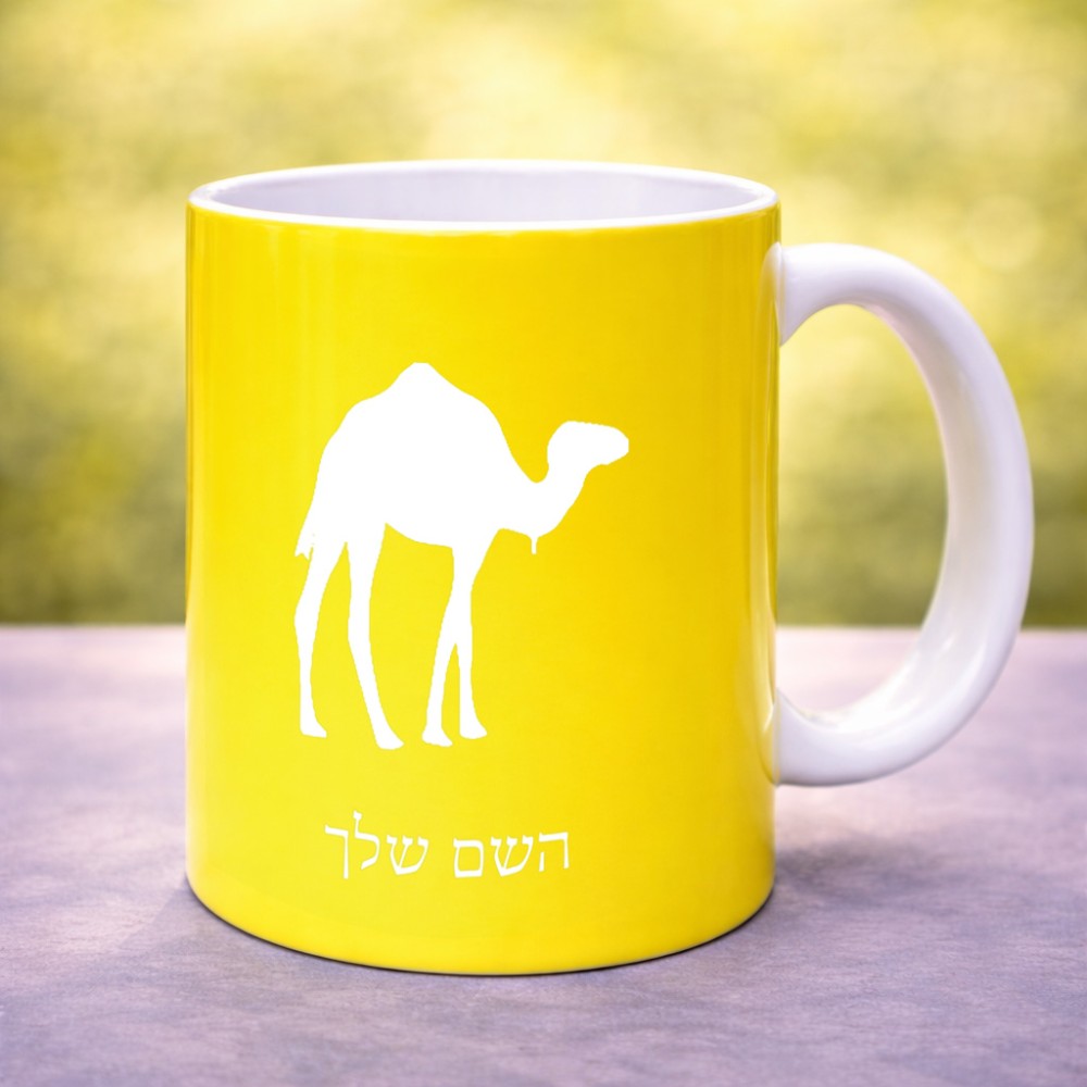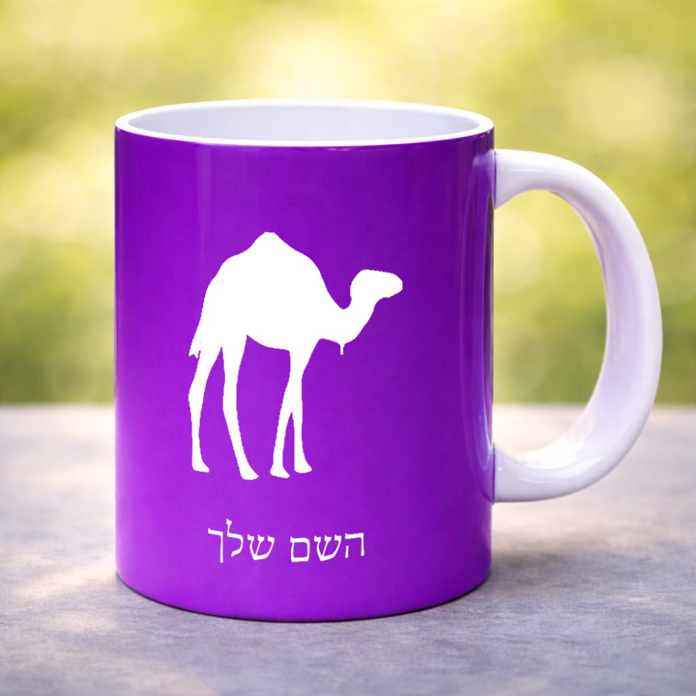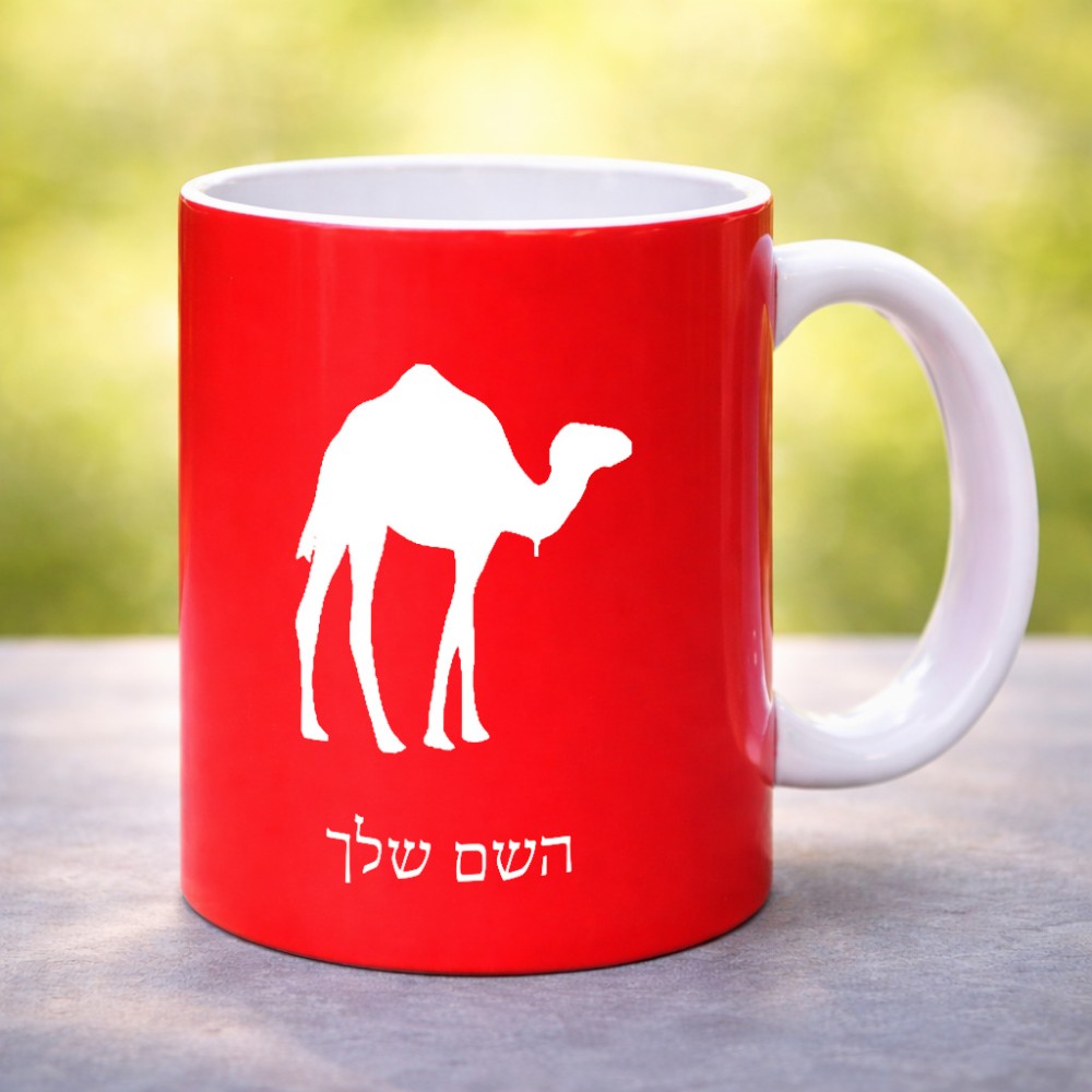 ספל תה \ קפה בעיצוב אישי עם השם שלך בעיצוב גמל גדול הספל 325 מ"ל, הספל בעלת ידית לאחיזה יציבה. את השם המבוקש ניתן לציין בהזמנה, אם לא צויין אנחנו ניצור קשר לבירור.