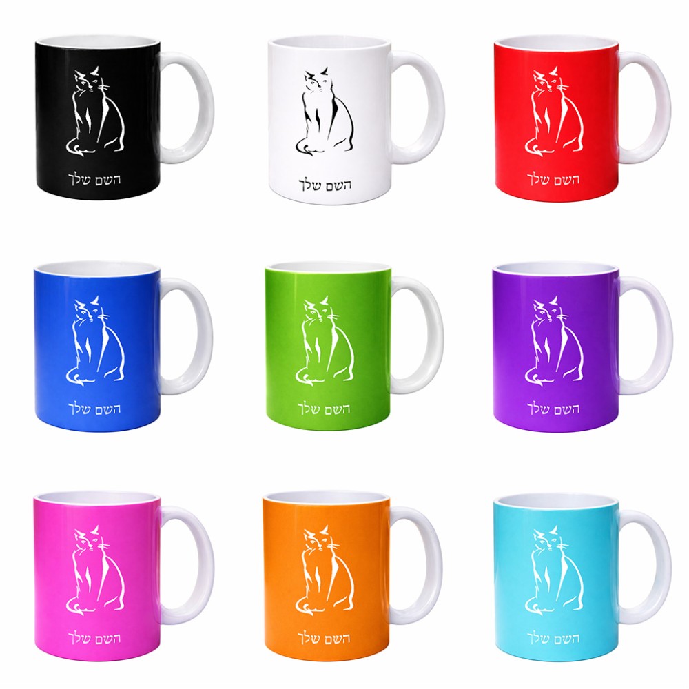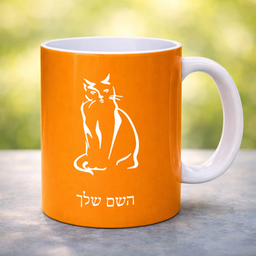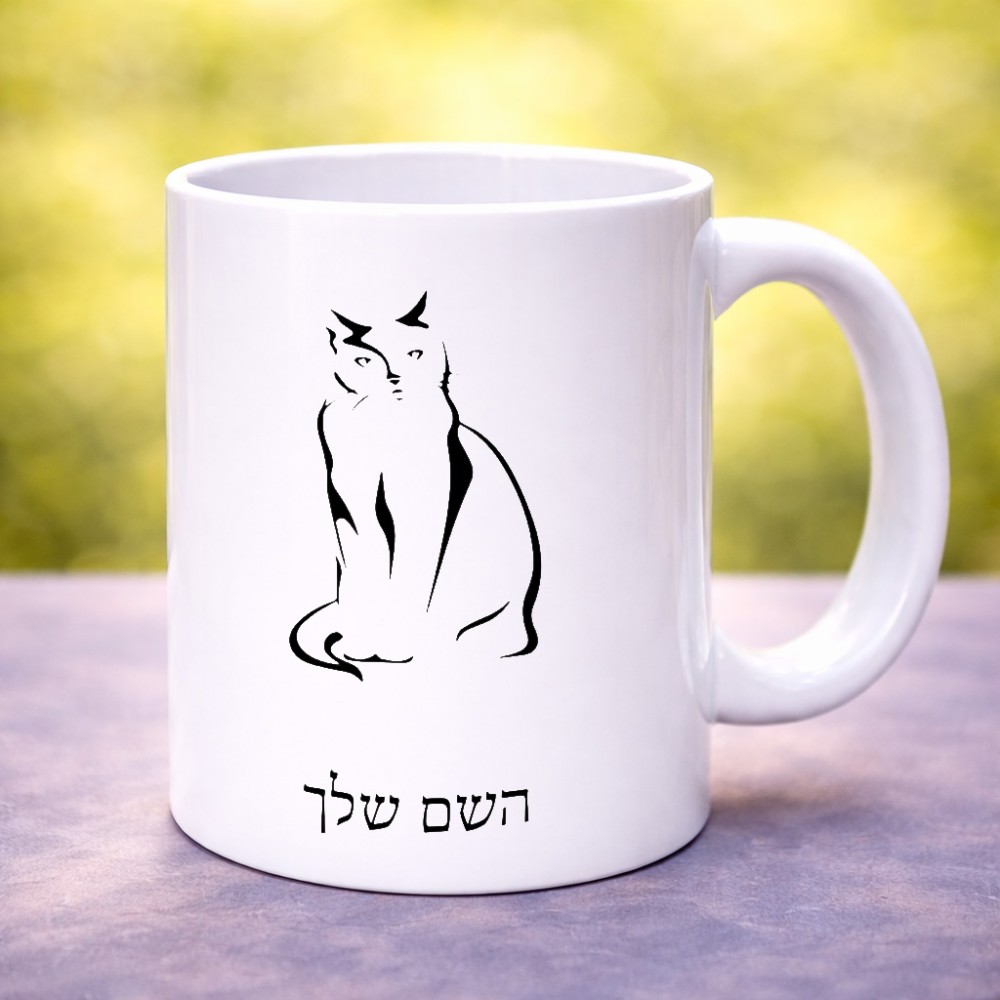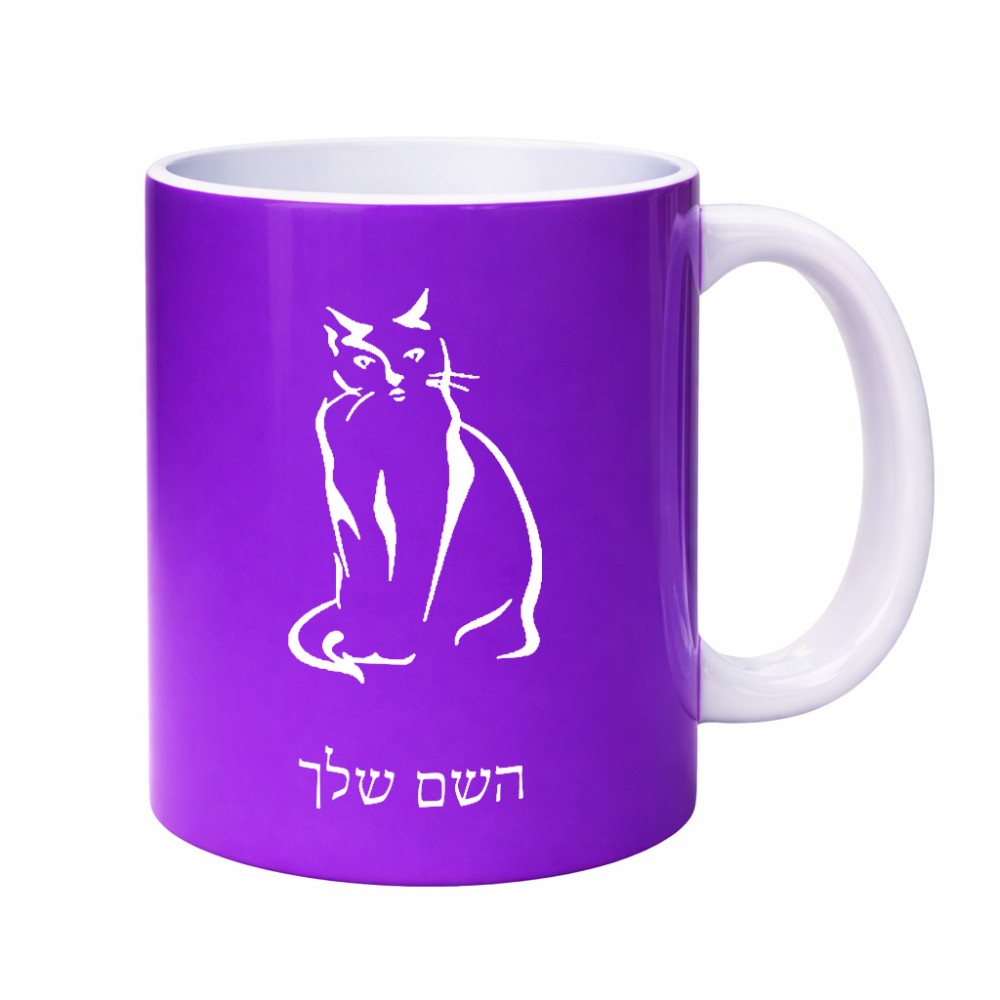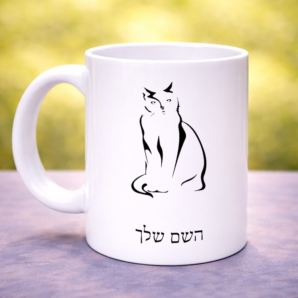 ספל תה \ קפה בעיצוב אישי עם השם שלך בעיצוב חתול גדול הספל 325 מ"ל, הספל בעלת ידית לאחיזה יציבה. את השם המבוקש ניתן לציין בהזמנה, אם לא צויין אנחנו ניצור קשר לבירור.