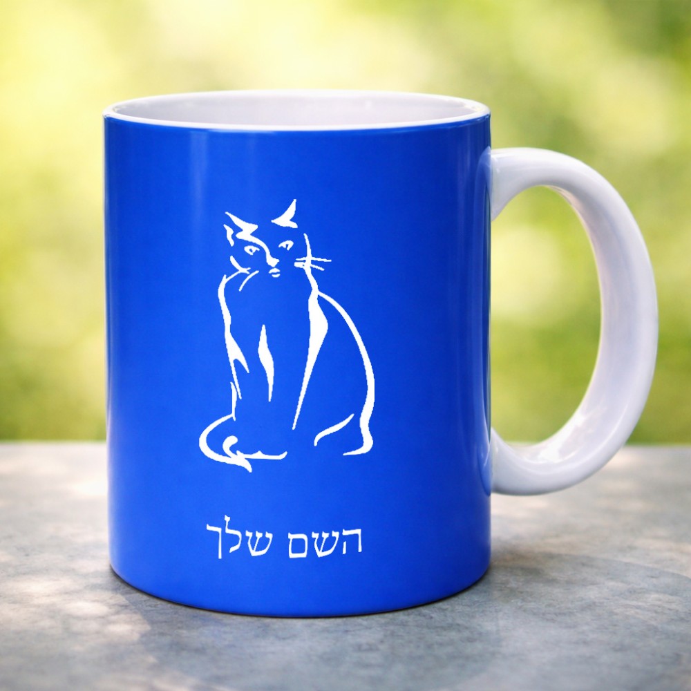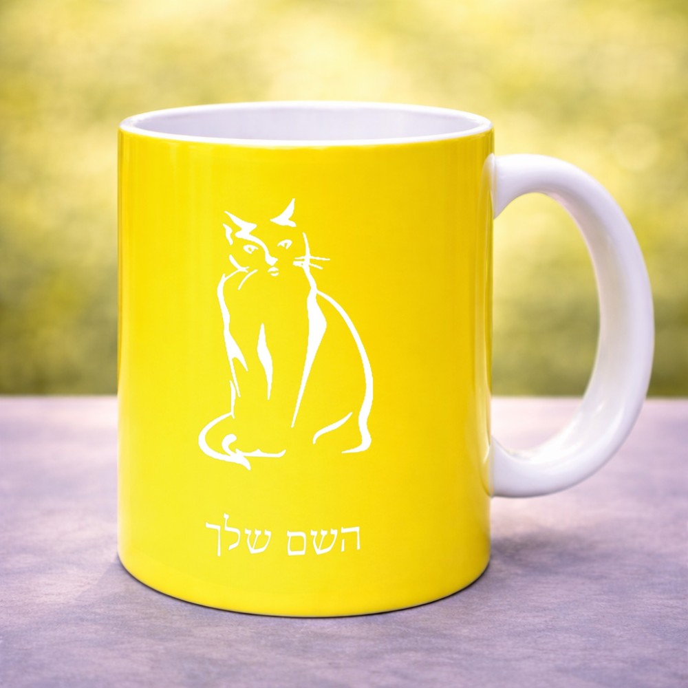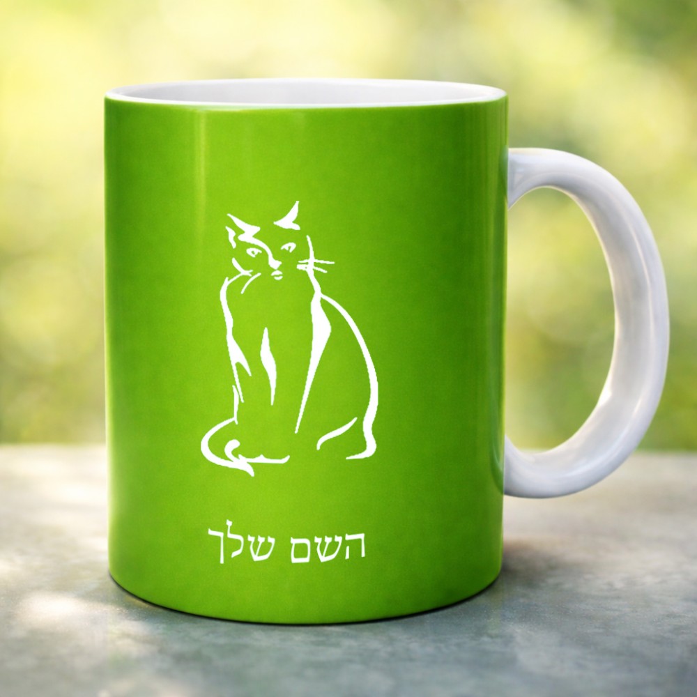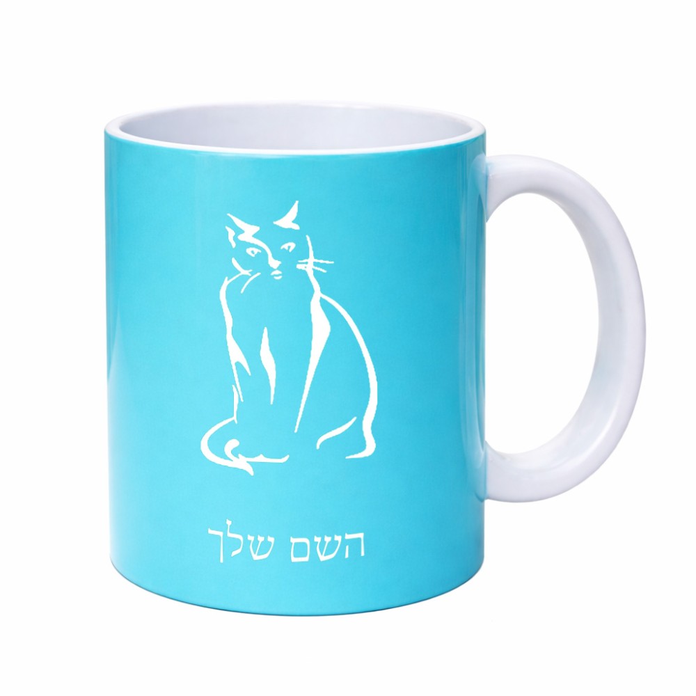 ספל תה \ קפה בעיצוב אישי עם השם שלך בעיצוב חתול גדול הספל 325 מ"ל, הספל בעלת ידית לאחיזה יציבה. את השם המבוקש ניתן לציין בהזמנה, אם לא צויין אנחנו ניצור קשר לבירור.