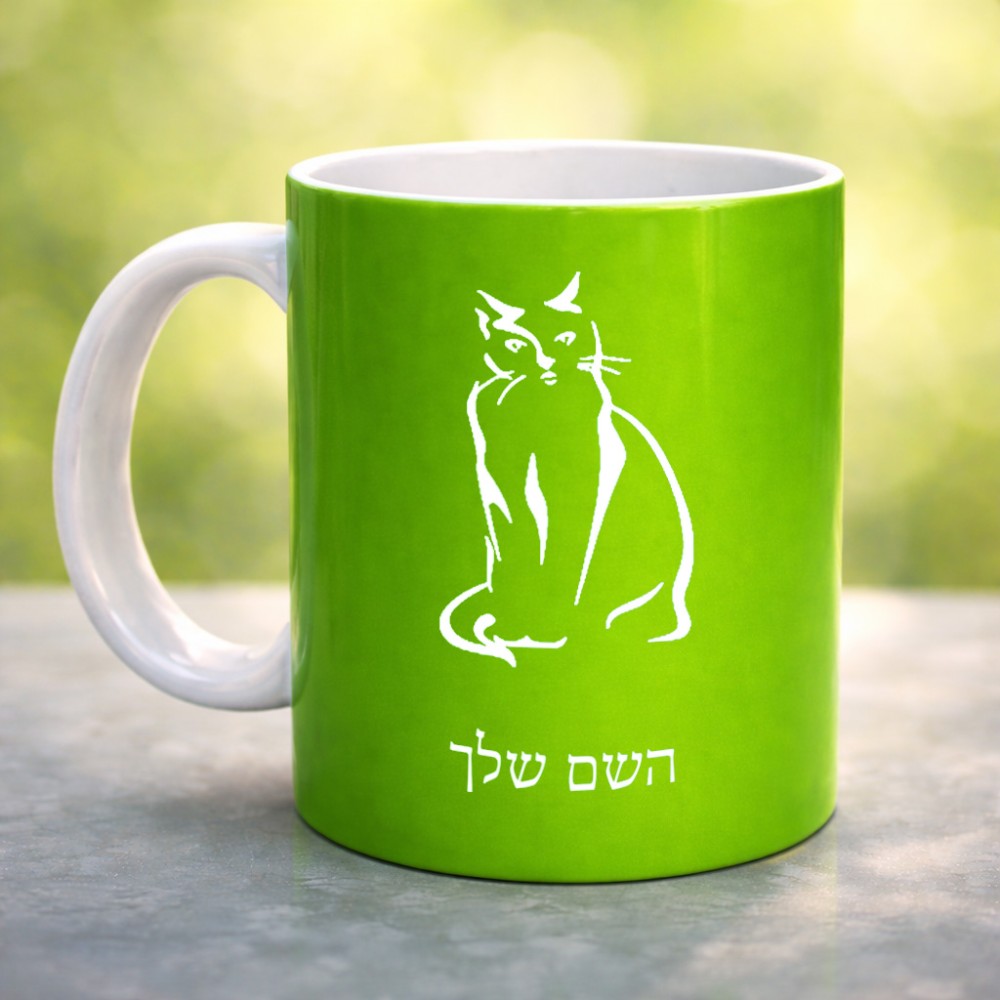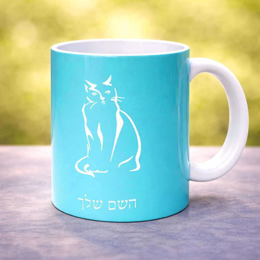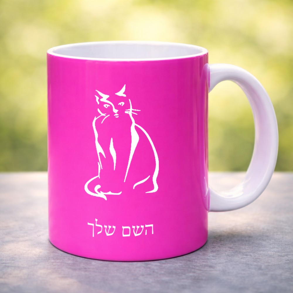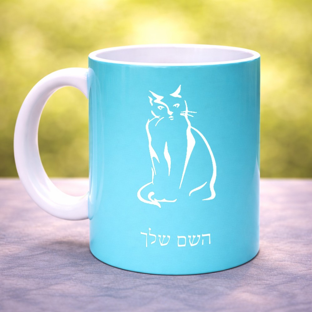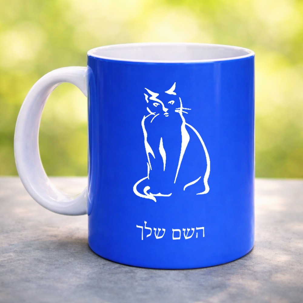 ספל תה \ קפה בעיצוב אישי עם השם שלך בעיצוב חתול גדול הספל 325 מ"ל, הספל בעלת ידית לאחיזה יציבה. את השם המבוקש ניתן לציין בהזמנה, אם לא צויין אנחנו ניצור קשר לבירור.