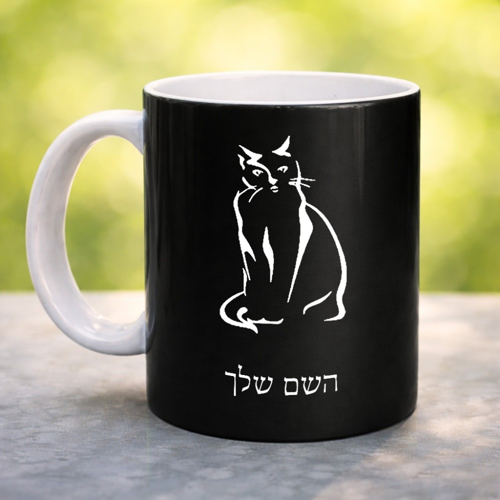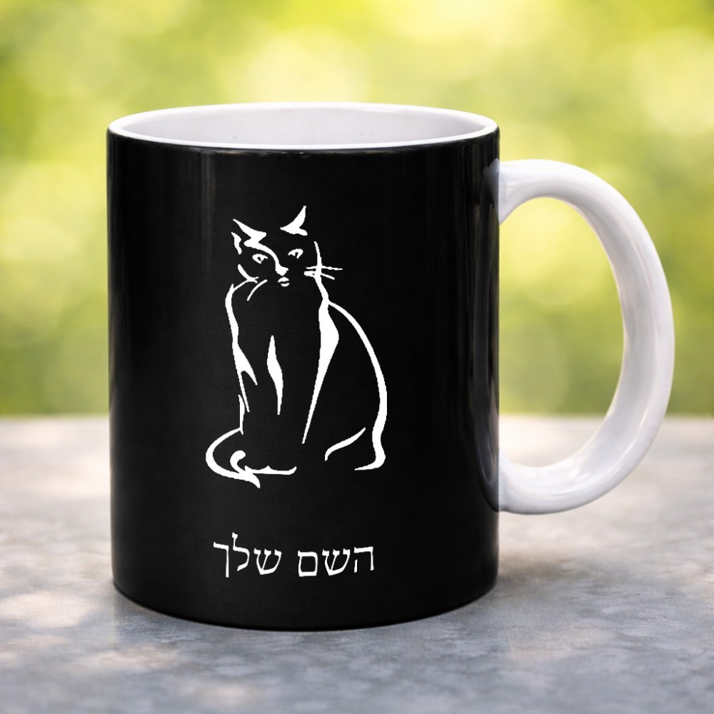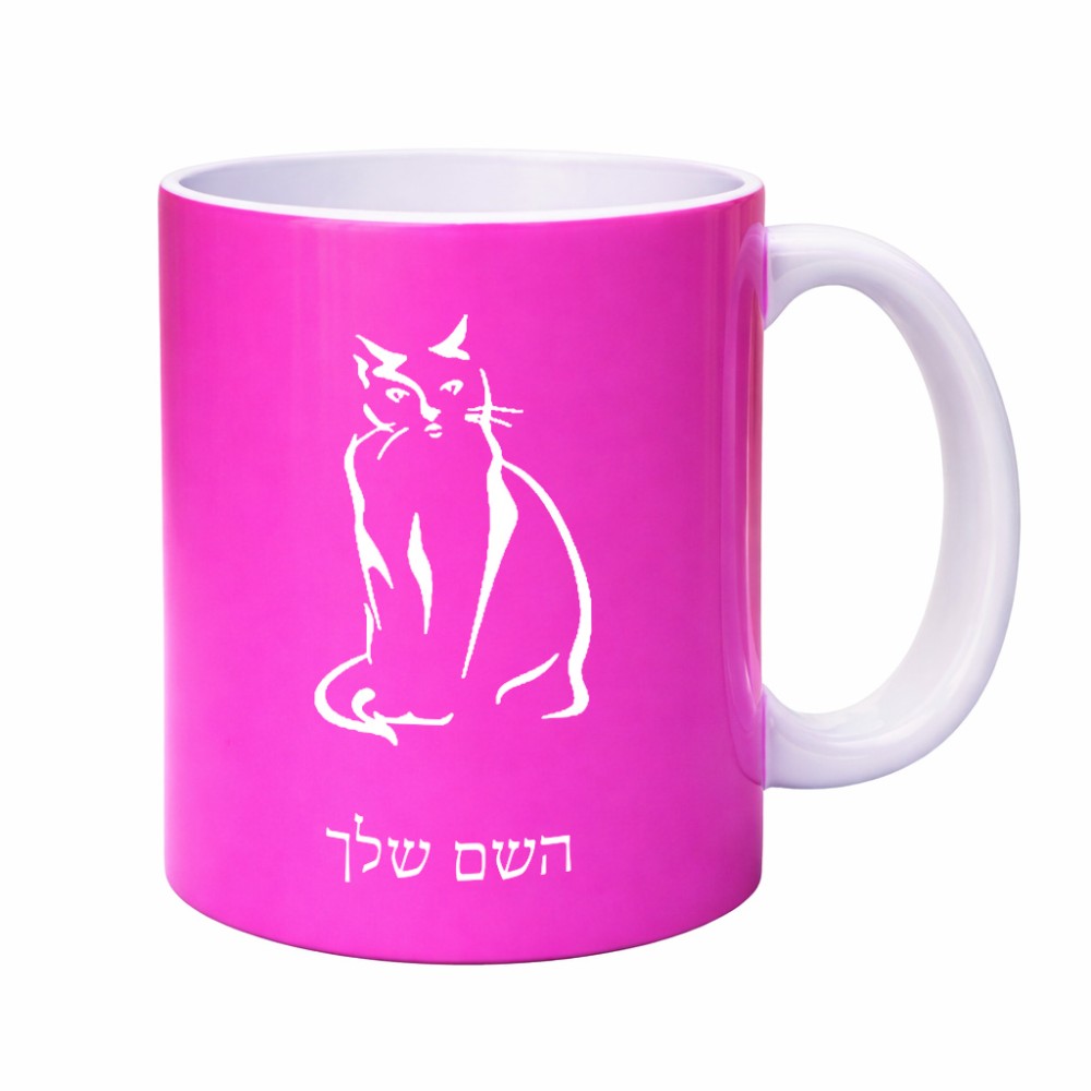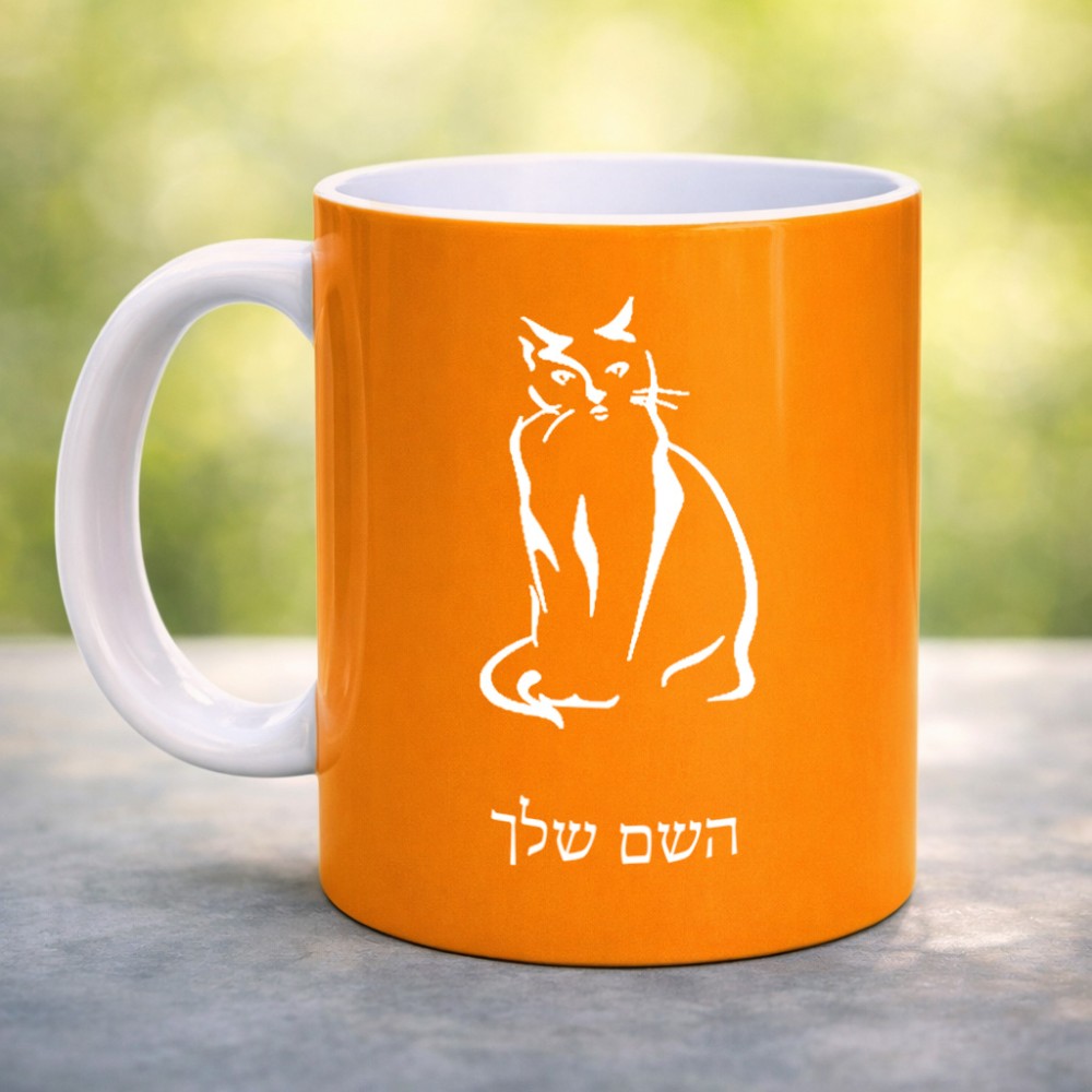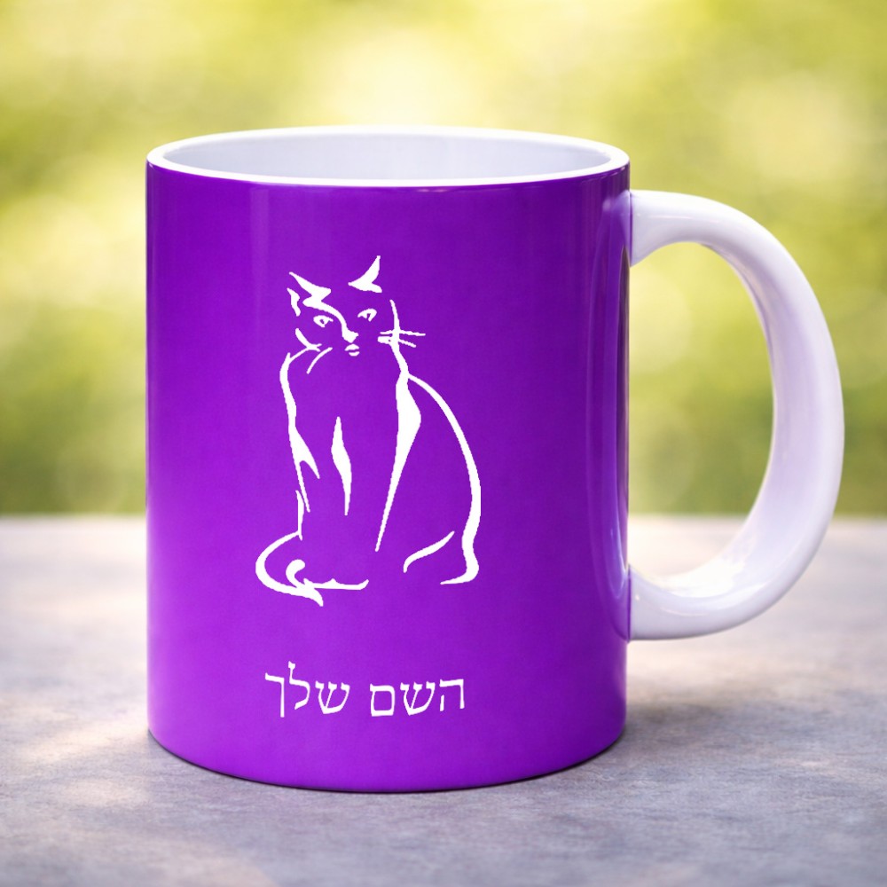 ספל תה \ קפה בעיצוב אישי עם השם שלך בעיצוב חתול גדול הספל 325 מ"ל, הספל בעלת ידית לאחיזה יציבה. את השם המבוקש ניתן לציין בהזמנה, אם לא צויין אנחנו ניצור קשר לבירור.