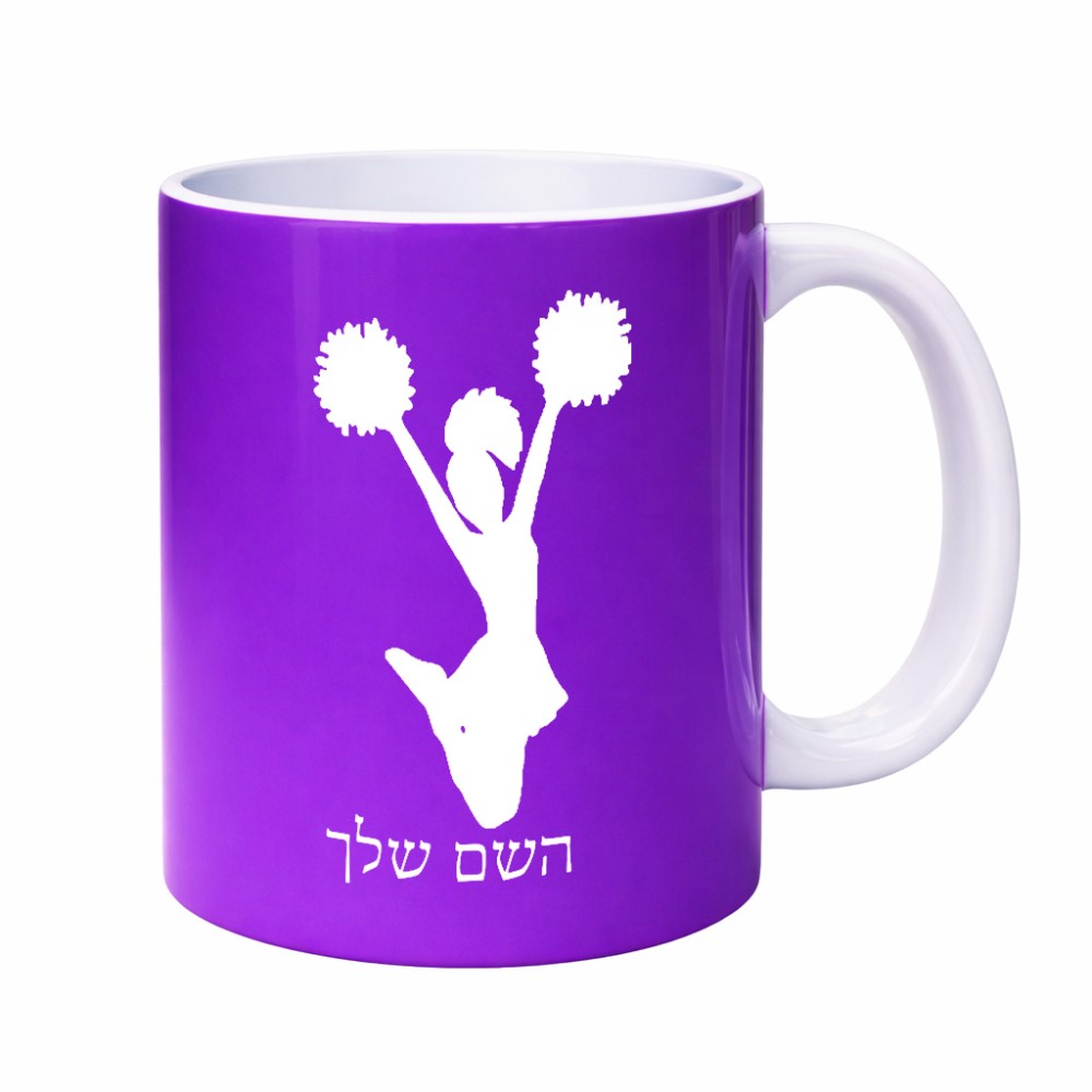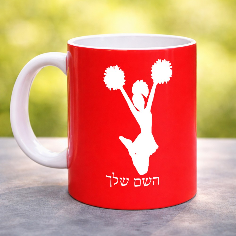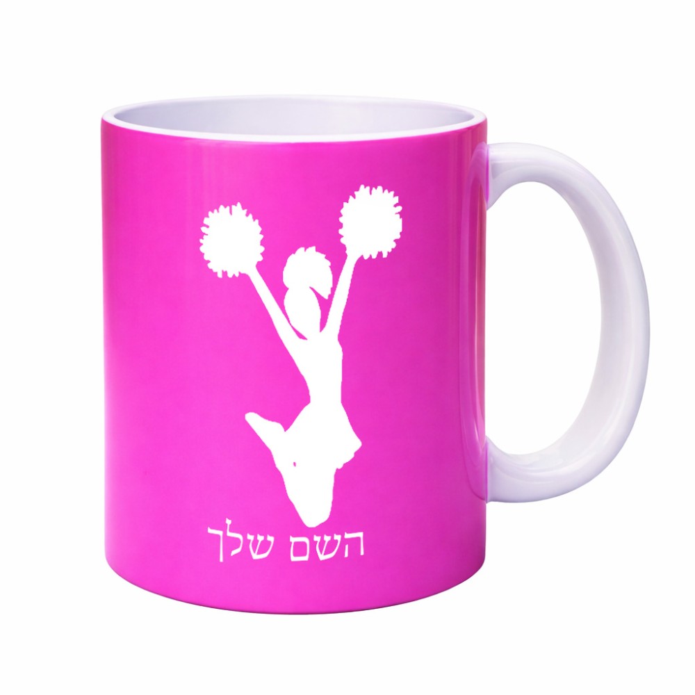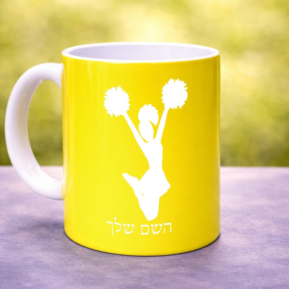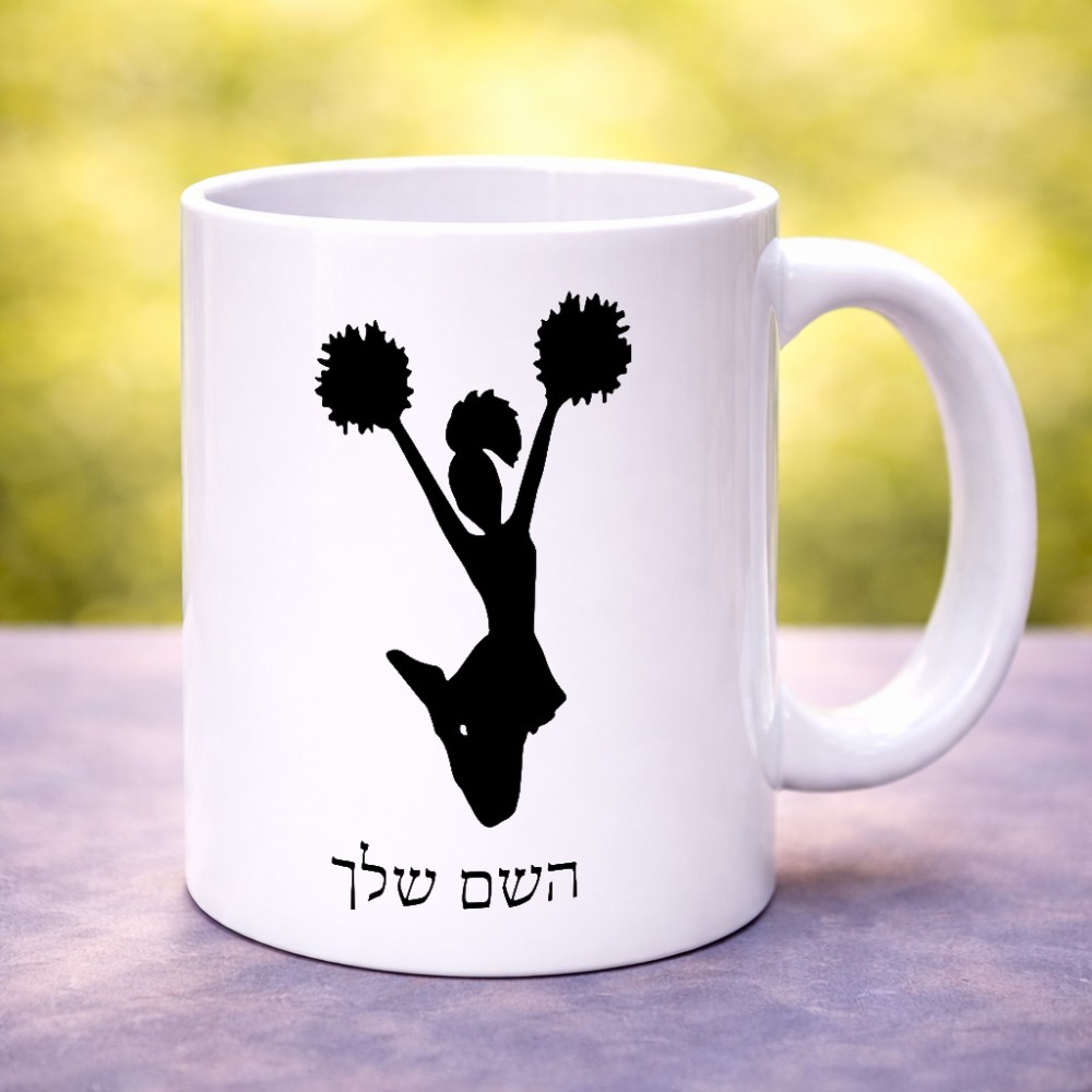 ספל תה \ קפה בעיצוב אישי עם השם שלך בעיצוב מעודדת גדול הספל 325 מ"ל, הספל בעלת ידית לאחיזה יציבה. את השם המבוקש ניתן לציין בהזמנה, אם לא צויין אנחנו ניצור קשר לבירור.