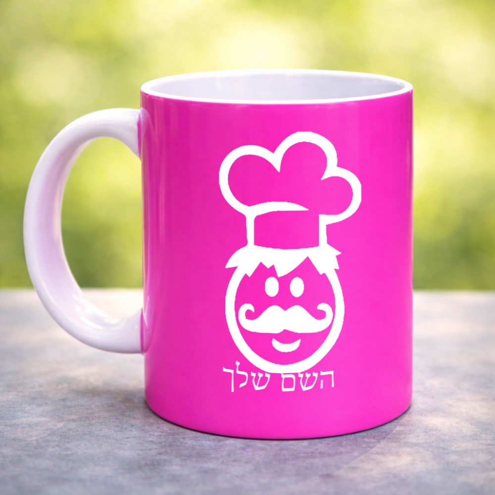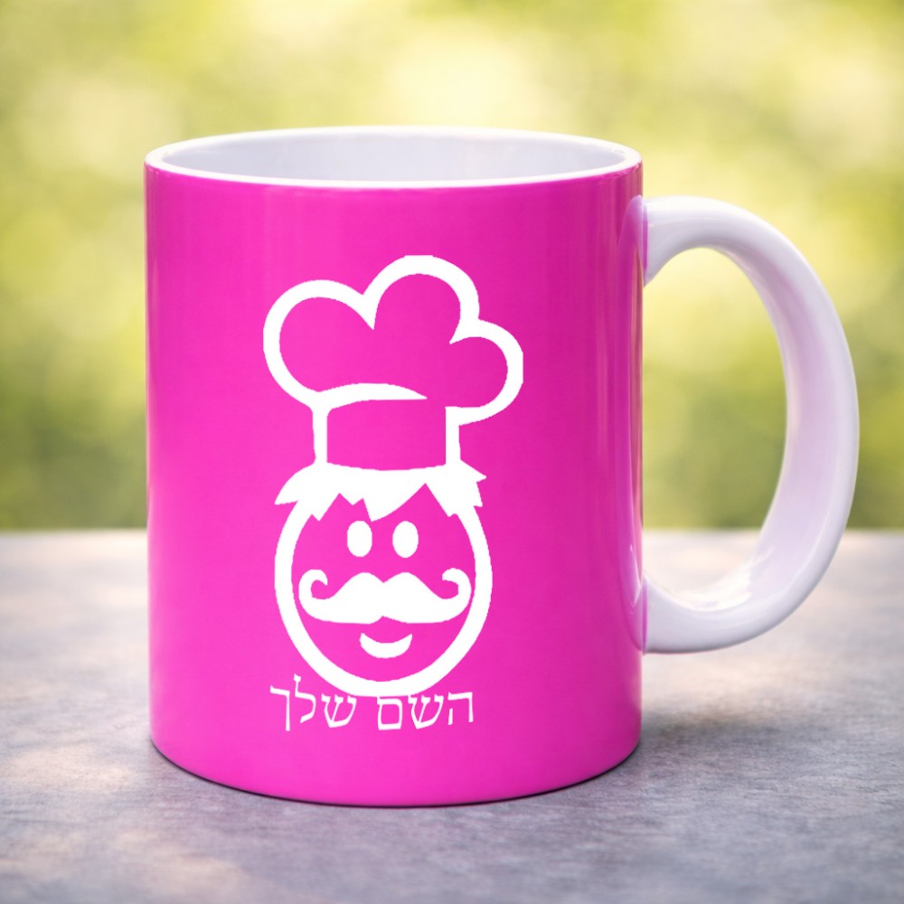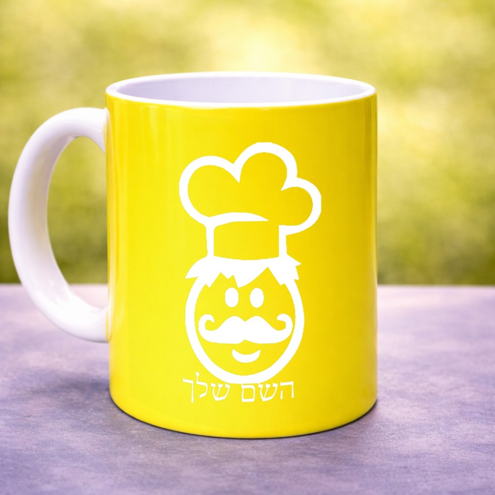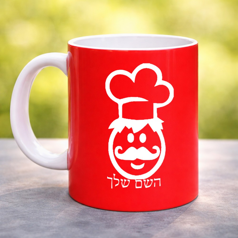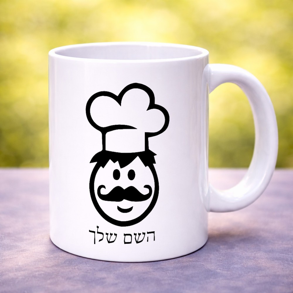 ספל תה \ קפה בעיצוב אישי עם השם שלך בעיצוב שף גדול הספל 325 מ"ל, הספל בעלת ידית לאחיזה יציבה. את השם המבוקש ניתן לציין בהזמנה, אם לא צויין אנחנו ניצור קשר לבירור.