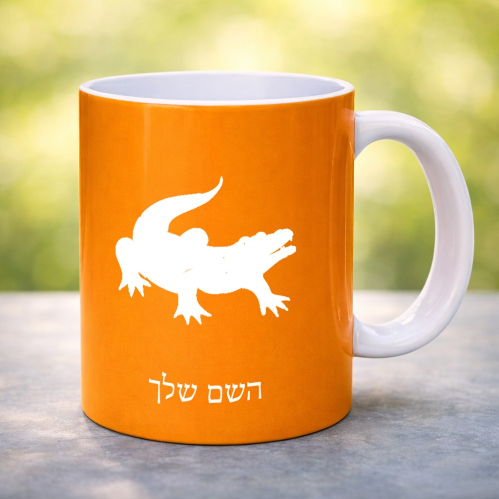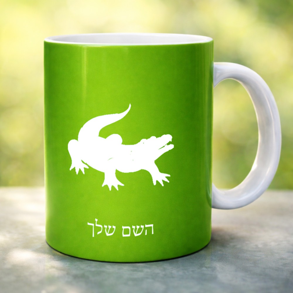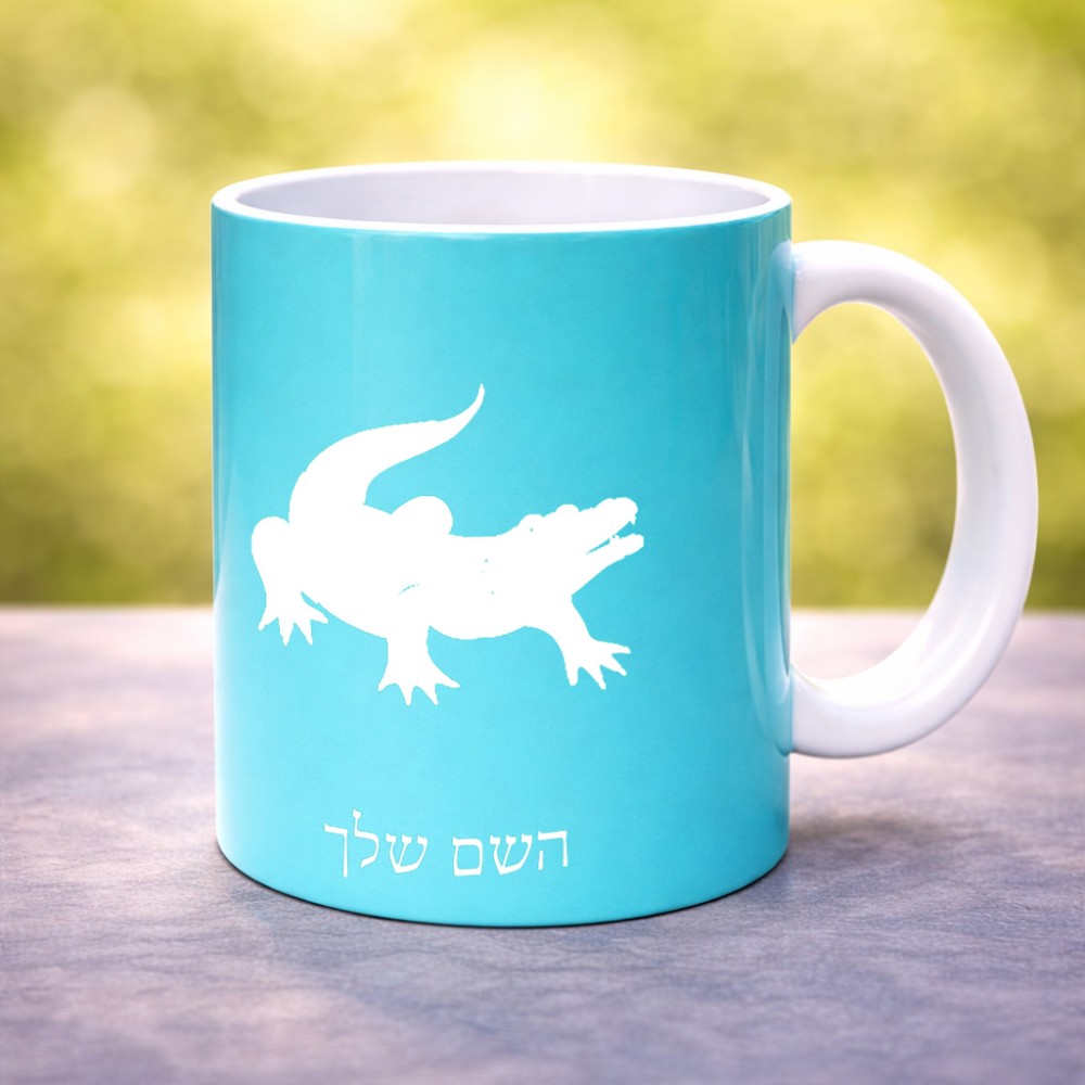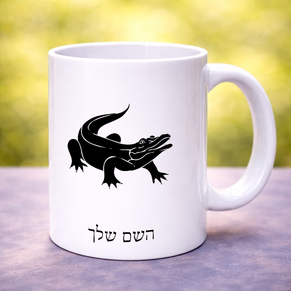 ספל תה \ קפה בעיצוב אישי עם השם שלך בעיצוב תנין גדול הספל 325 מ"ל, הספל בעלת ידית לאחיזה יציבה. את השם המבוקש ניתן לציין בהזמנה, אם לא צויין אנחנו ניצור קשר לבירור.