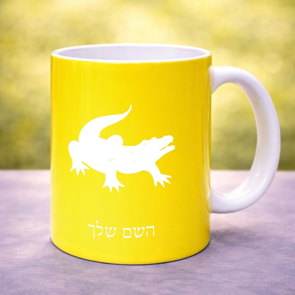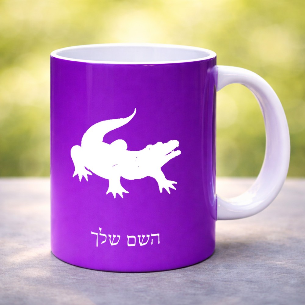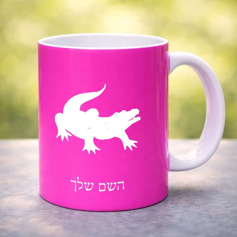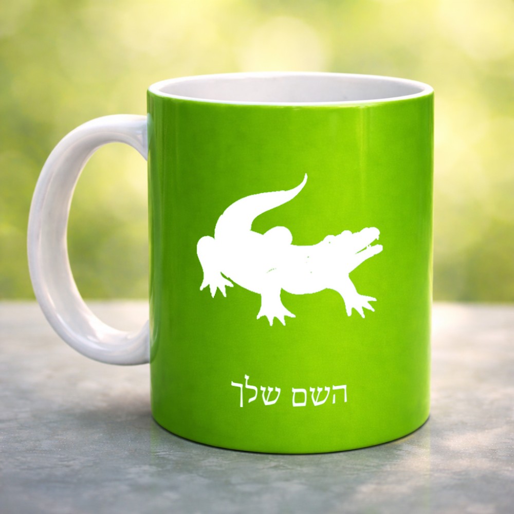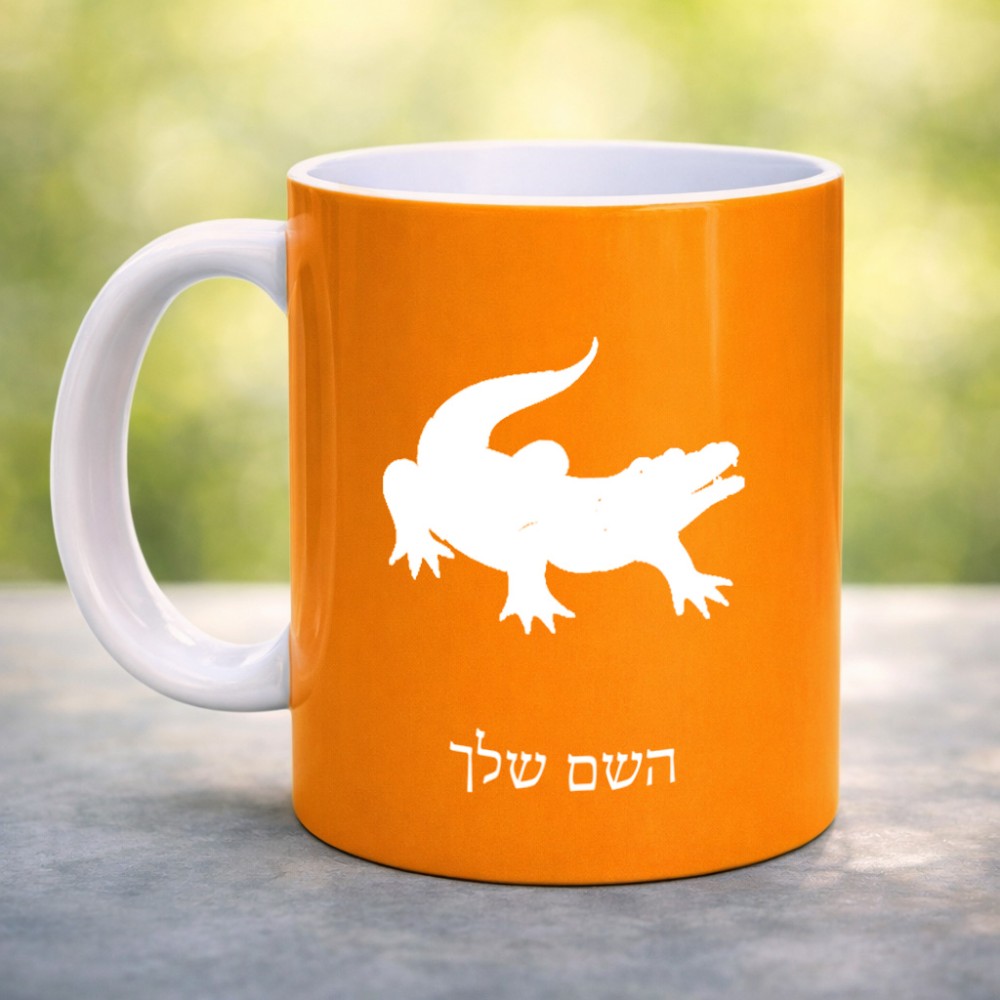 ספל תה \ קפה בעיצוב אישי עם השם שלך בעיצוב תנין גדול הספל 325 מ"ל, הספל בעלת ידית לאחיזה יציבה. את השם המבוקש ניתן לציין בהזמנה, אם לא צויין אנחנו ניצור קשר לבירור.