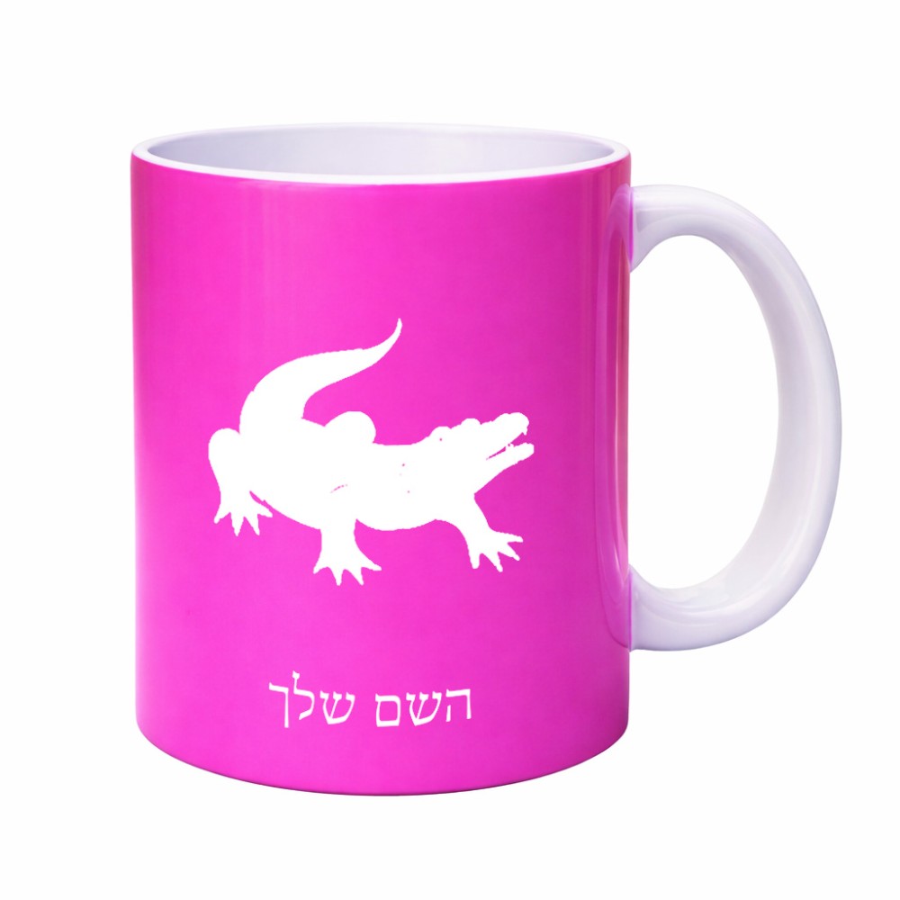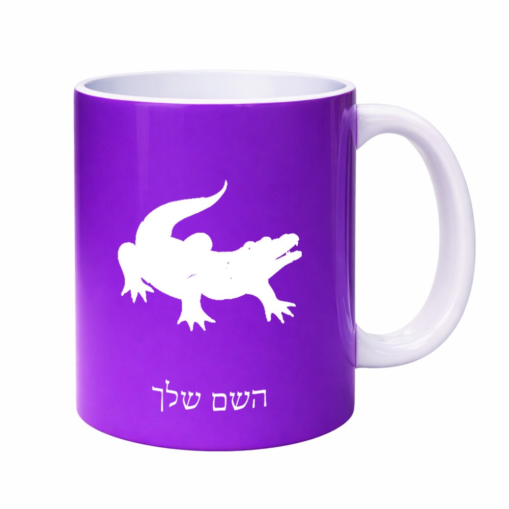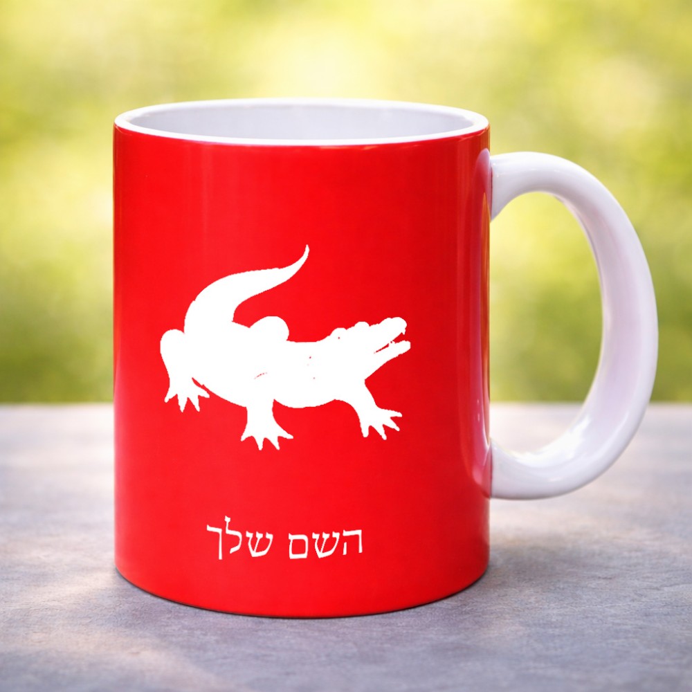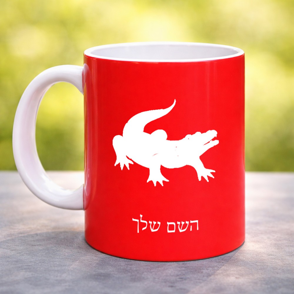 ספל תה \ קפה בעיצוב אישי עם השם שלך בעיצוב תנין גדול הספל 325 מ"ל, הספל בעלת ידית לאחיזה יציבה. את השם המבוקש ניתן לציין בהזמנה, אם לא צויין אנחנו ניצור קשר לבירור.