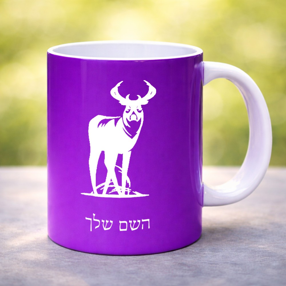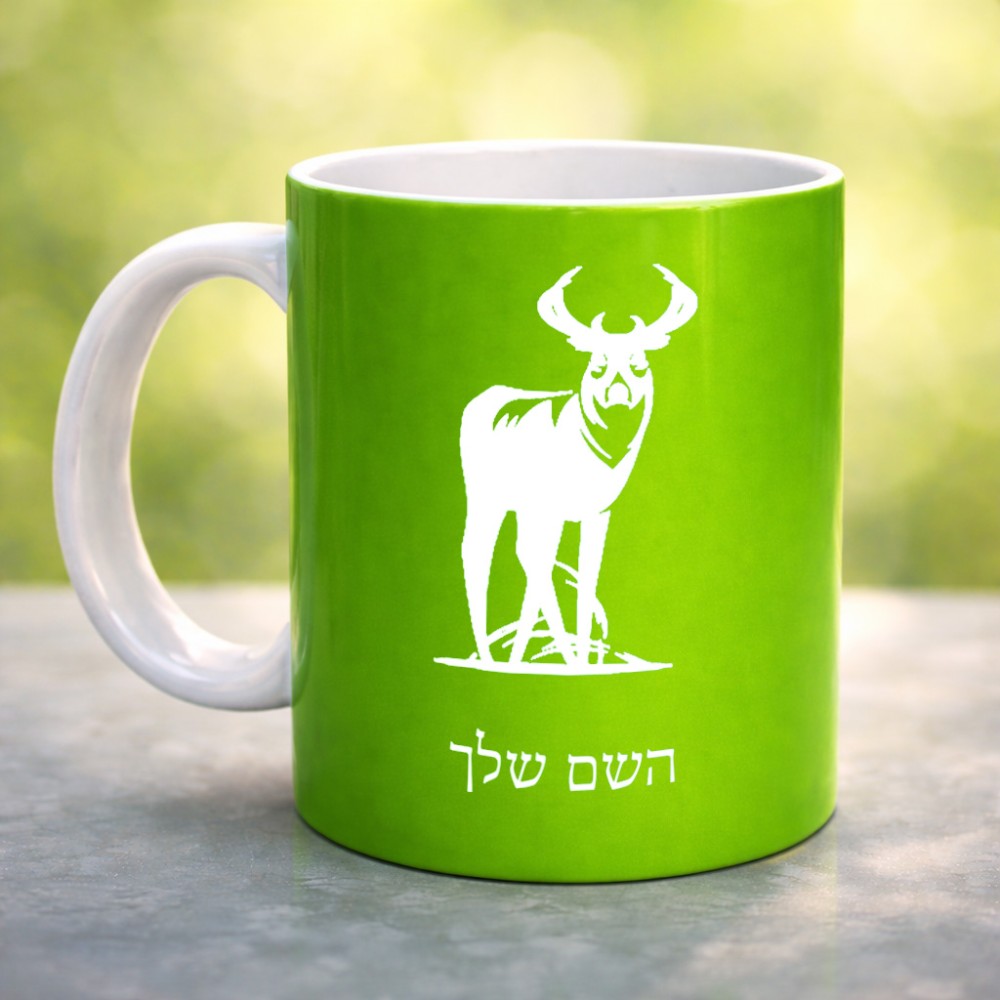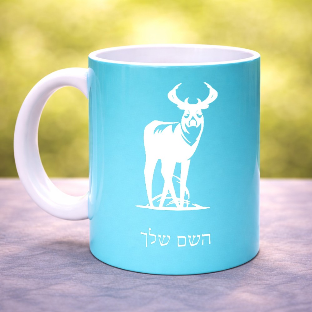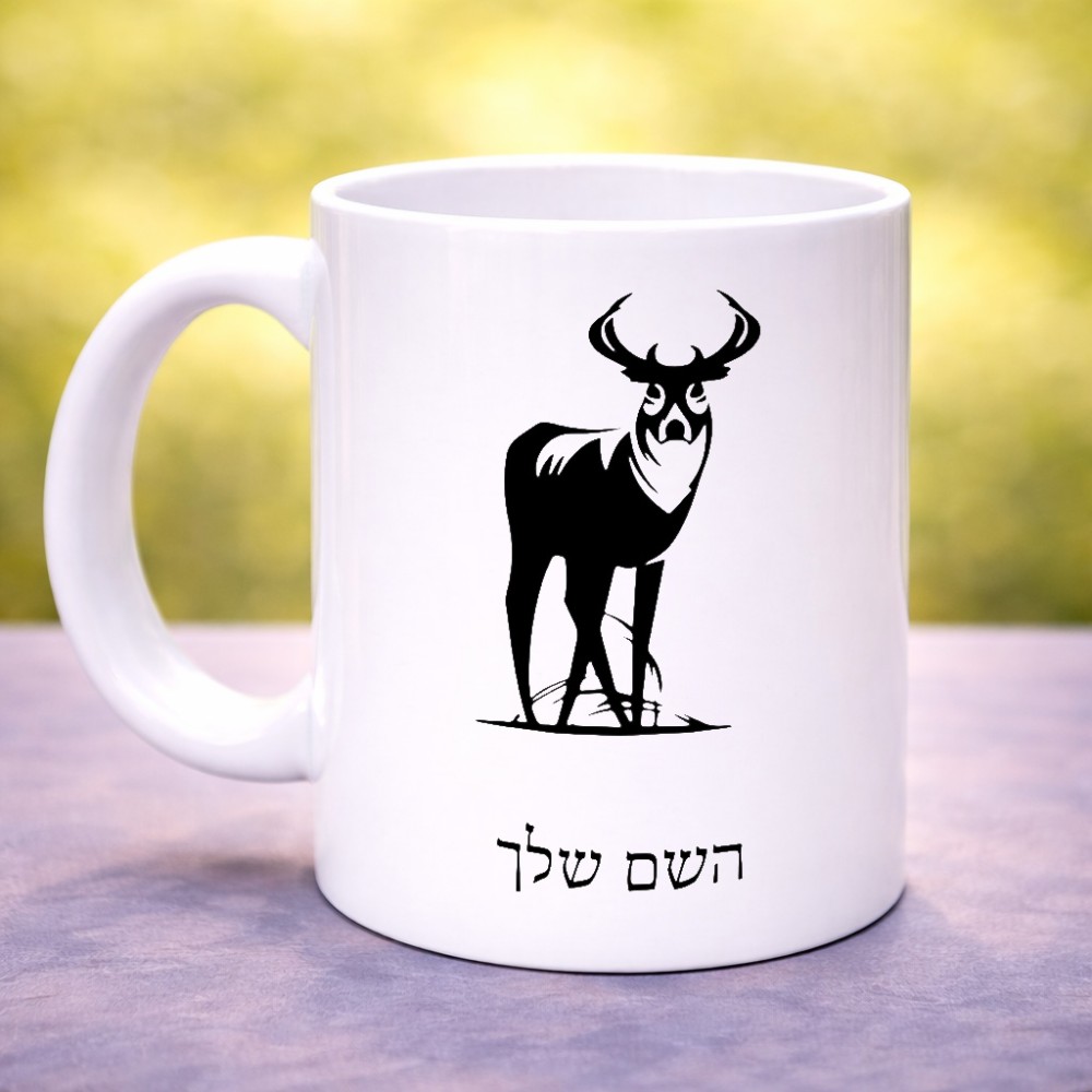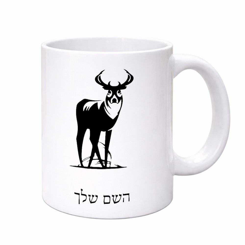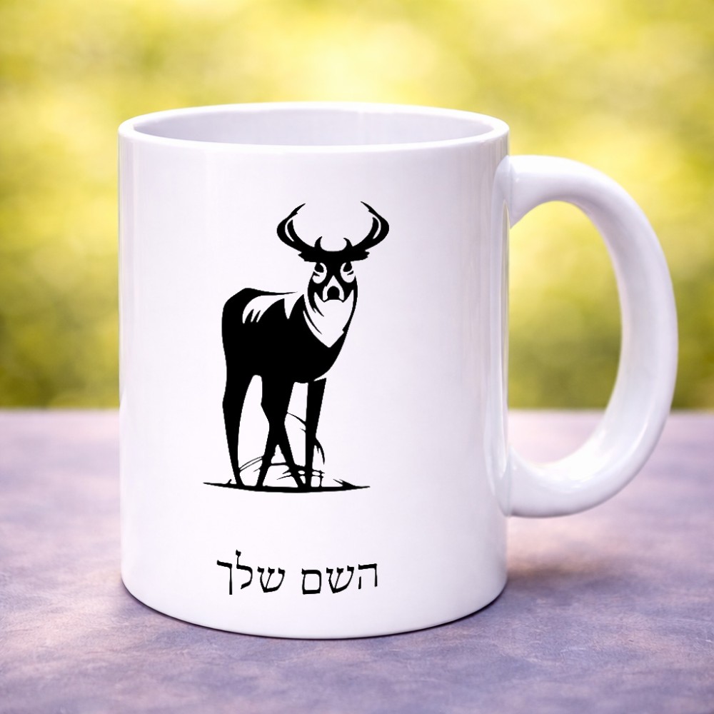 ספל תה \ קפה בעיצוב אישי עם השם שלך בעיצוב צבי גדול הספל 325 מ"ל, הספל בעלת ידית לאחיזה יציבה. את השם המבוקש ניתן לציין בהזמנה, אם לא צויין אנחנו ניצור קשר לבירור.