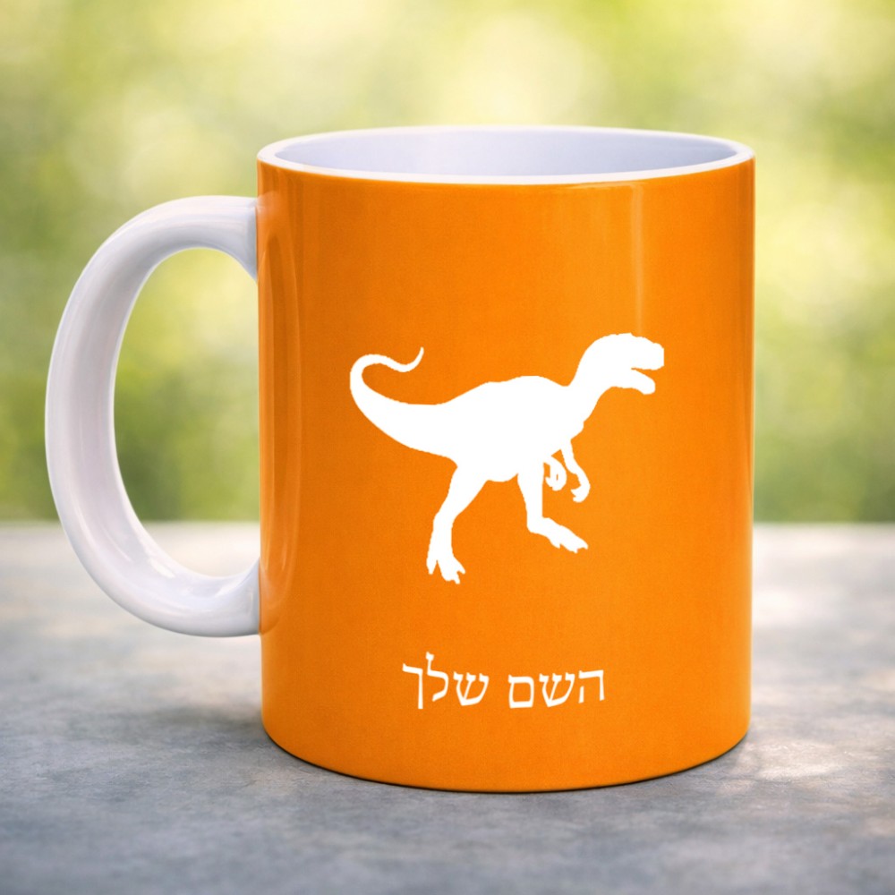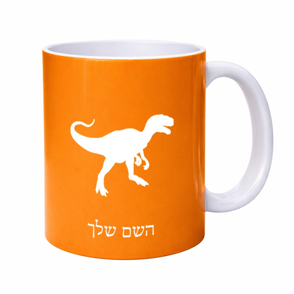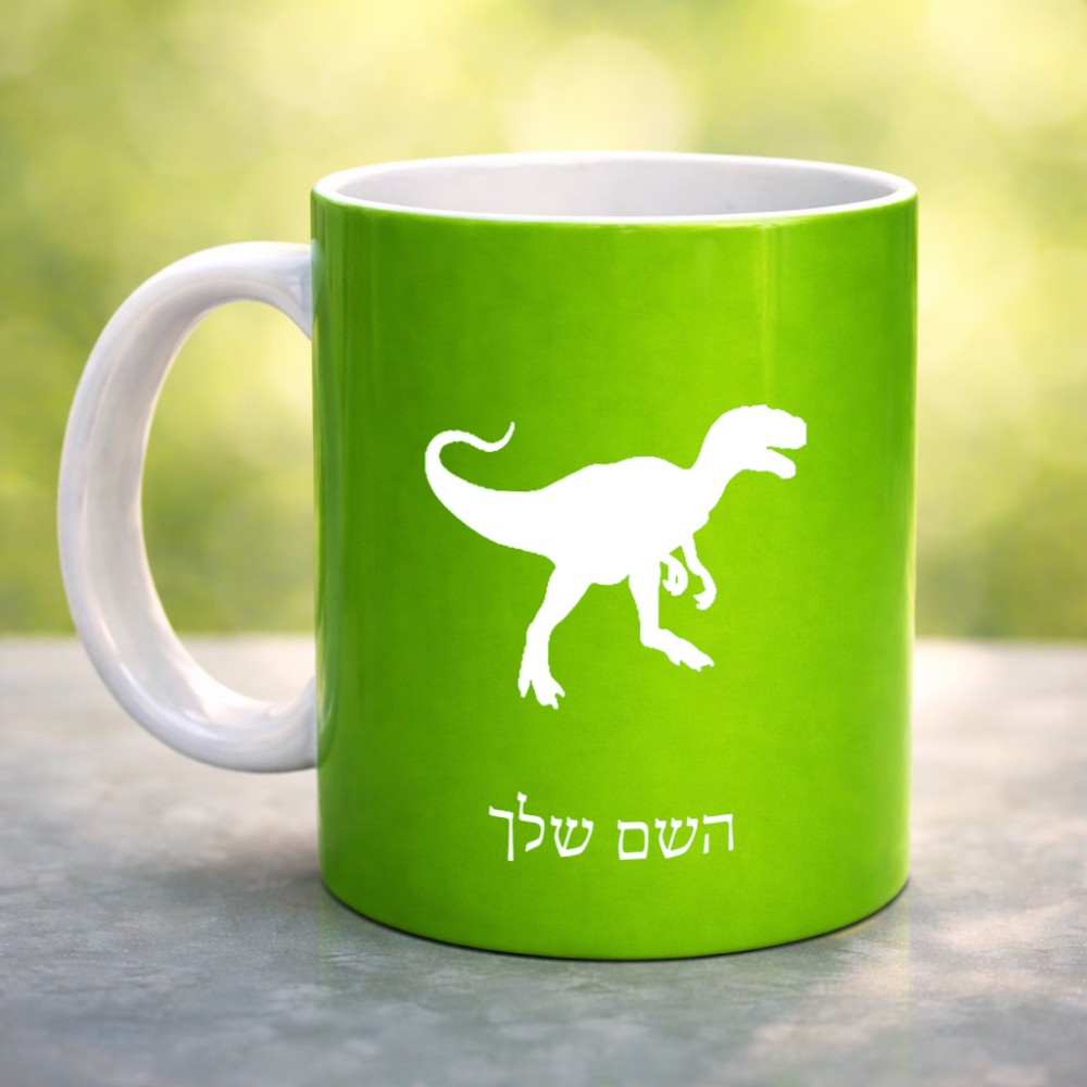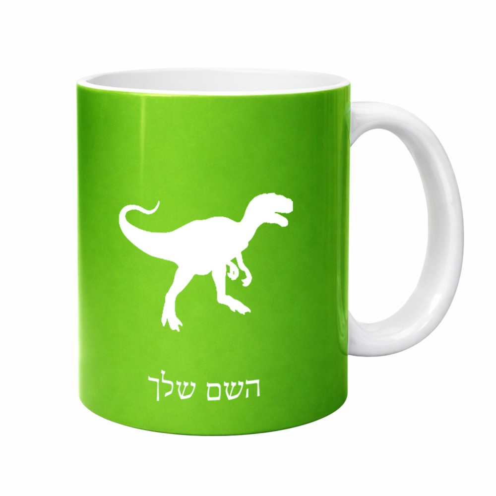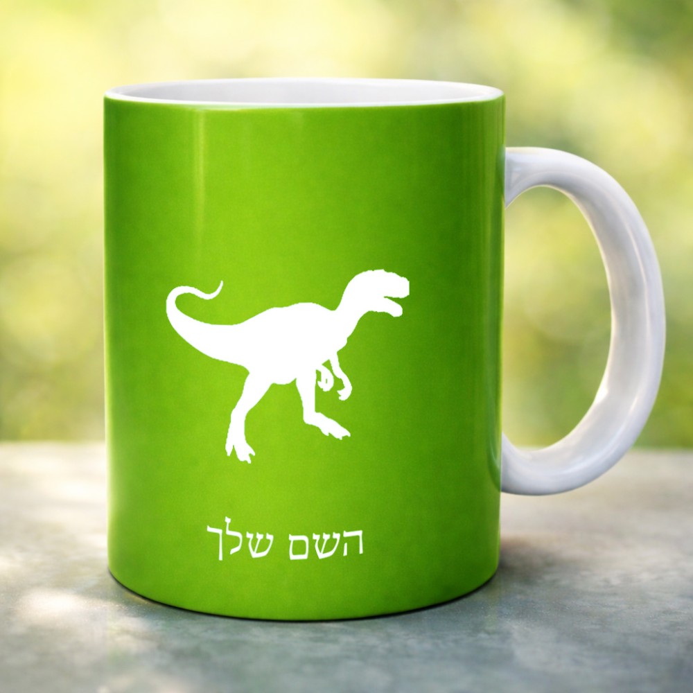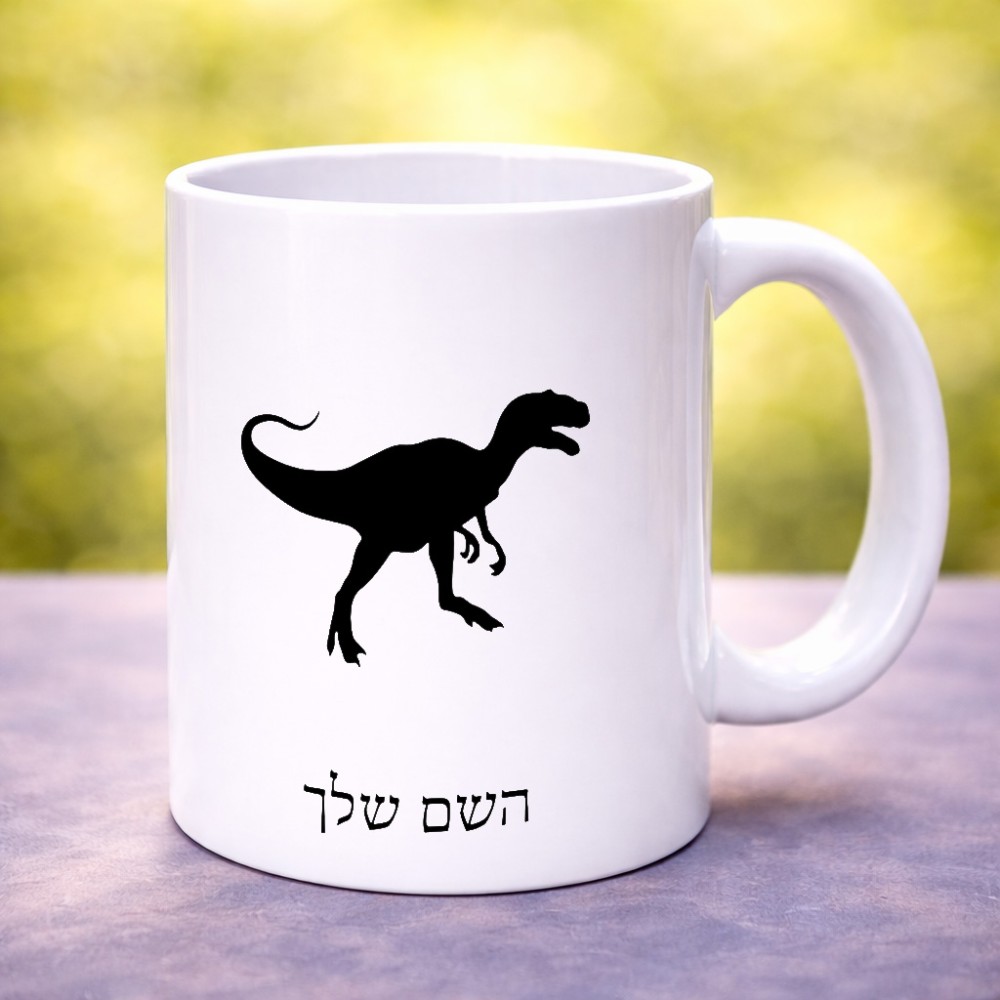 ספל תה \ קפה בעיצוב אישי עם השם שלך בעיצוב דינוזאור גדול הספל 325 מ"ל, הספל בעלת ידית לאחיזה יציבה. את השם המבוקש ניתן לציין בהזמנה, אם לא צויין אנחנו ניצור קשר לבירור.