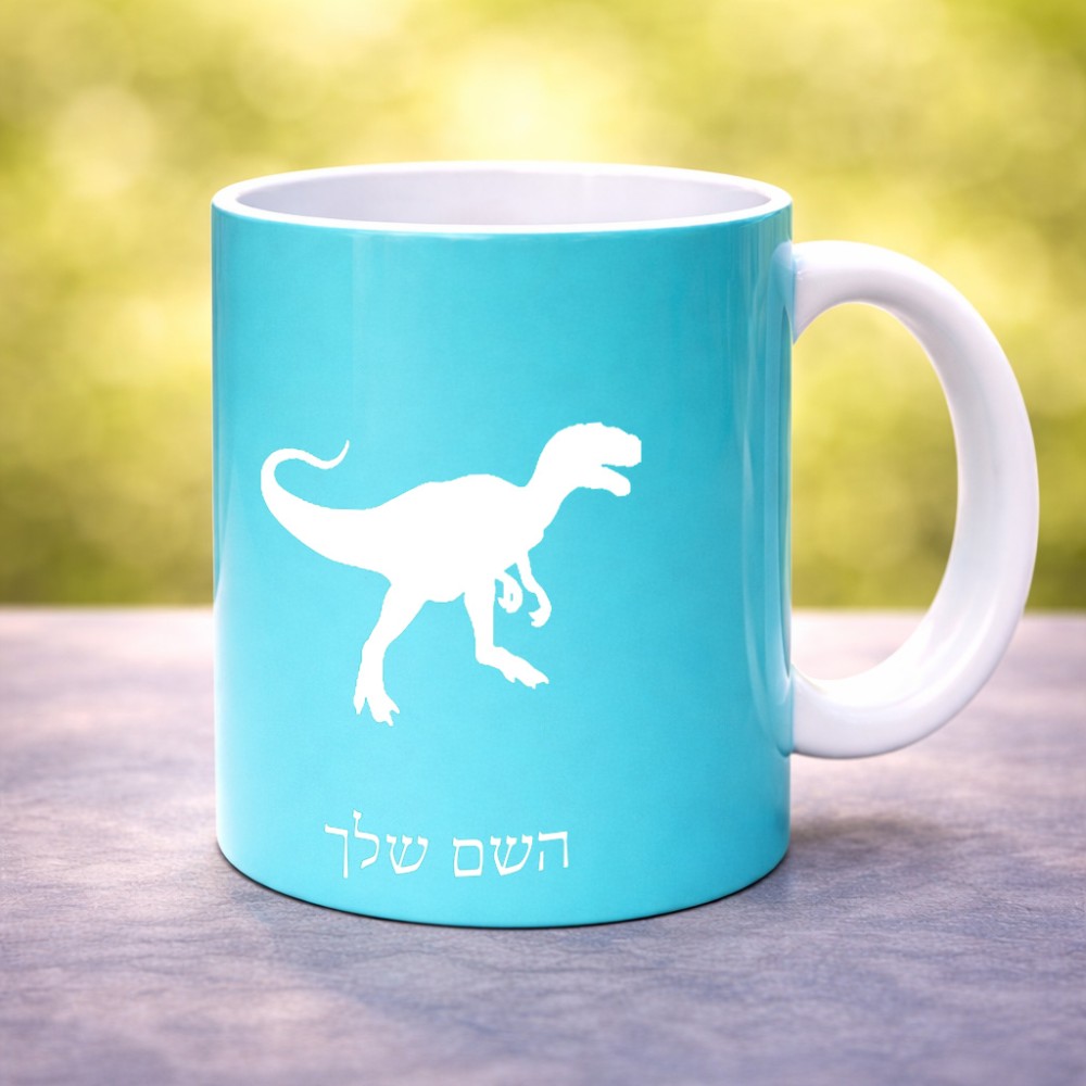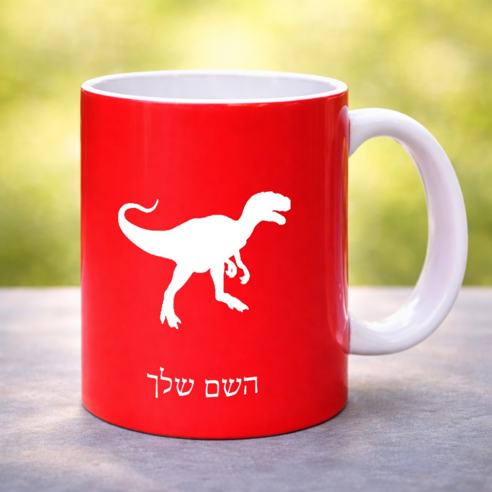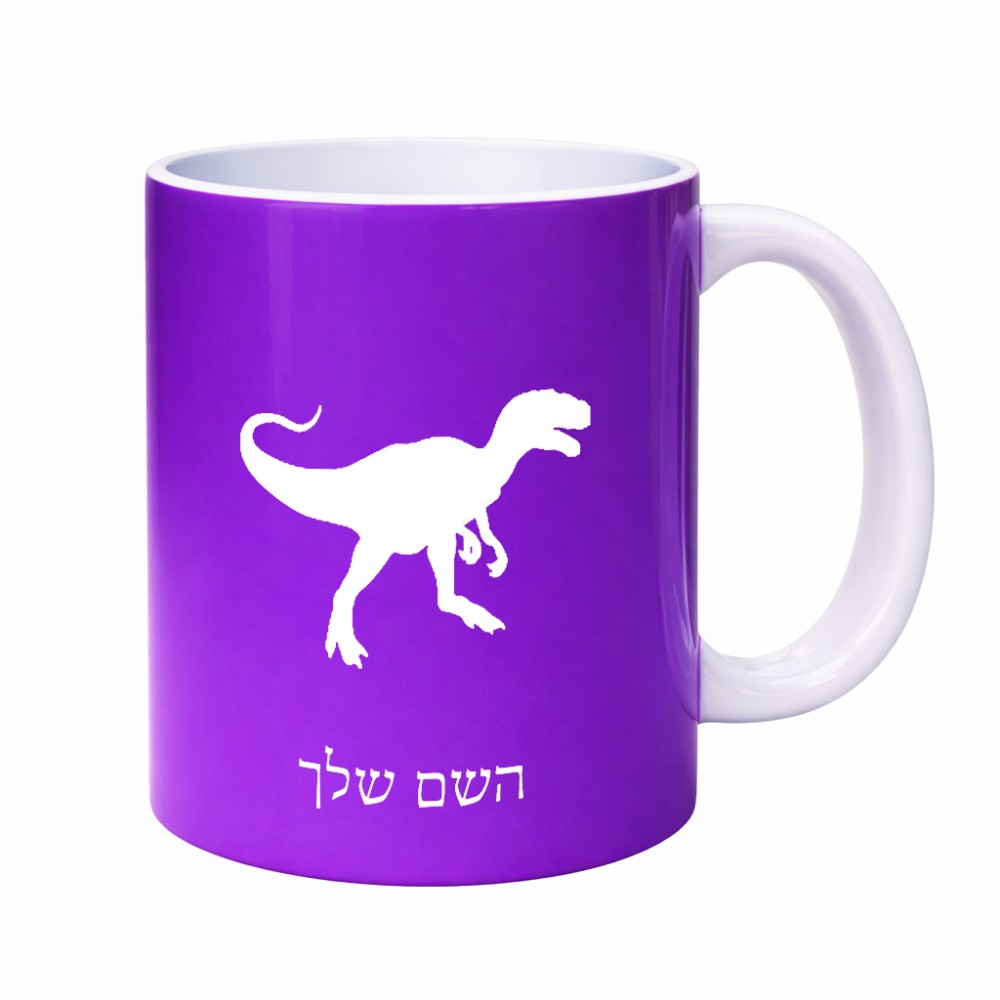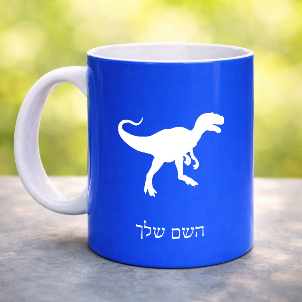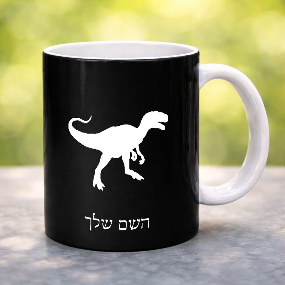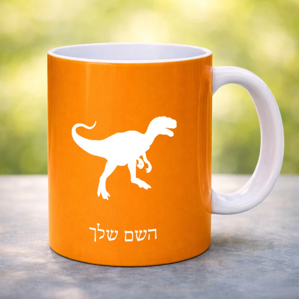 ספל תה \ קפה בעיצוב אישי עם השם שלך בעיצוב דינוזאור גדול הספל 325 מ"ל, הספל בעלת ידית לאחיזה יציבה. את השם המבוקש ניתן לציין בהזמנה, אם לא צויין אנחנו ניצור קשר לבירור.