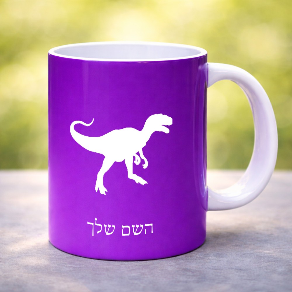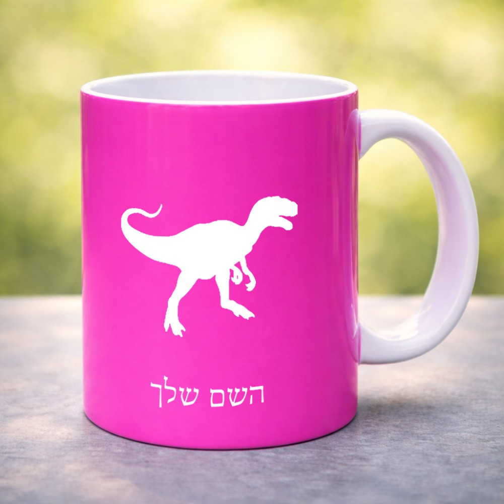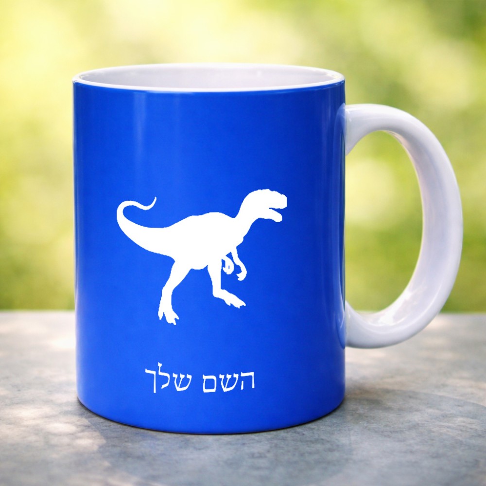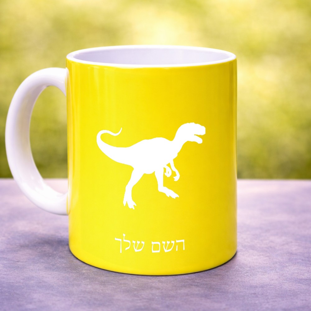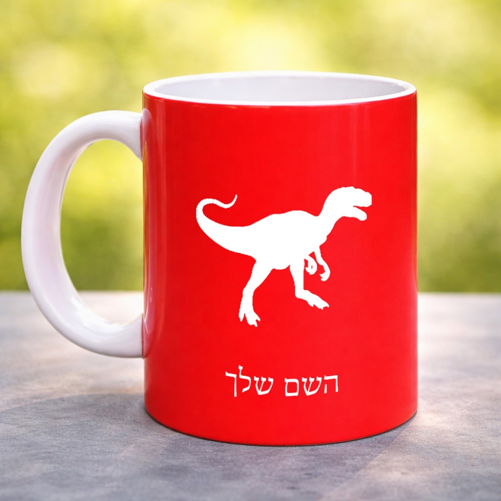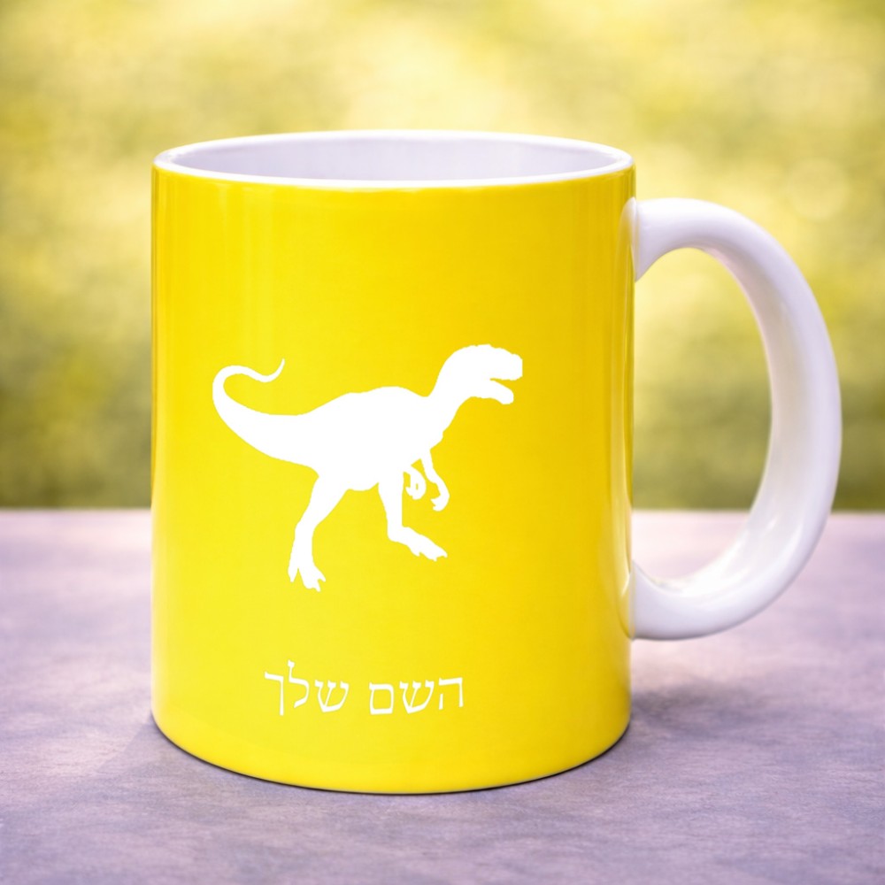 ספל תה \ קפה בעיצוב אישי עם השם שלך בעיצוב דינוזאור גדול הספל 325 מ"ל, הספל בעלת ידית לאחיזה יציבה. את השם המבוקש ניתן לציין בהזמנה, אם לא צויין אנחנו ניצור קשר לבירור.