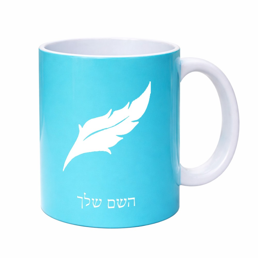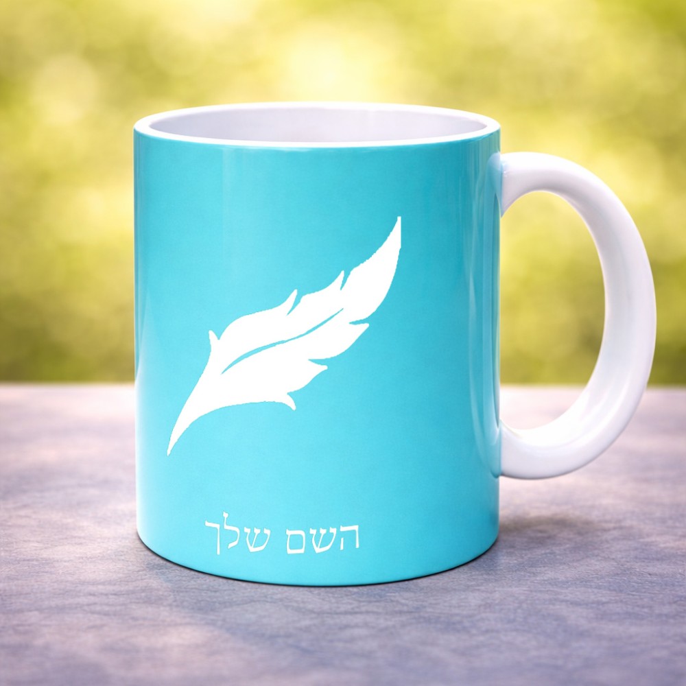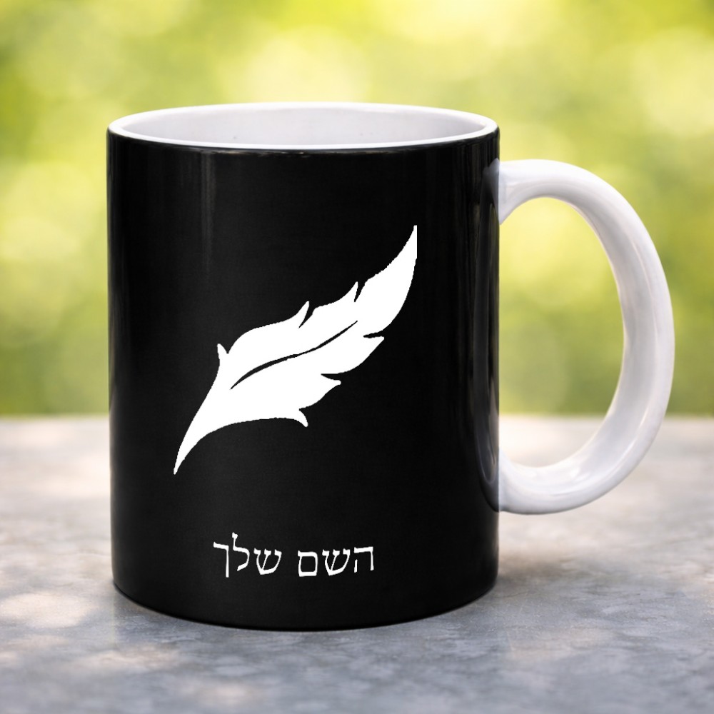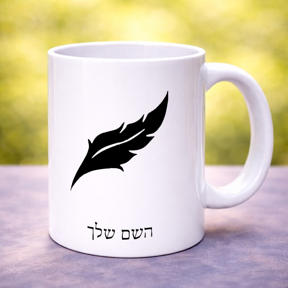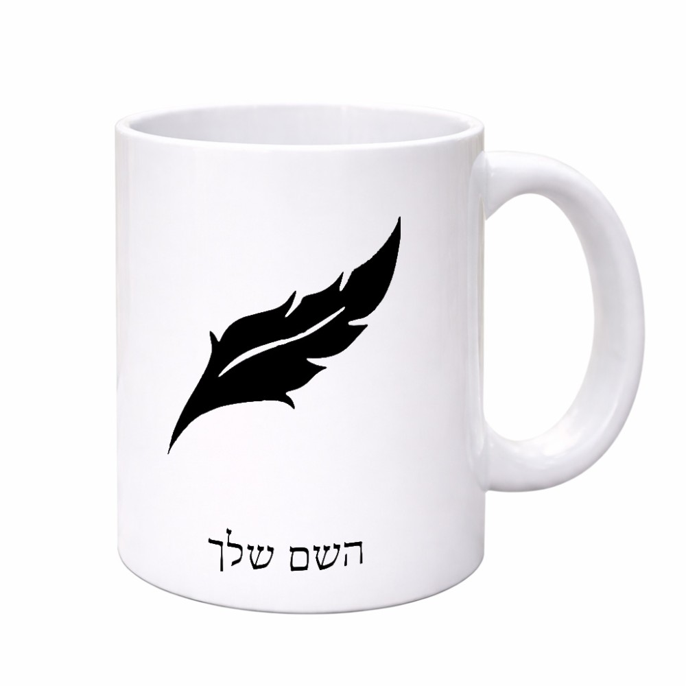 ספל תה \ קפה בעיצוב אישי עם השם שלך בעיצוב נוצת נוצה גדול הספל 325 מ"ל, הספל בעלת ידית לאחיזה יציבה. את השם המבוקש ניתן לציין בהזמנה, אם לא צויין אנחנו ניצור קשר לבירור.
