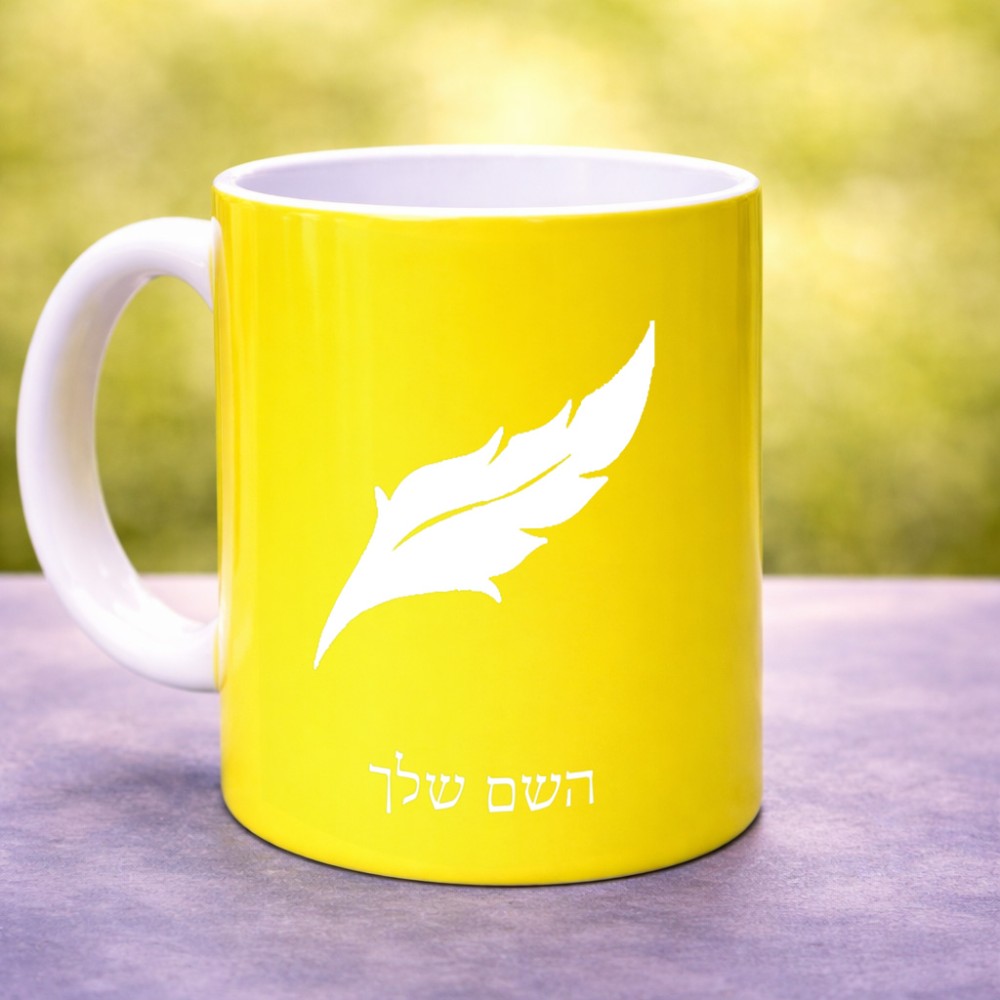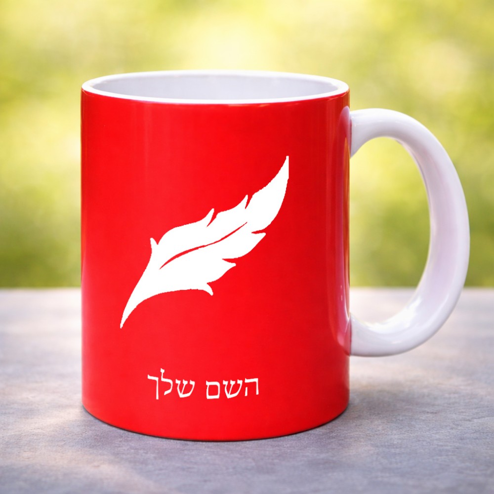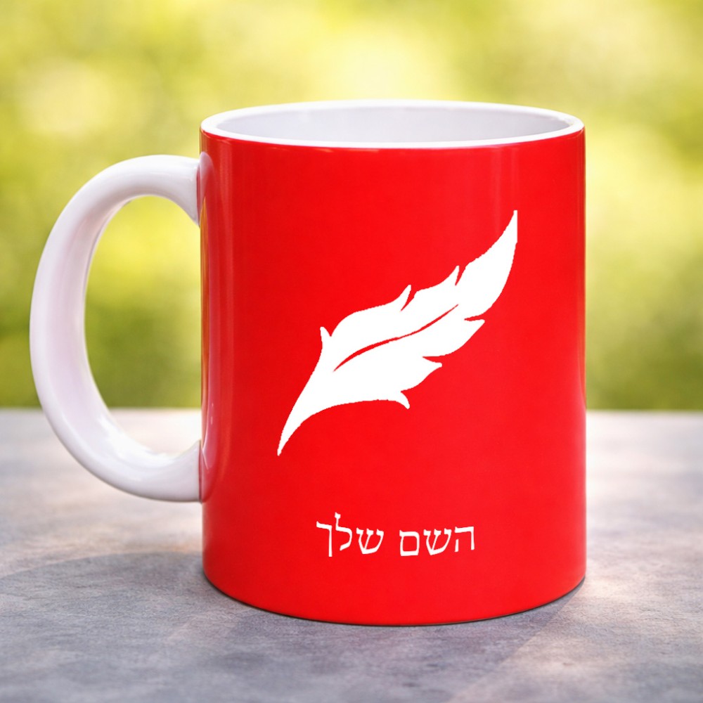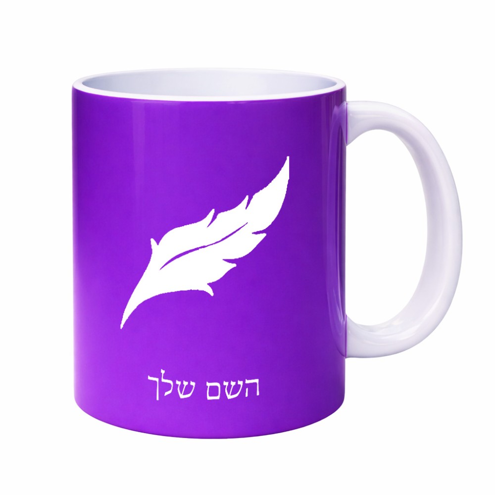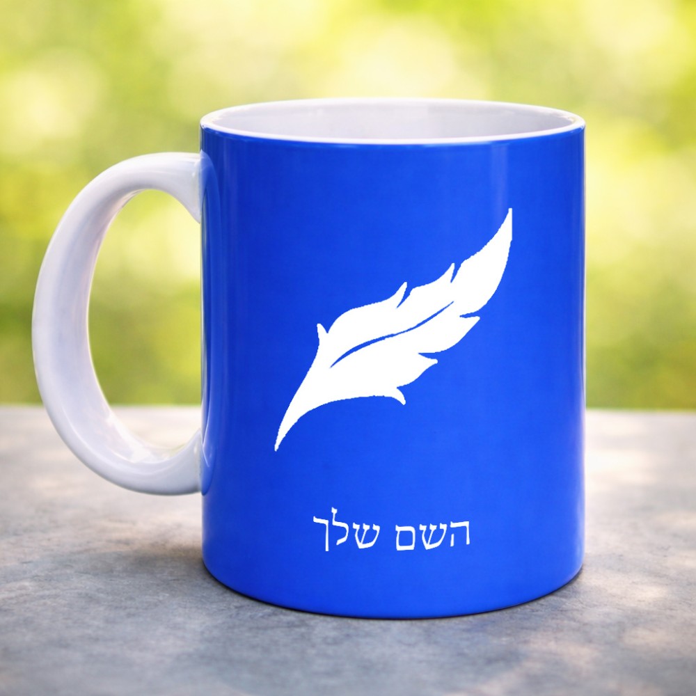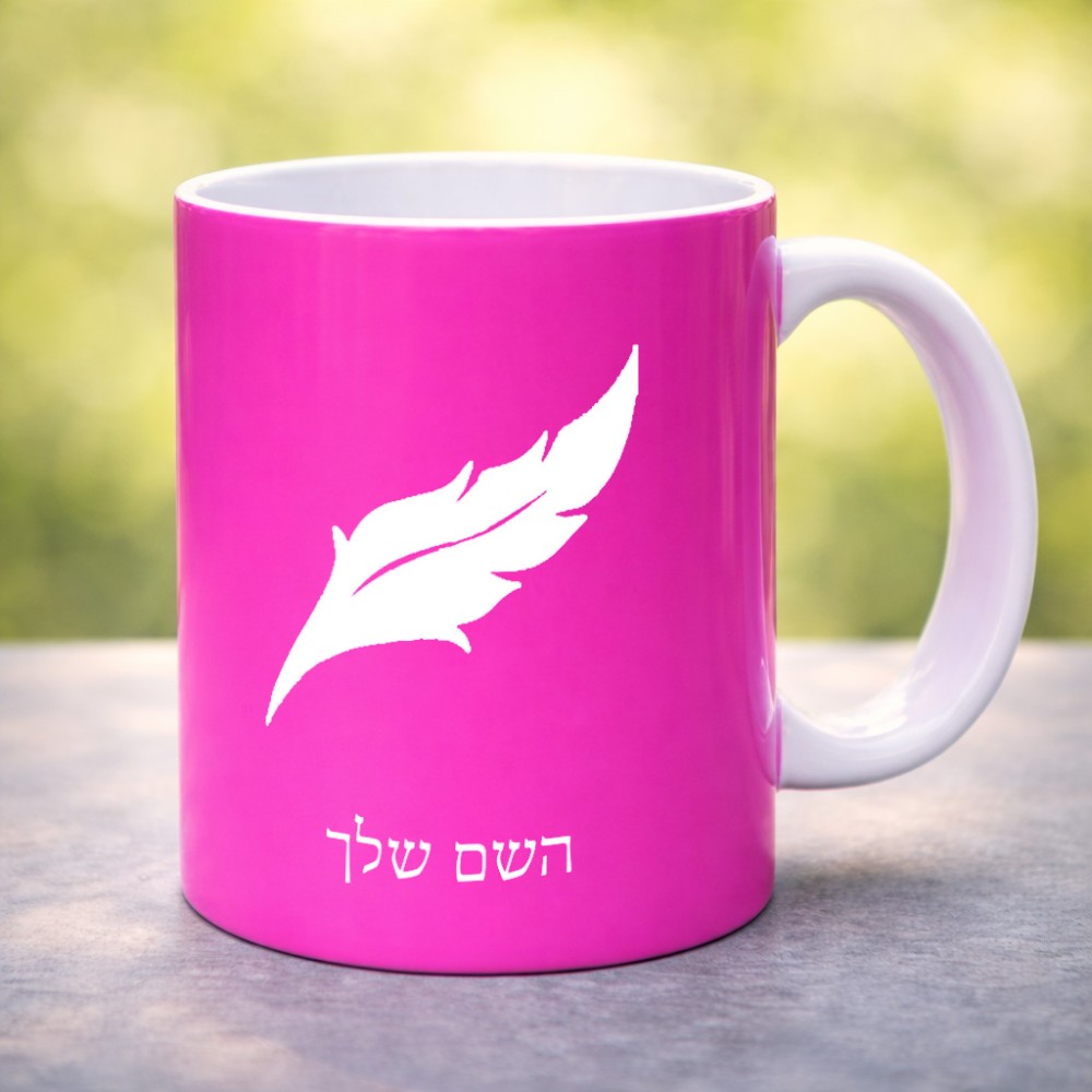 ספל תה \ קפה בעיצוב אישי עם השם שלך בעיצוב נוצת נוצה גדול הספל 325 מ"ל, הספל בעלת ידית לאחיזה יציבה. את השם המבוקש ניתן לציין בהזמנה, אם לא צויין אנחנו ניצור קשר לבירור.