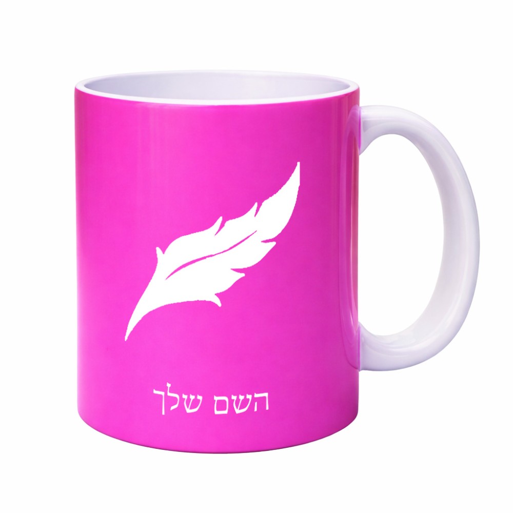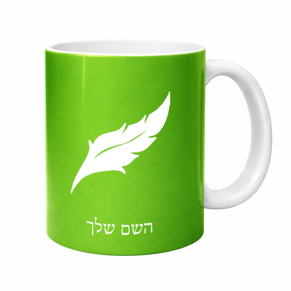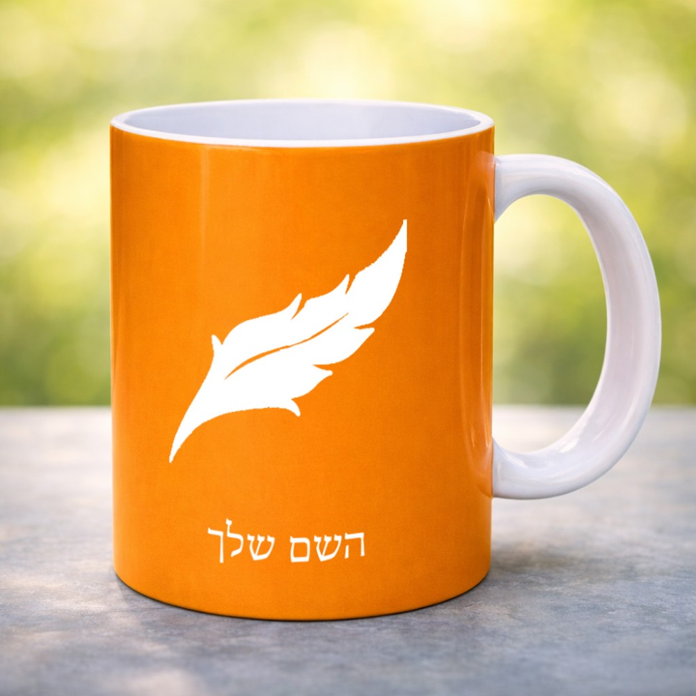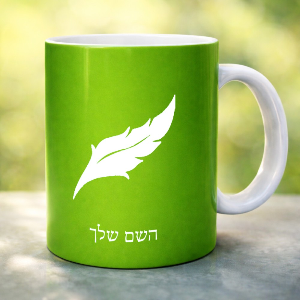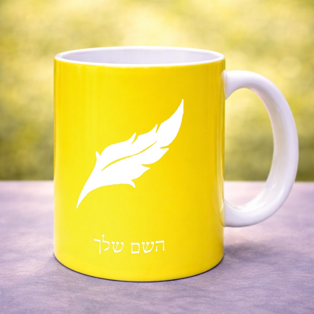 ספל תה \ קפה בעיצוב אישי עם השם שלך בעיצוב נוצת נוצה גדול הספל 325 מ"ל, הספל בעלת ידית לאחיזה יציבה. את השם המבוקש ניתן לציין בהזמנה, אם לא צויין אנחנו ניצור קשר לבירור.