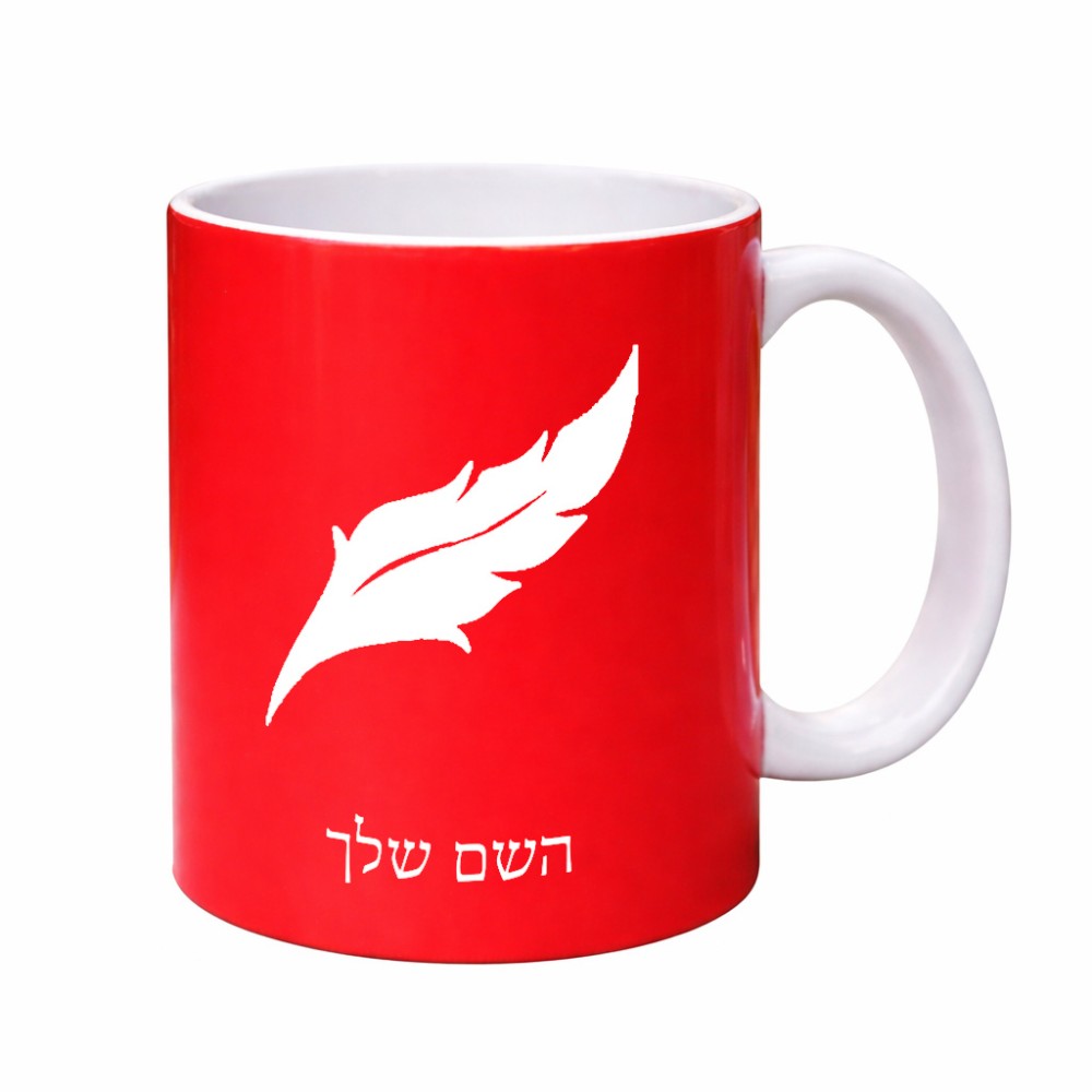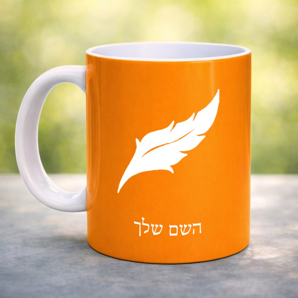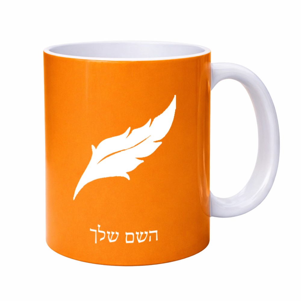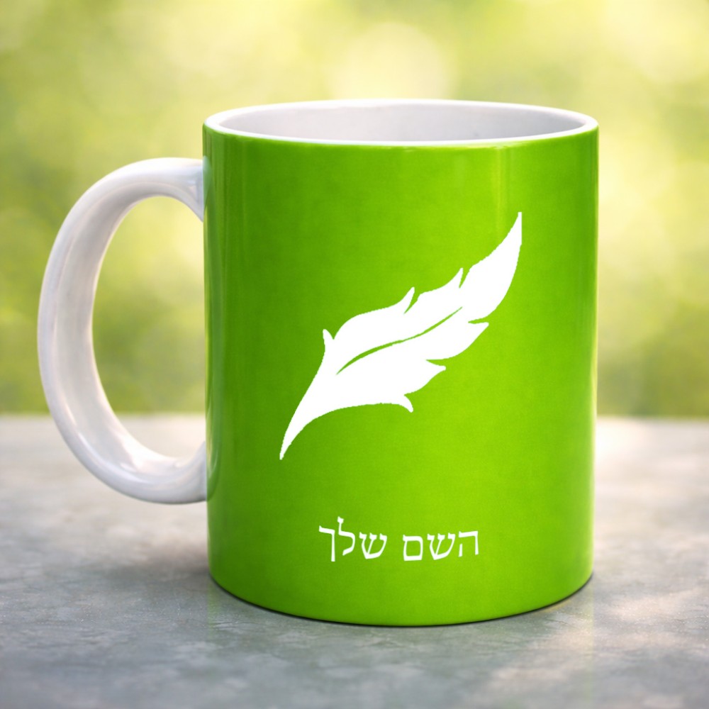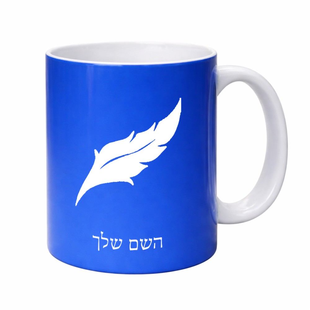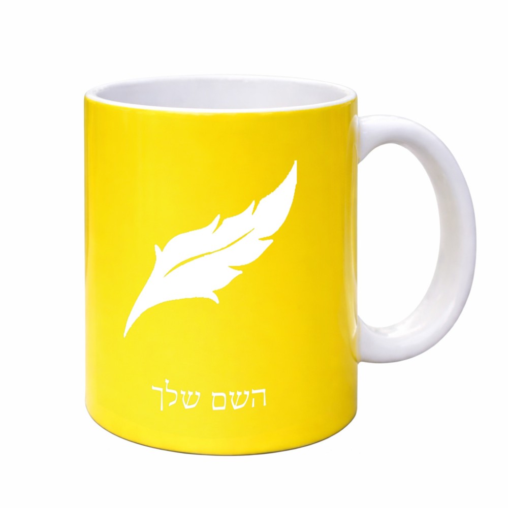 ספל תה \ קפה בעיצוב אישי עם השם שלך בעיצוב נוצת נוצה גדול הספל 325 מ"ל, הספל בעלת ידית לאחיזה יציבה. את השם המבוקש ניתן לציין בהזמנה, אם לא צויין אנחנו ניצור קשר לבירור.