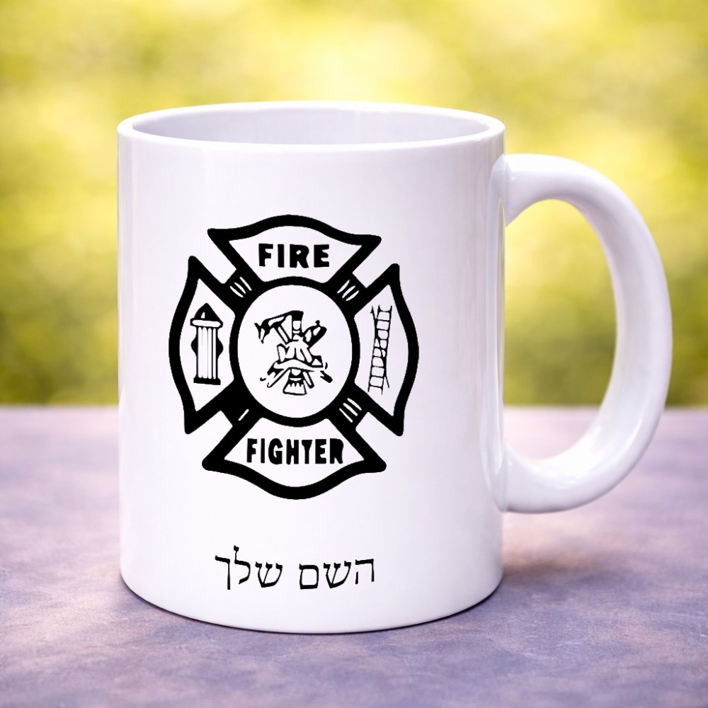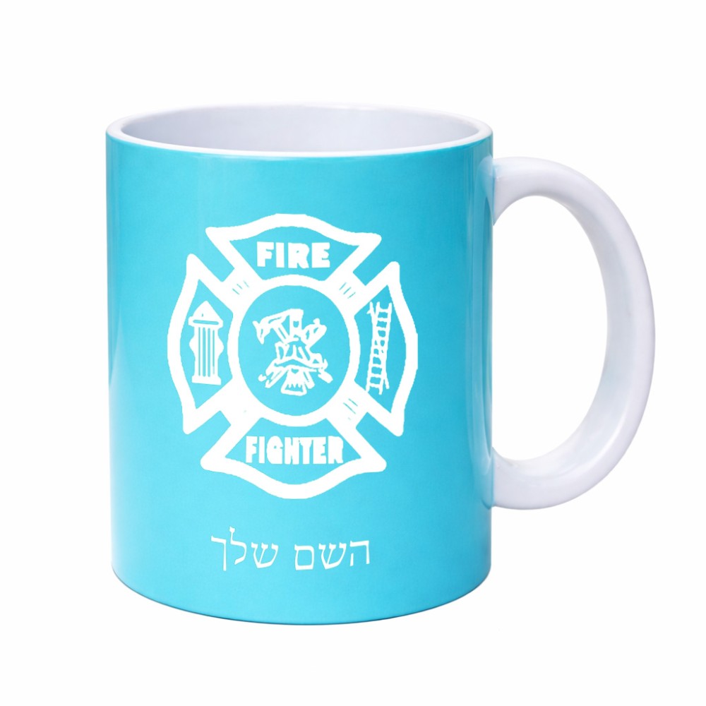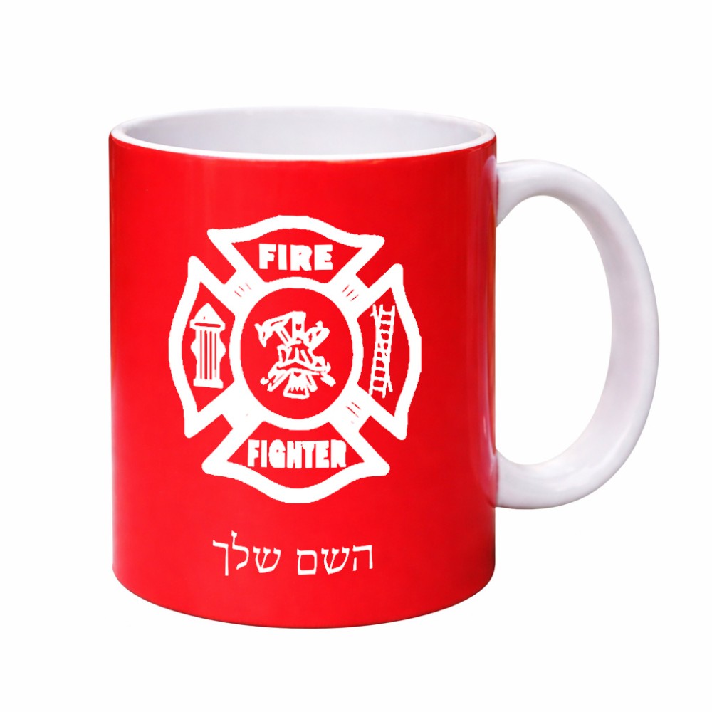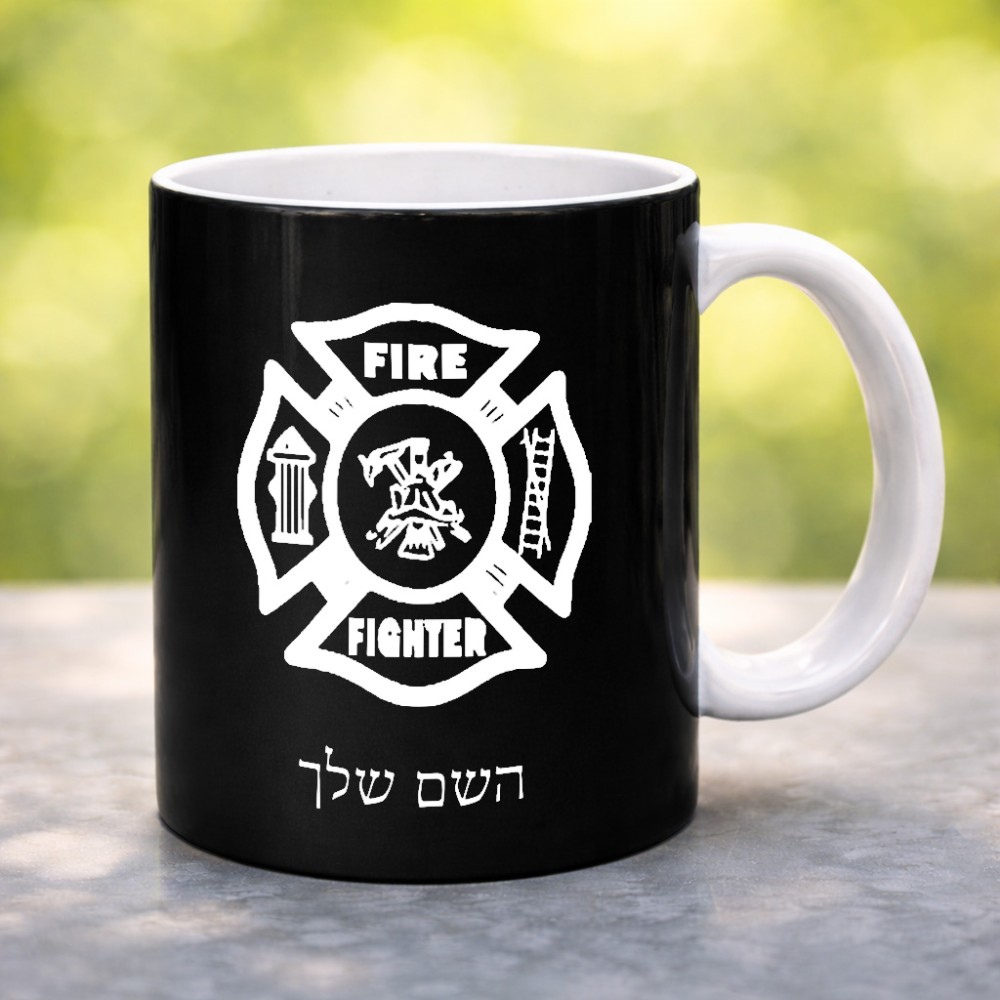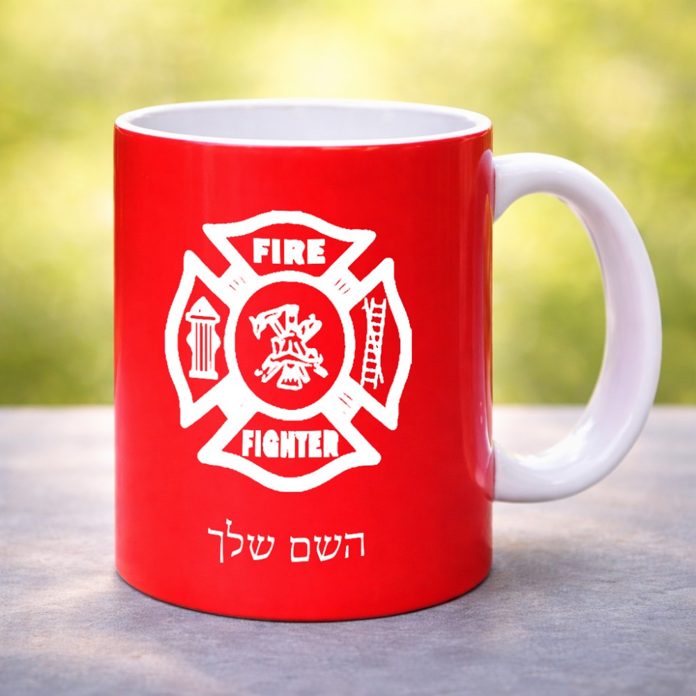 ספל תה \ קפה בעיצוב אישי עם השם שלך בעיצוב כבאי - תגית גדול הספל 325 מ"ל, הספל בעלת ידית לאחיזה יציבה. את השם המבוקש ניתן לציין בהזמנה, אם לא צויין אנחנו ניצור קשר לבירור.